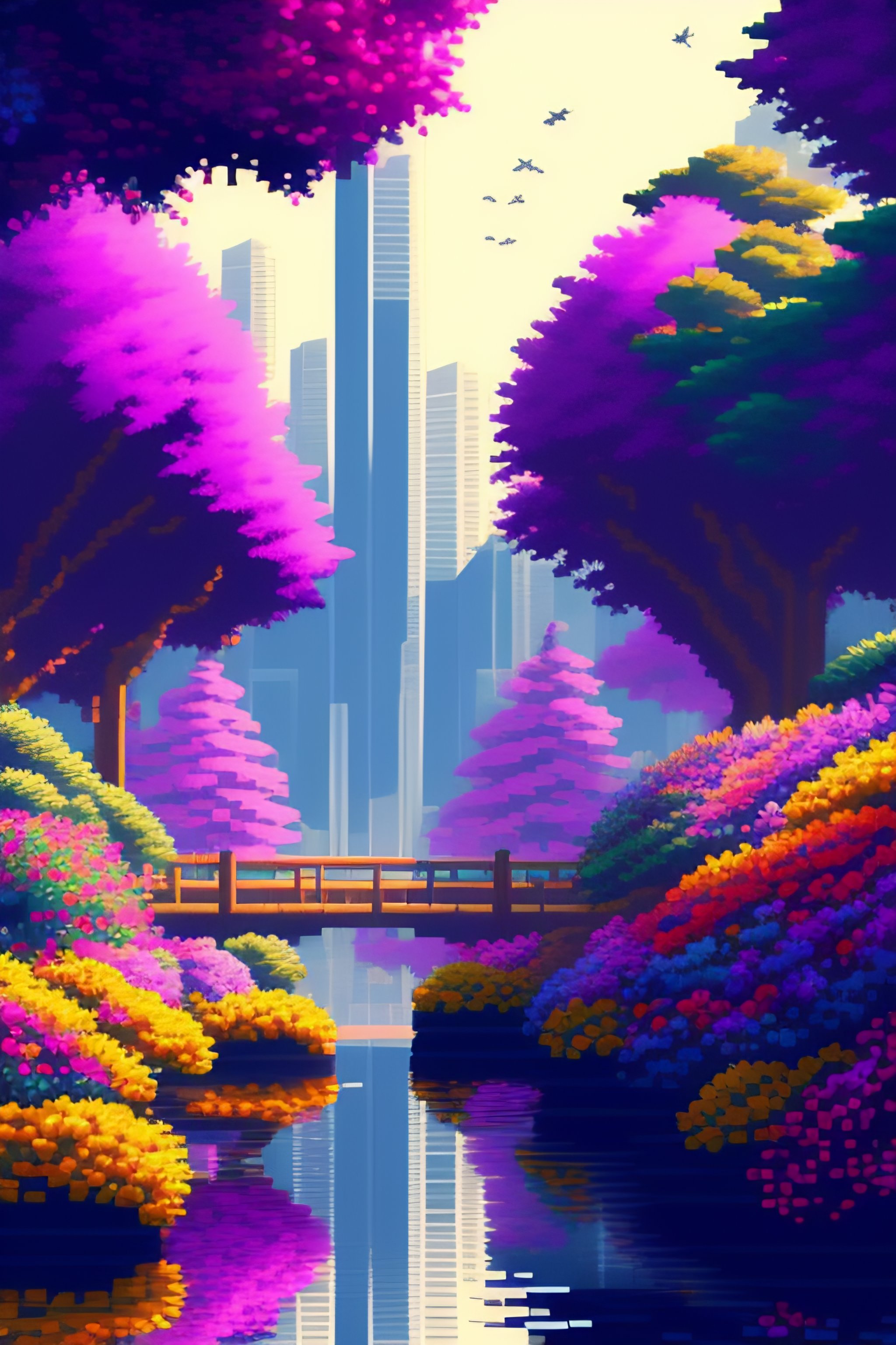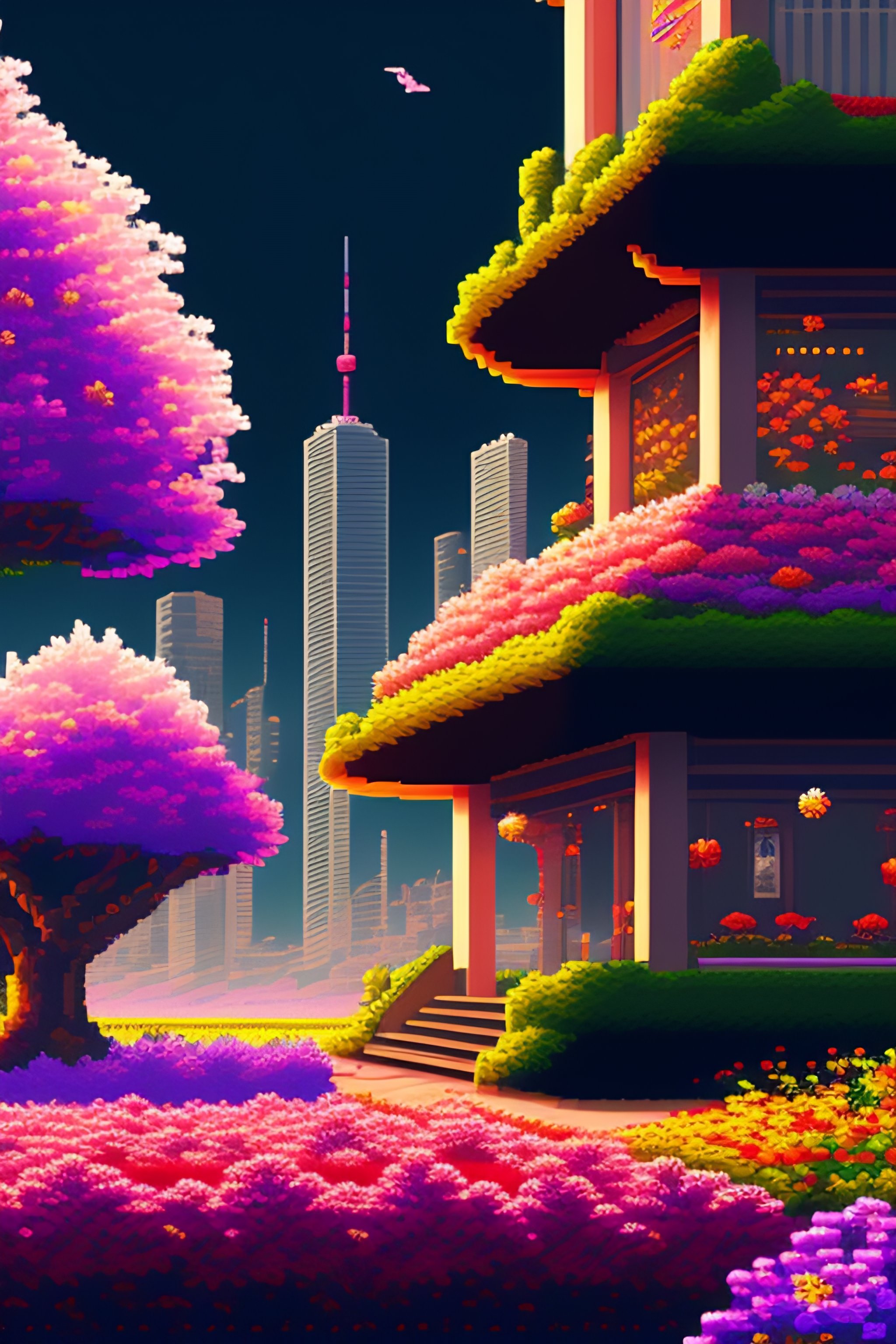 Pixel art tokyo, 3d pixel art 4k wallpaper, incredible pixel art details, flowers, pixel art, lots of flowers in foreground