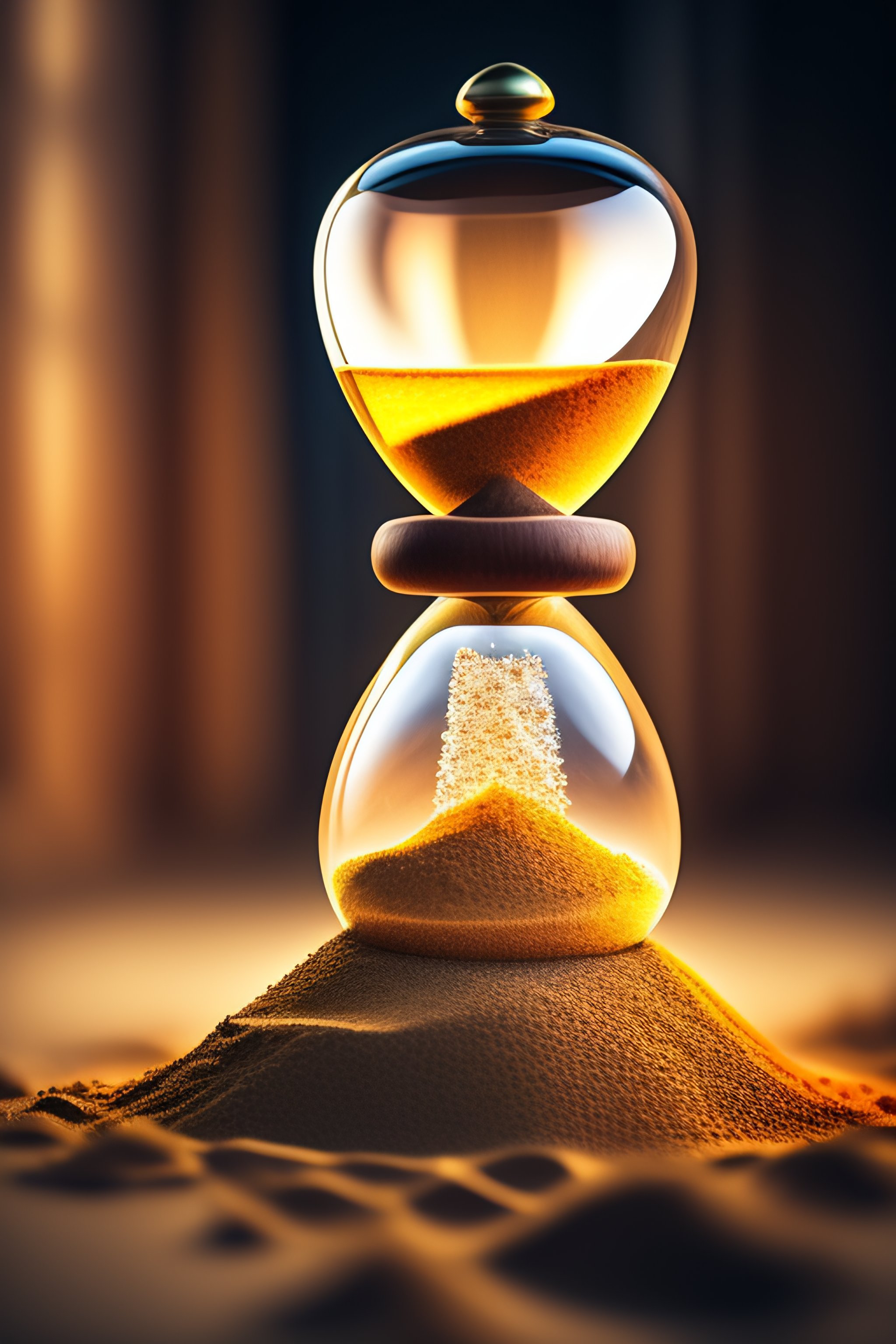 A realistic photo of a broken antique hourglass, sand scattered on the floor, soft lighting, high definition, highly detailed, white background