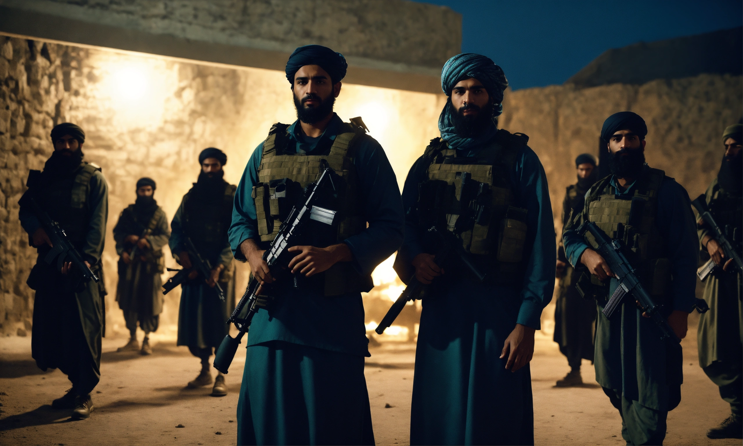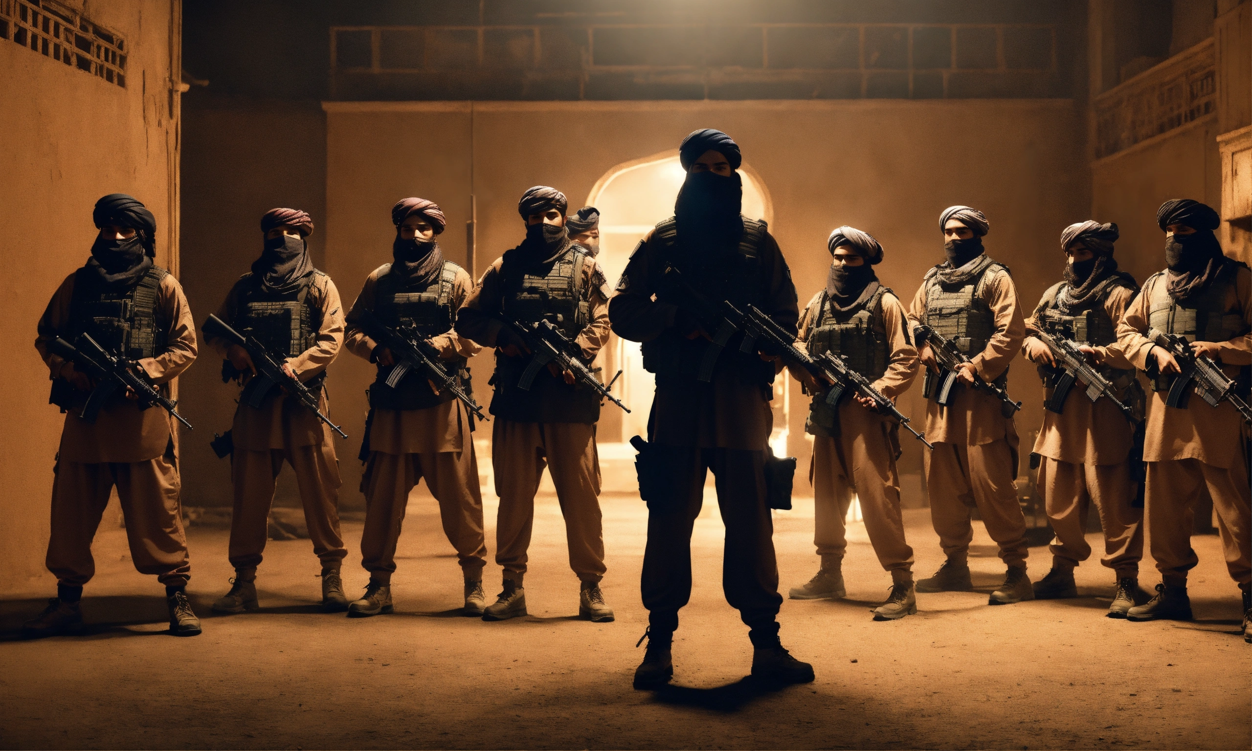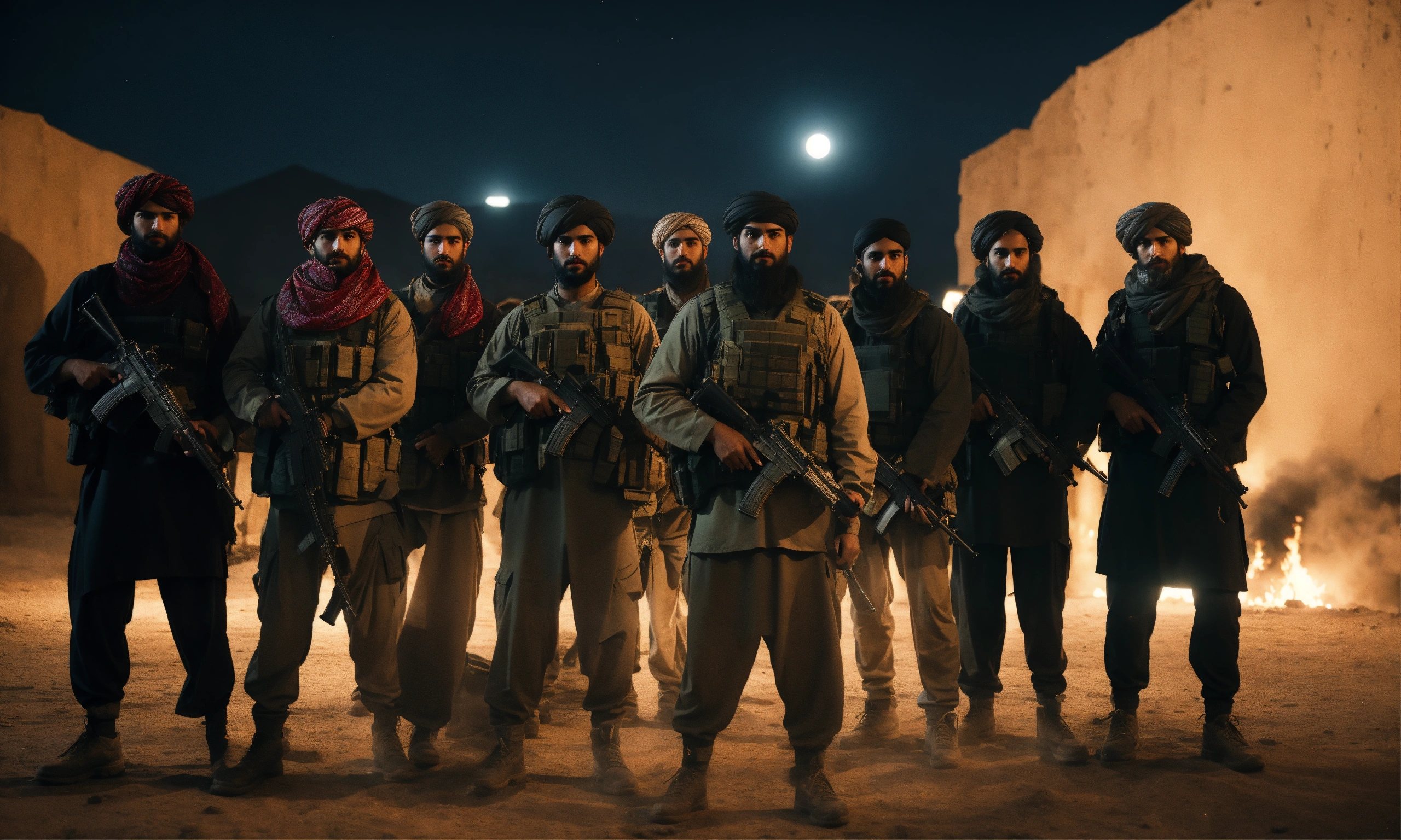 10 afghani male terrorists standing in front a 10 ladies, wide front shot, interior night time, 8k, luxcorerender, earthly colour, cinematic photography, real humans, real images, matte finish, shot on arri anamorphic, extreme wide shot, smooth, sharp focus, ornate, highly dynamic, particulate, hyperreal, wide shot.