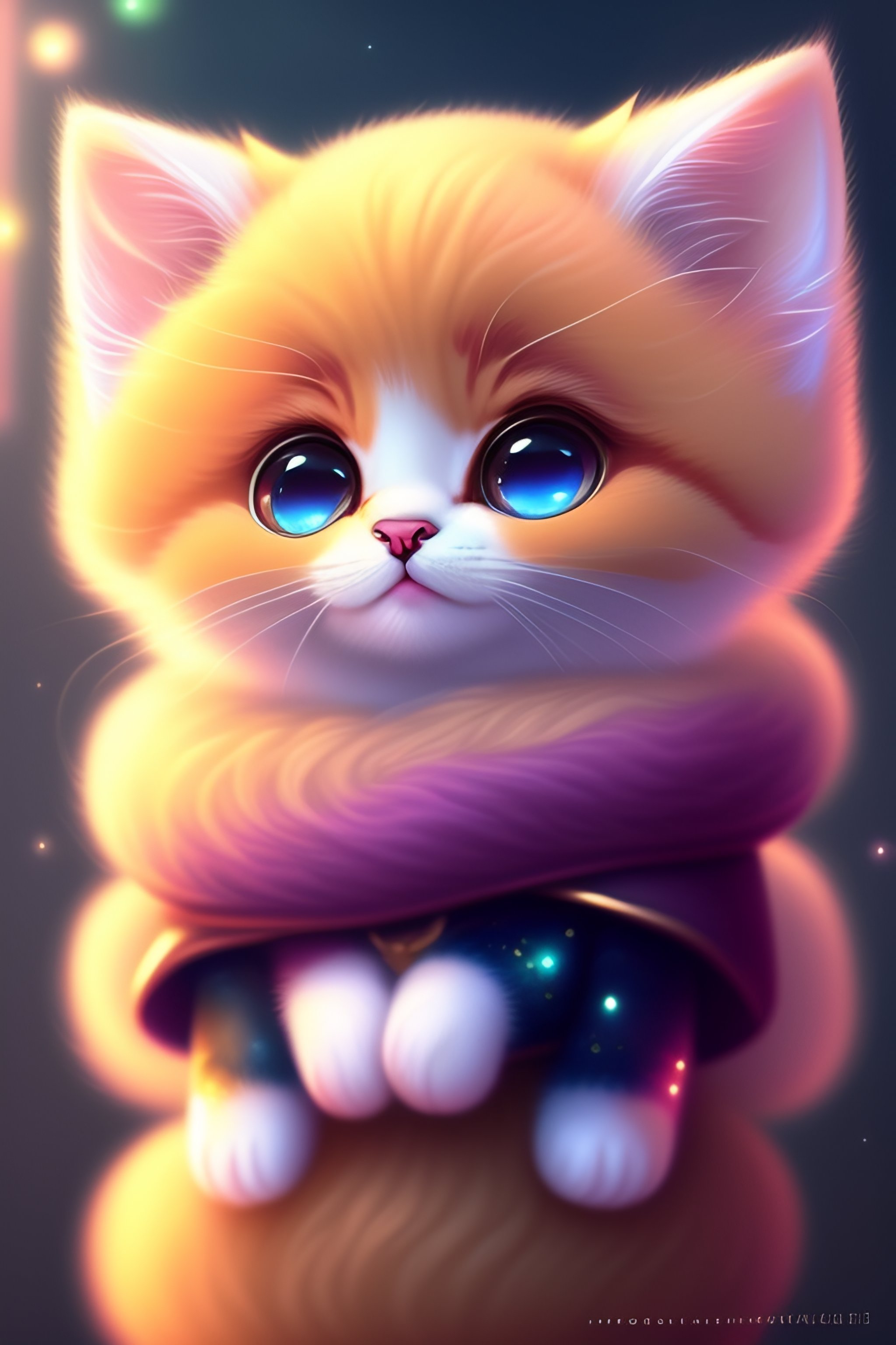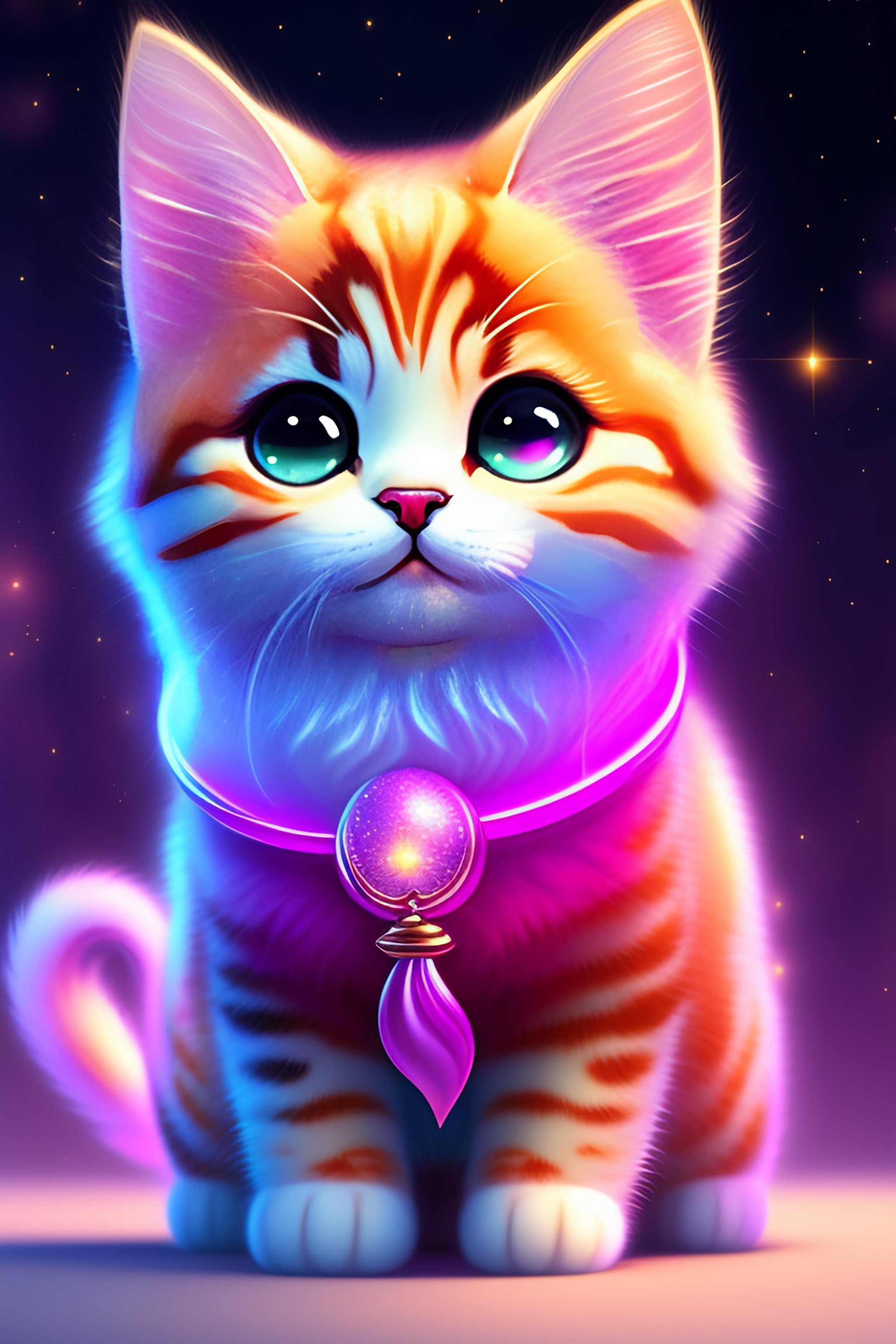 Cute and adorable cartoon fluffy kitten, space, fantasy, glitter, party, dreamlike, surrealism, super cute, trending on artstation