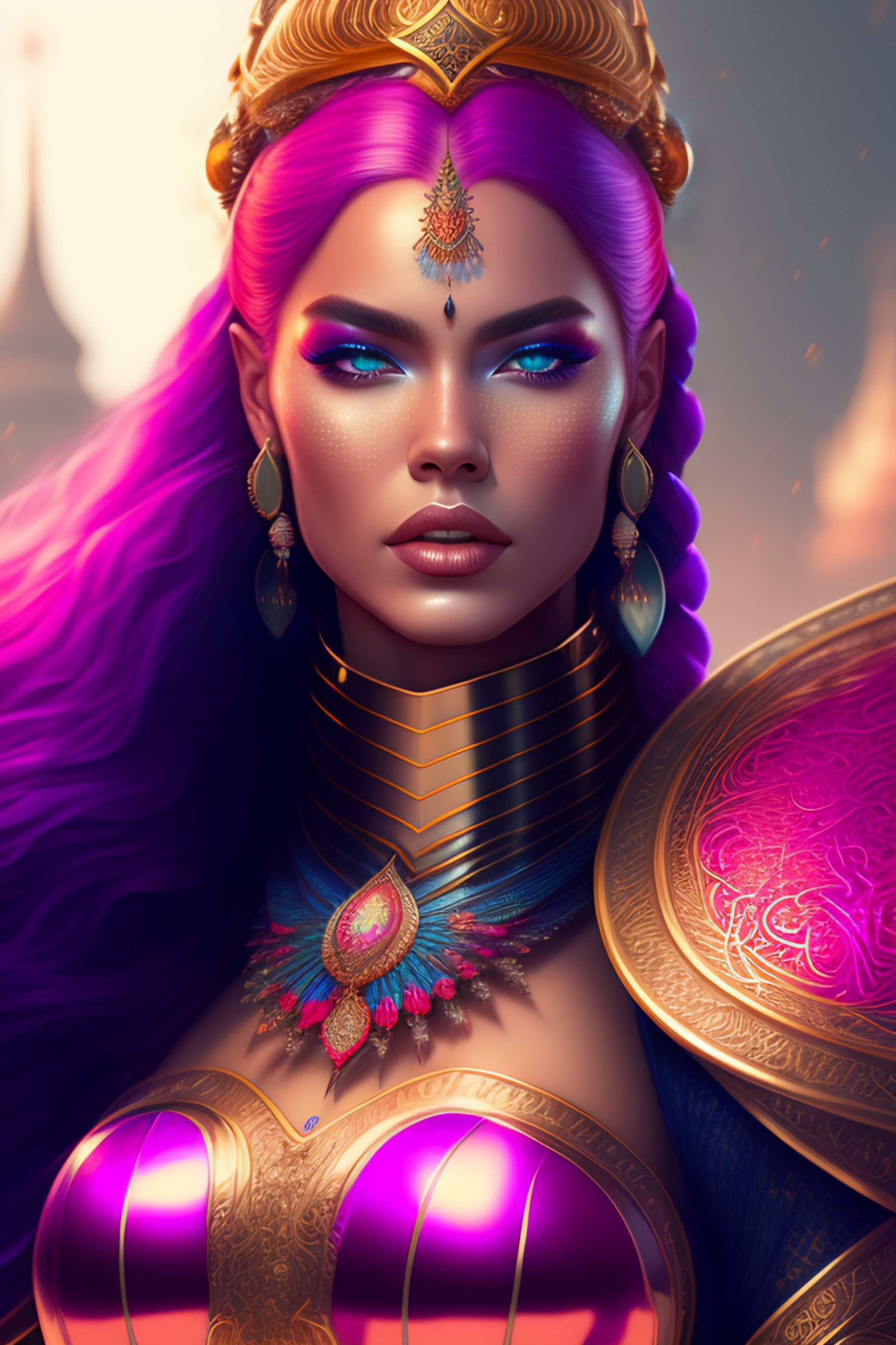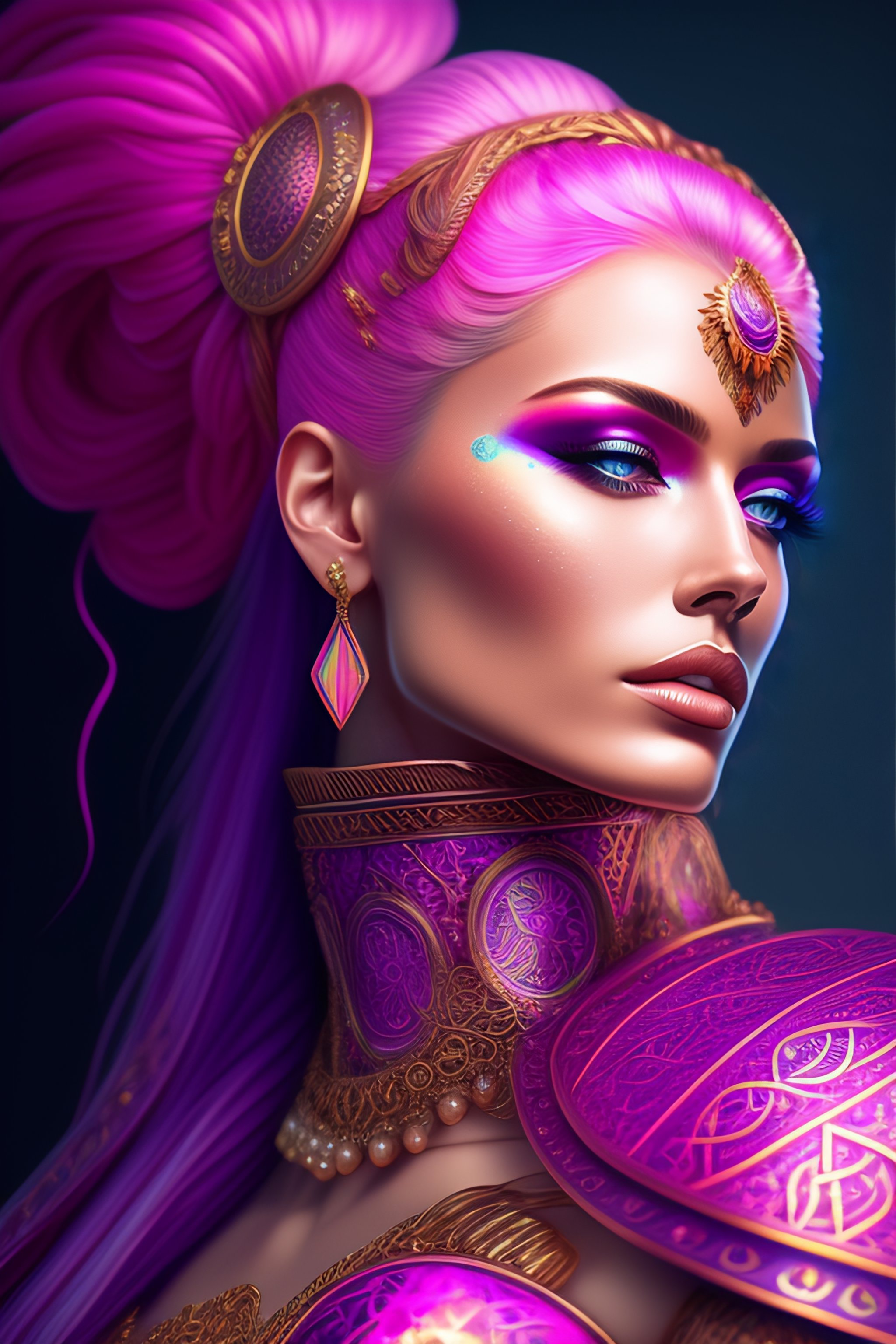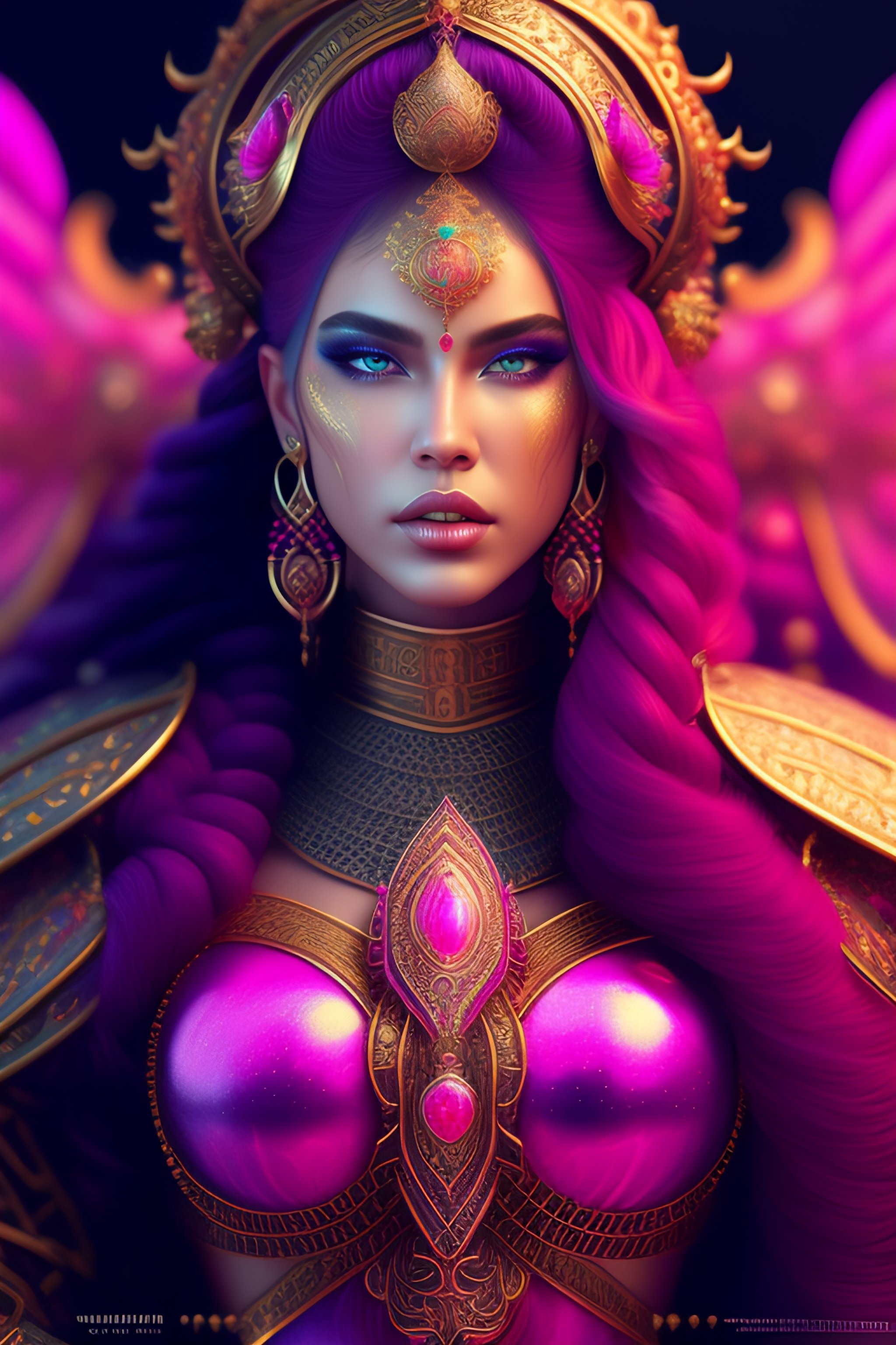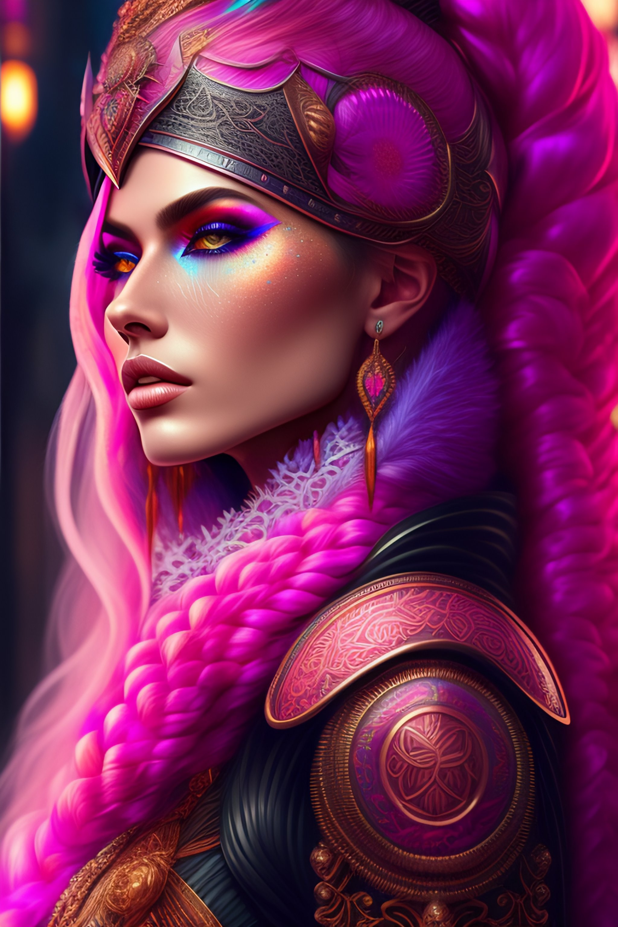 Hyper detailed ultra sharp, trending on artstation, vibrant aesthetic, bloodwave, colorful, psychedelic, ornate, intricate, digital painting, concept art, smooth, sharp focus, illustration, viking princess long pink braids, pink filigree engraved armor, art by artgerm and greg rutkowski and h. r. giger, 8 k