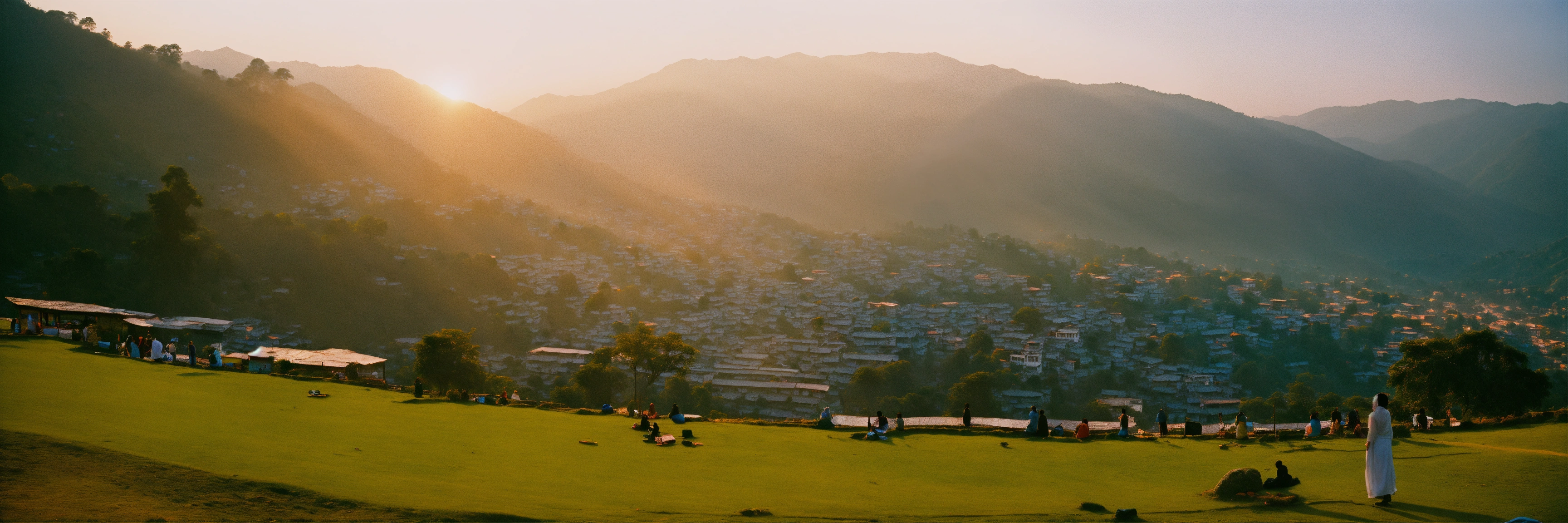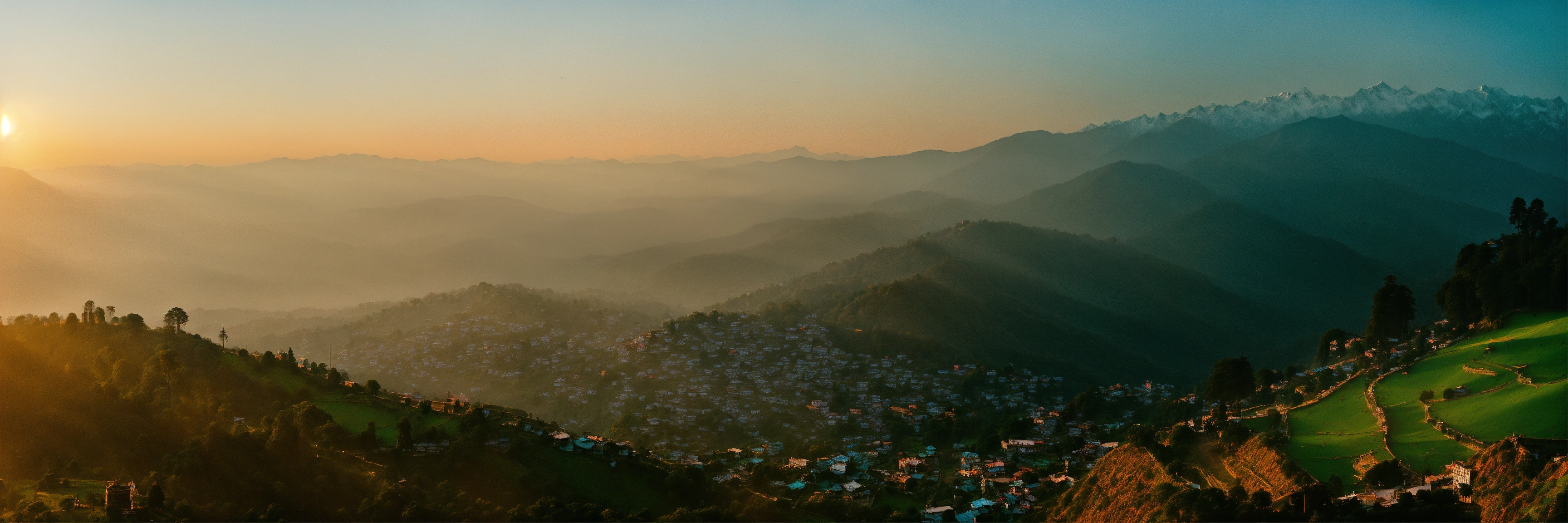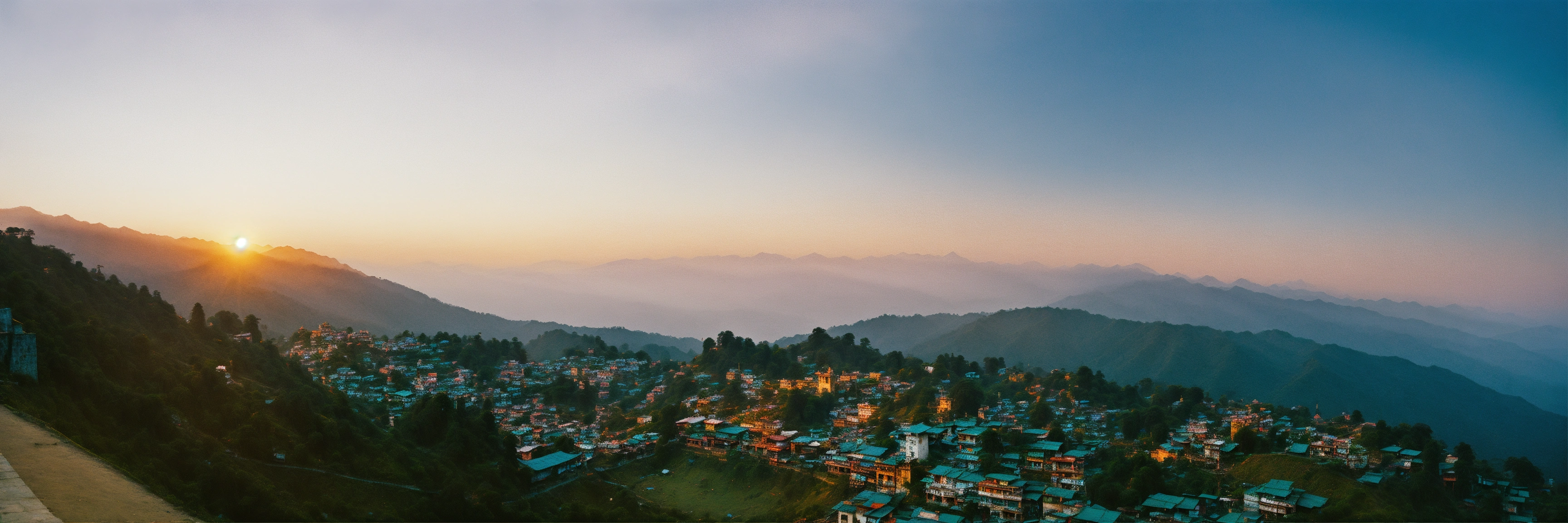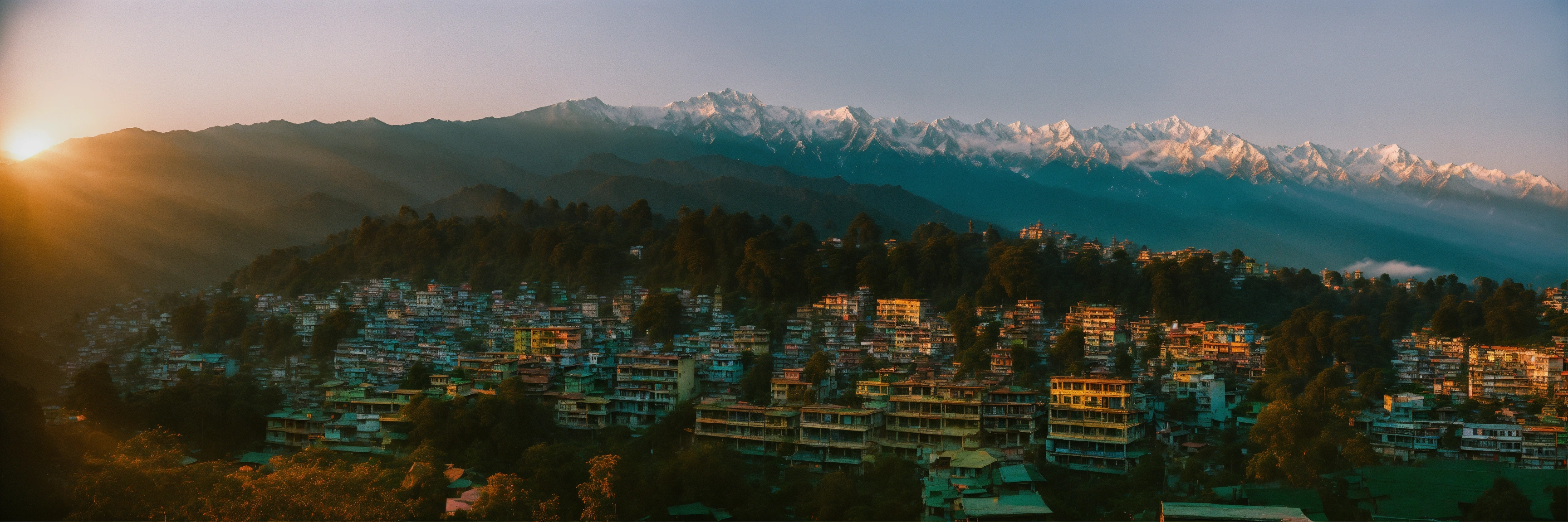 Beautiful photograph of dharamshala in india at sunrise taken on portra 400