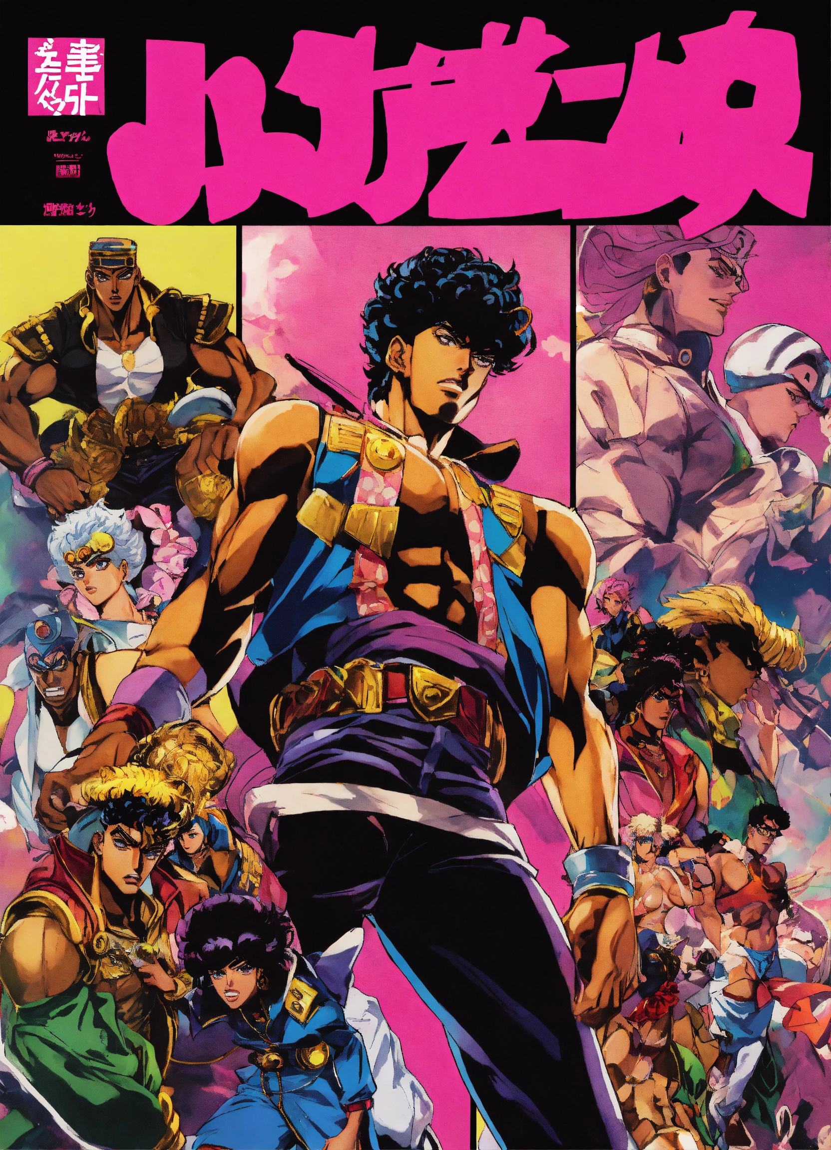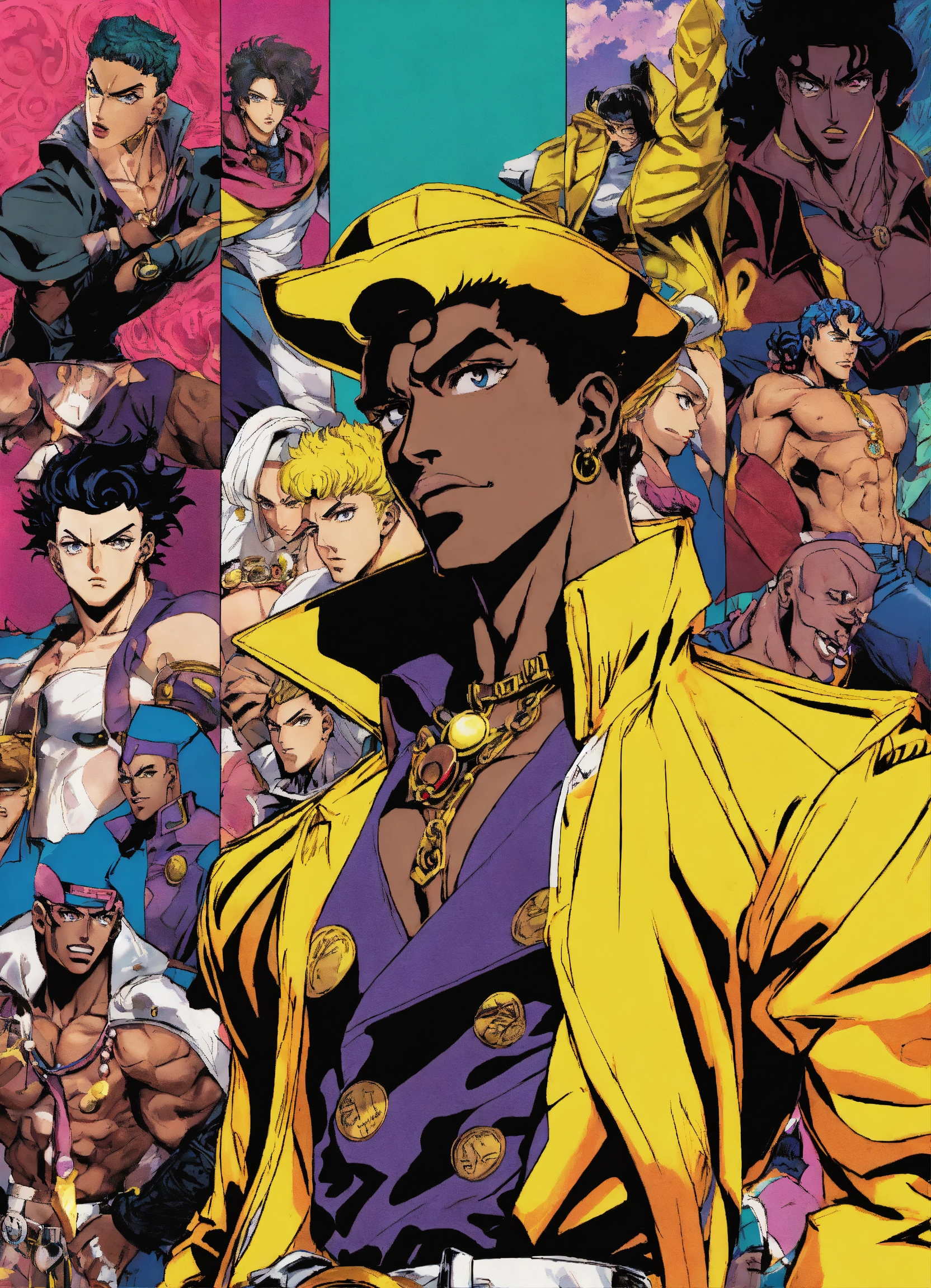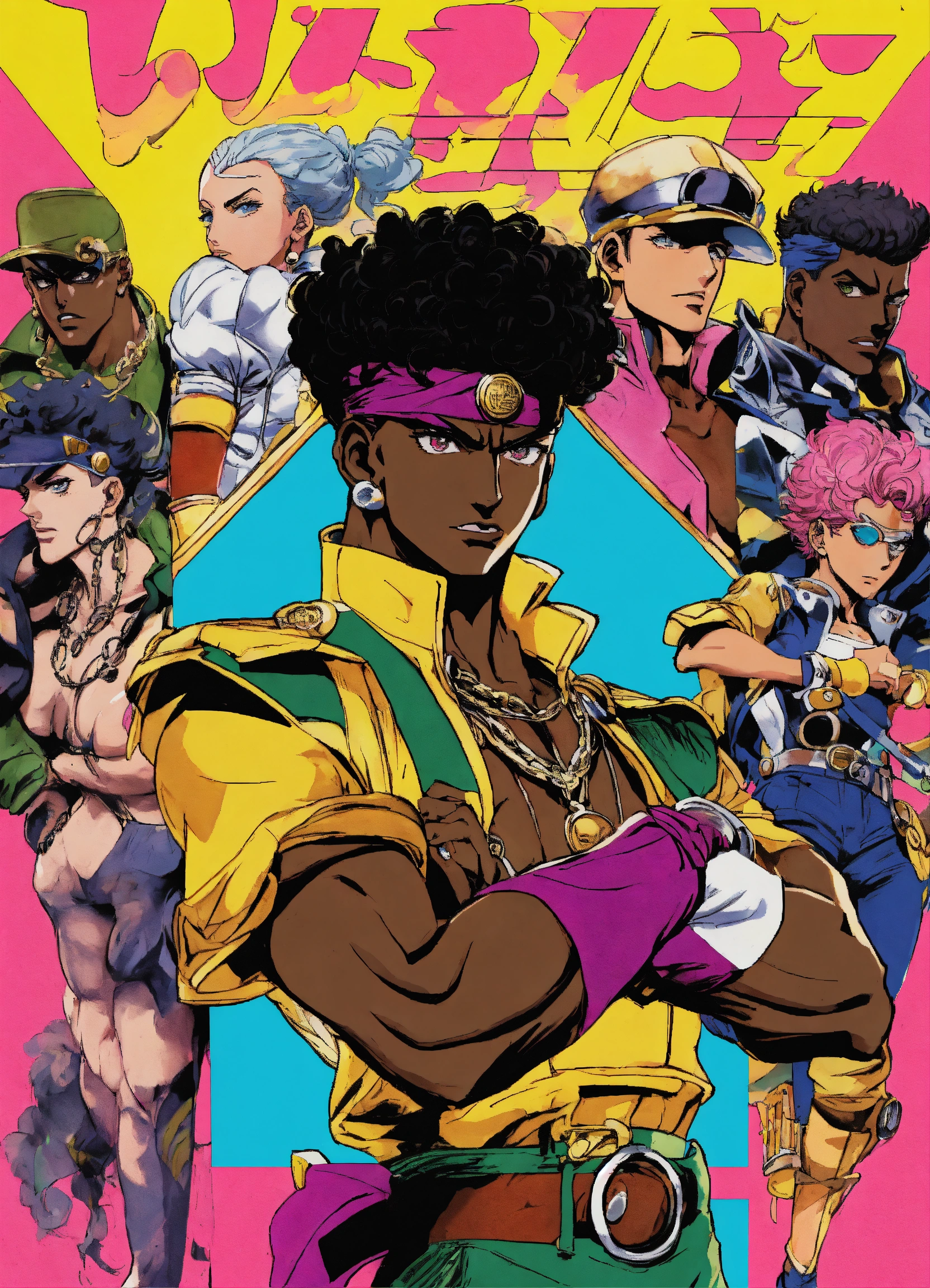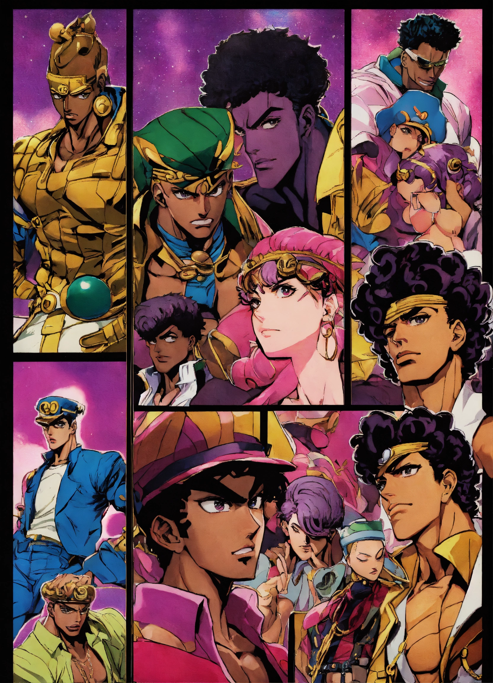 80s anime style black characters jojos bizarre adventure stands comic covers and panels