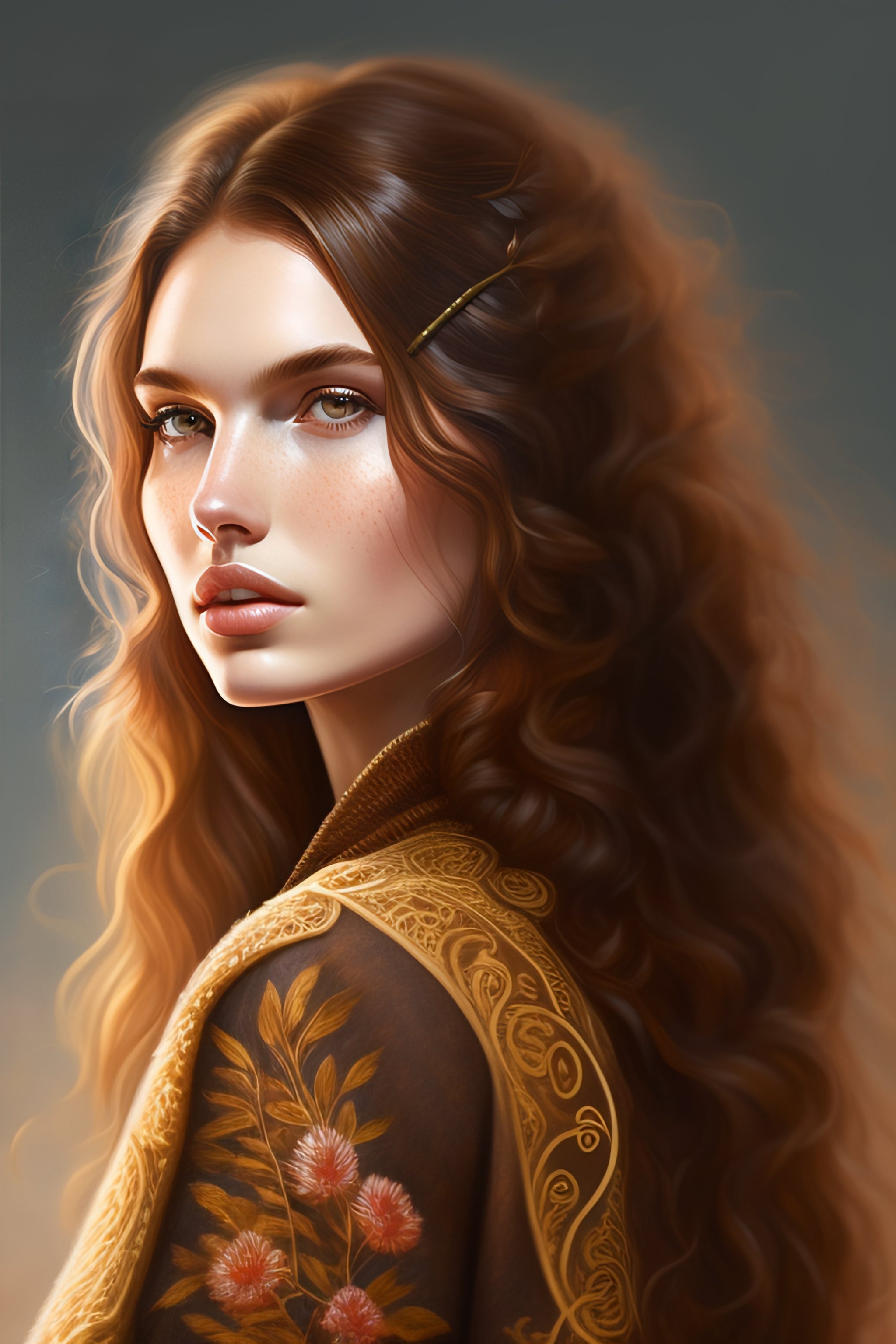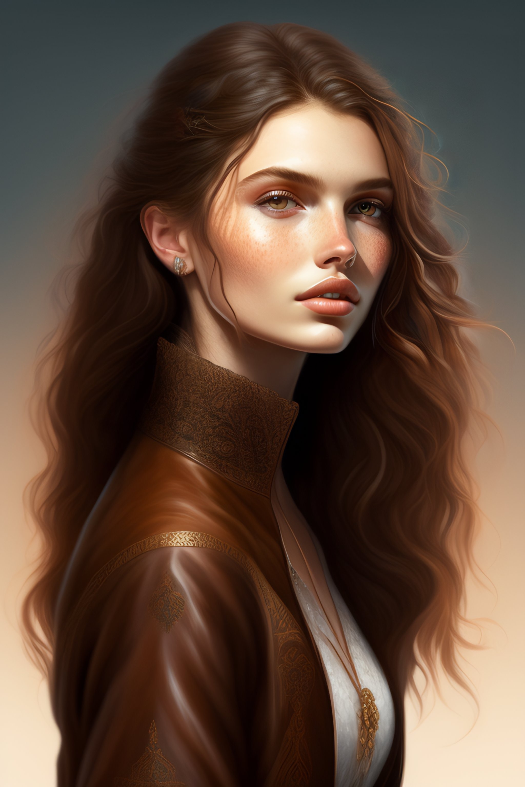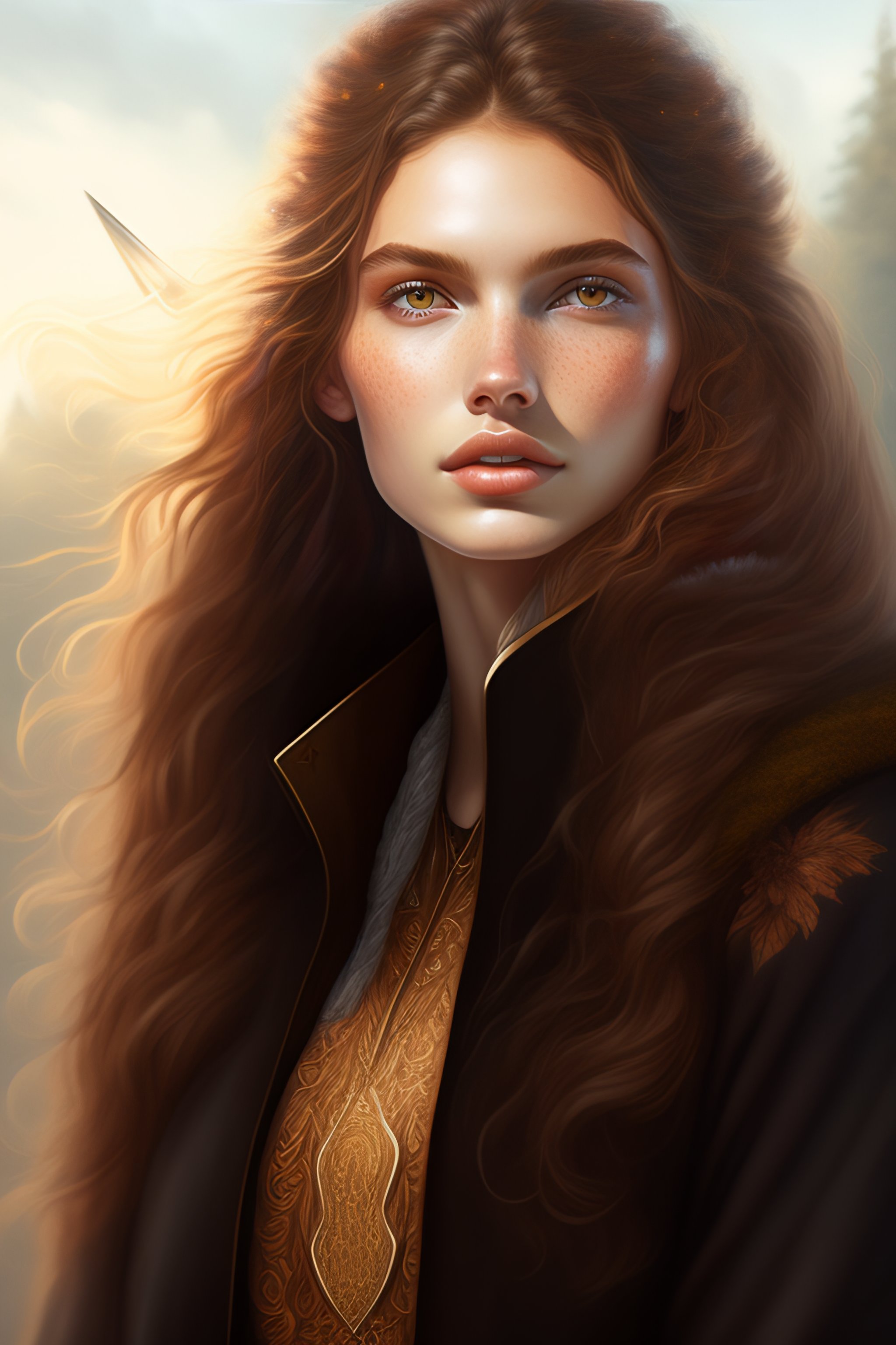 A full body portrait of a beautiful wild, intricate, elegant, highly detailed, digital painting, artstation, concept art, smooth, sharp focus, illustration, brown hair, black jacket, youthful, hannah murray, round face, messy hair, holding wooden spear, hippy, freckles, shades