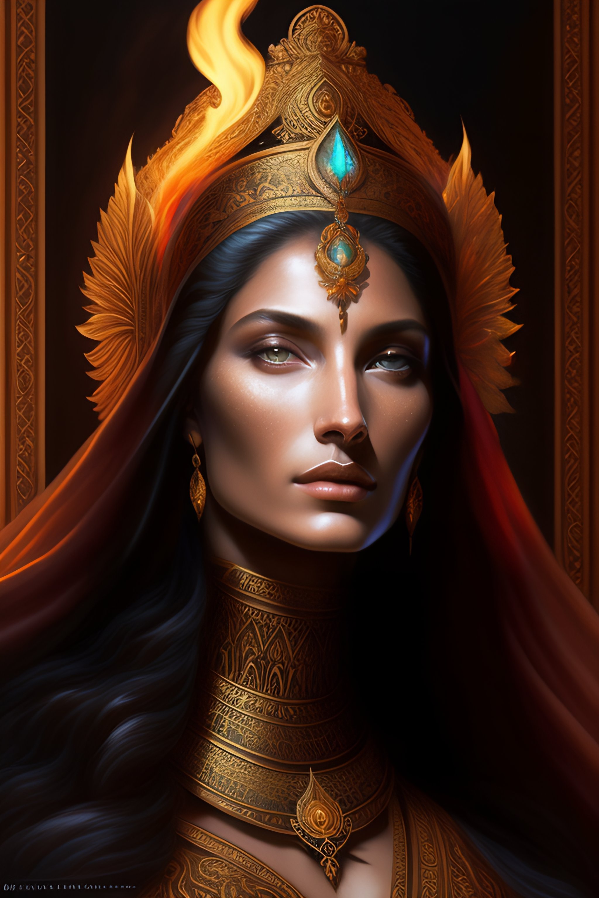 Perfectly detailed godess of fire of european ancestry, intricate and highly detailed dark painting, divine aztec perfection. digital painting, art station, concept art, sharp soft focus, illustration, art by artgerm and greg rutkowski and alphonse mucha, dante scene, dark portrait. fire, skulls and bones, light dark, black clothing, elegant, light skin, renaissance, davinci, michelangelo
