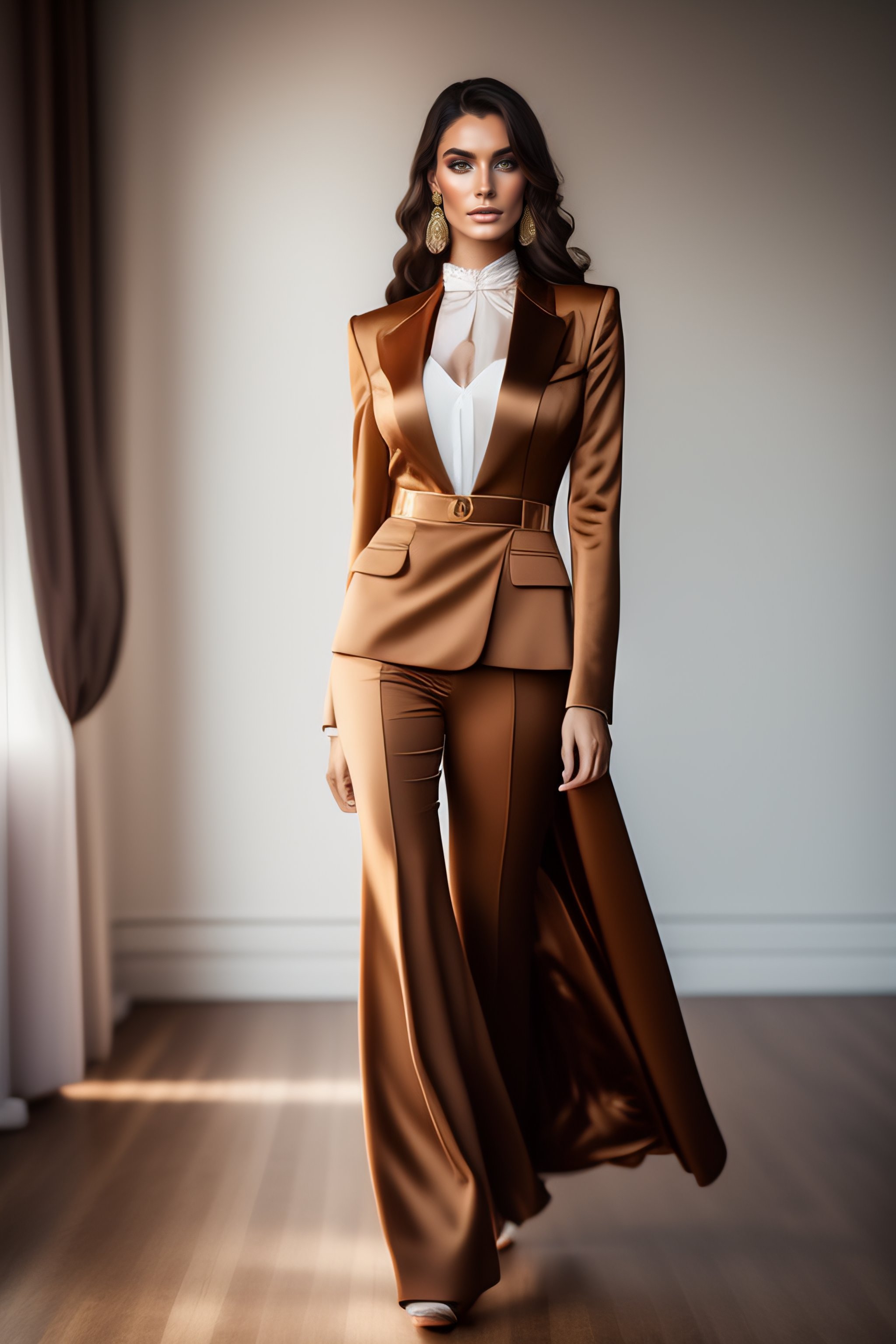 Ultra hd, canon 50 photo of brunette model wearing formal outfit, full body, natural light, hyper realistic skin, ultra-detailed, no filter, depth of field, fashion catalogue, 8k