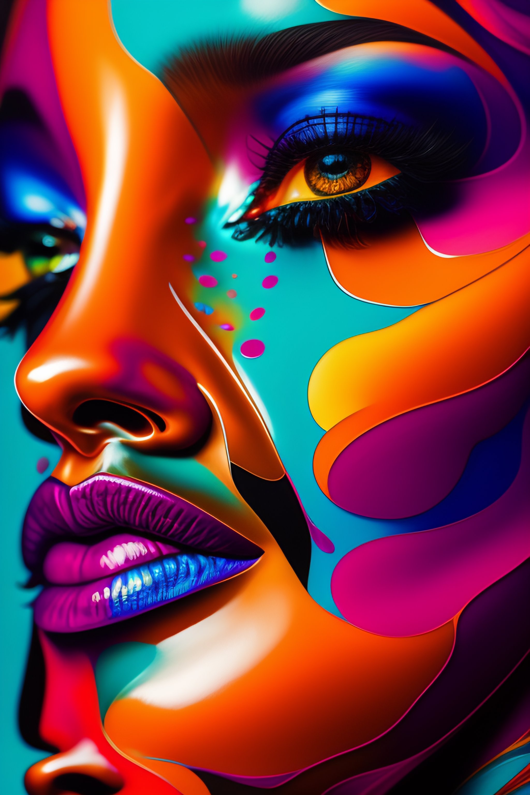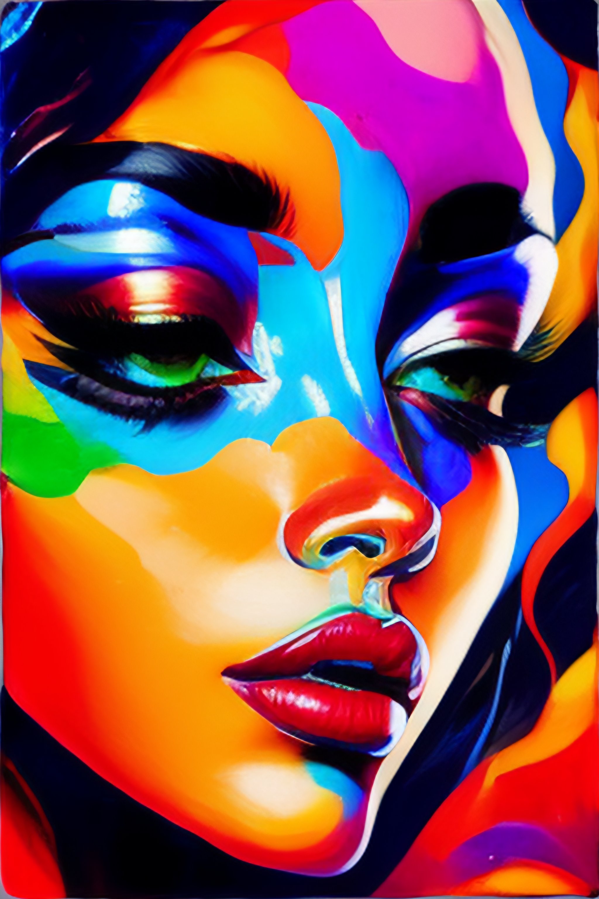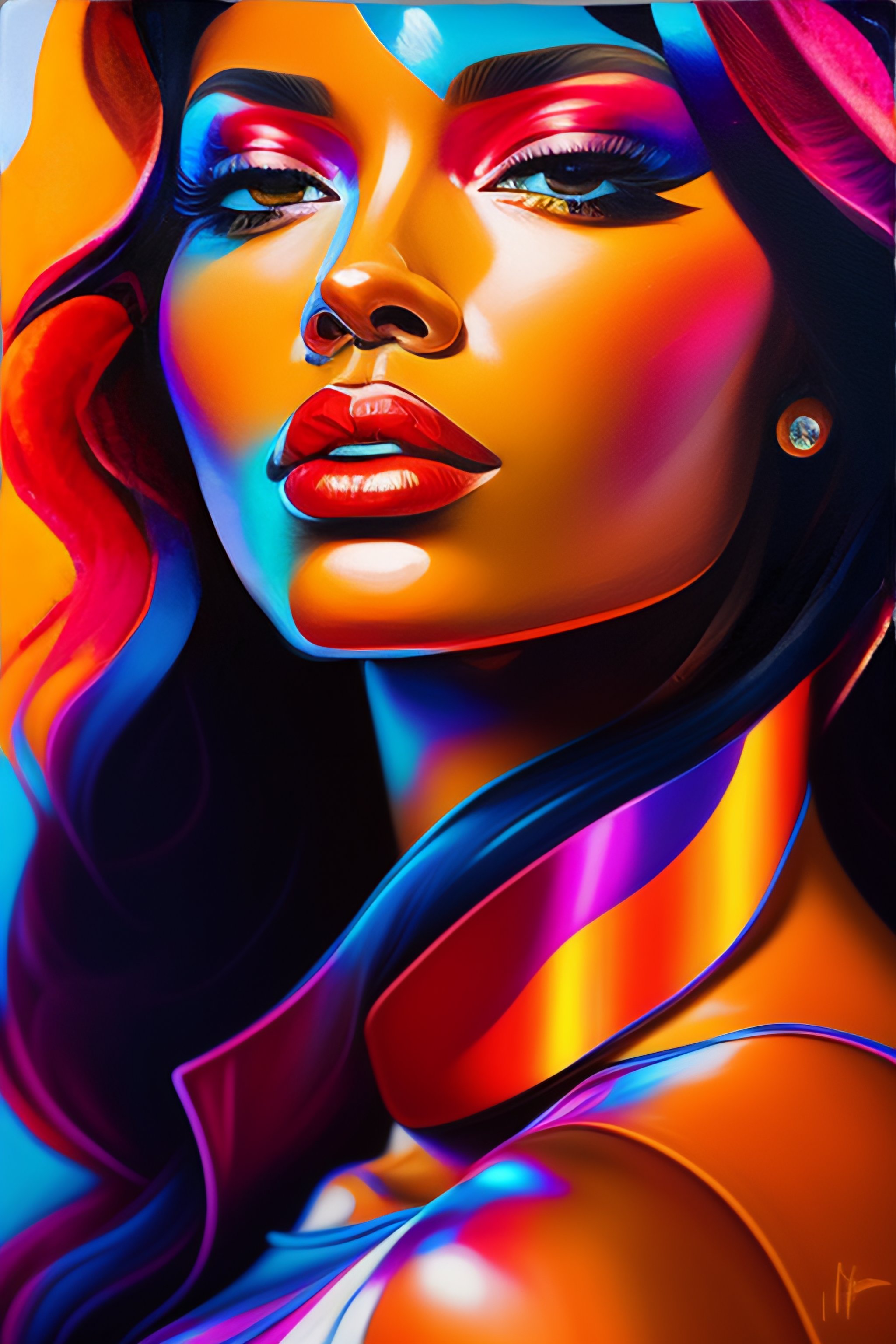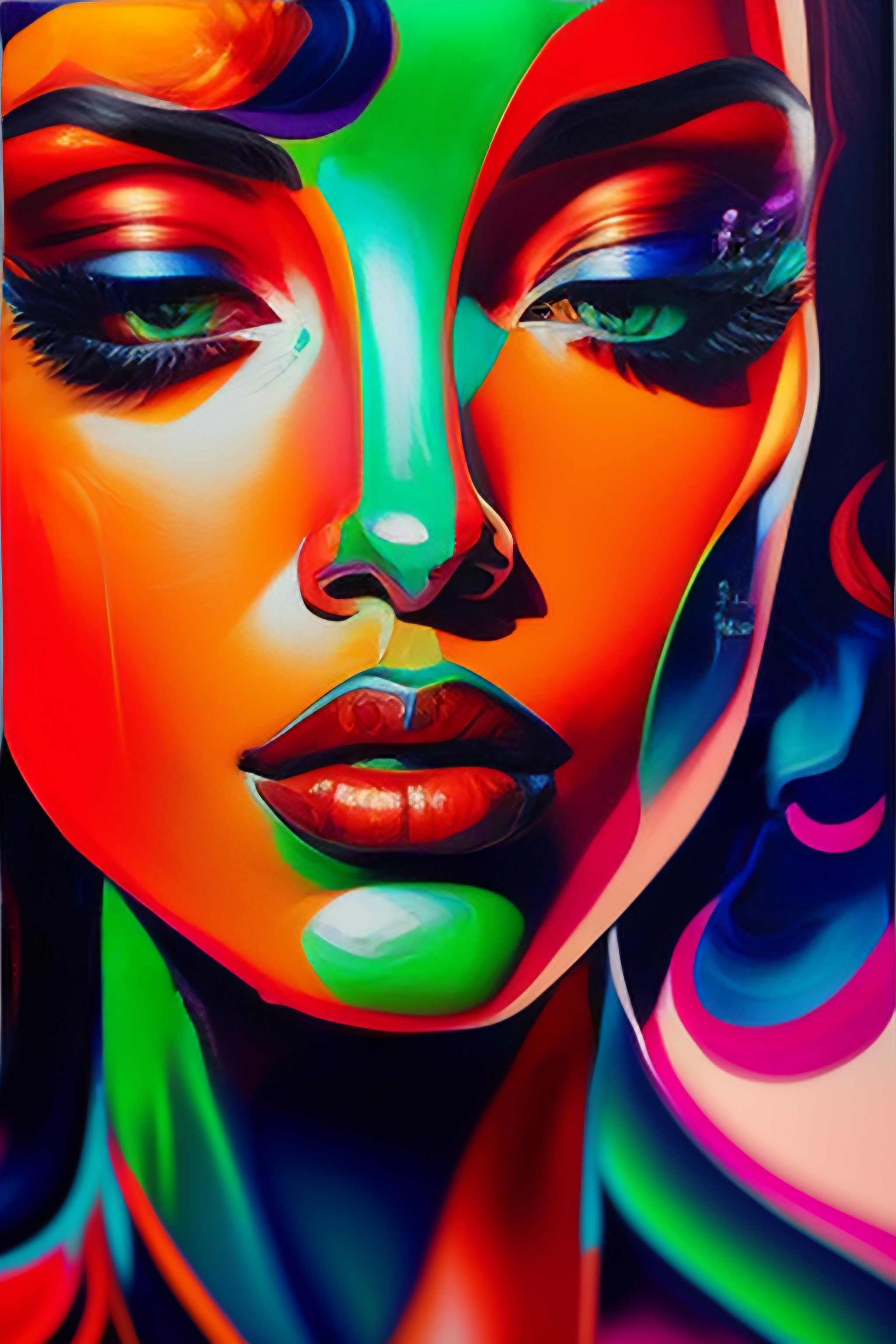 A vibrant oil painting close up of a female by françoise nielly
