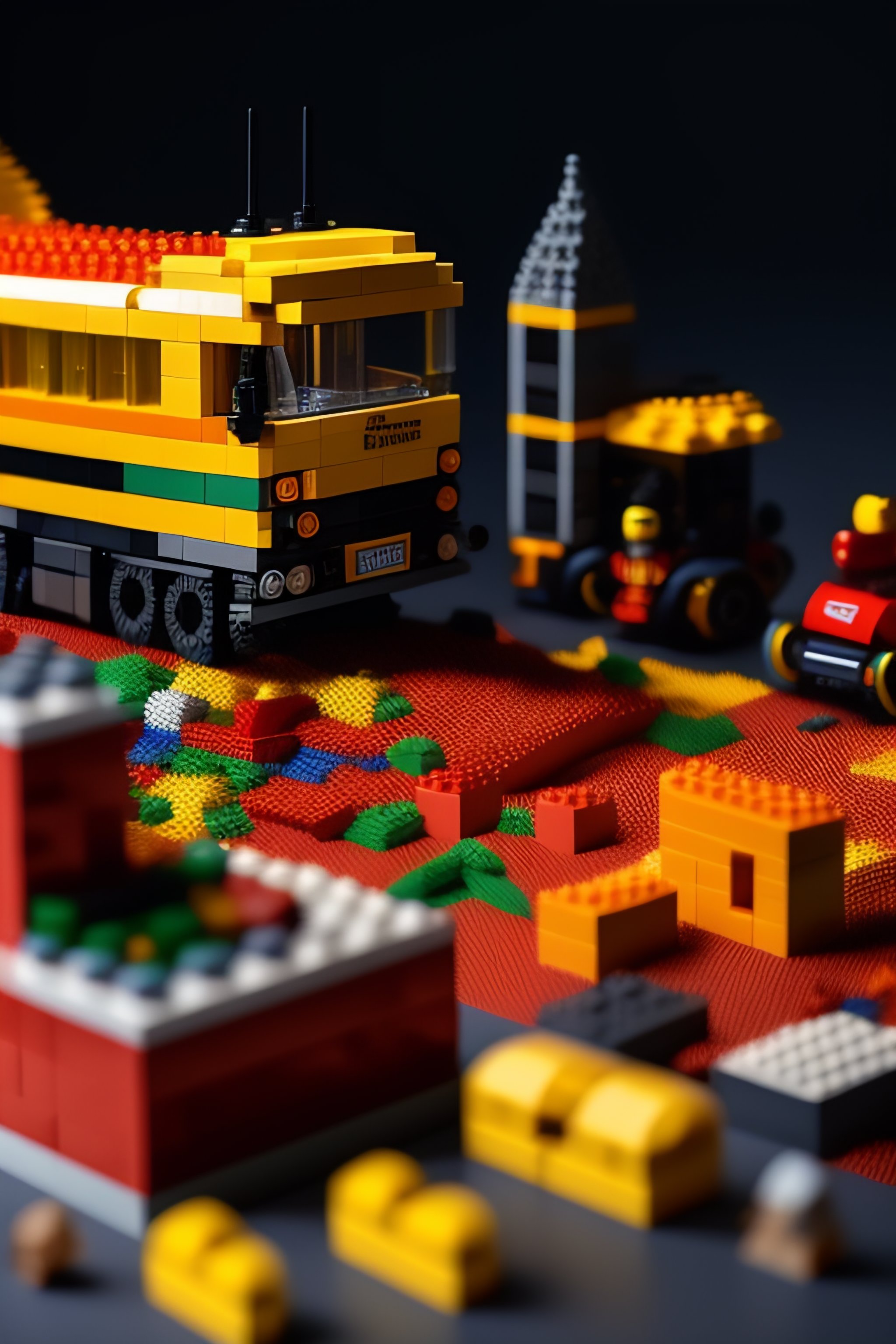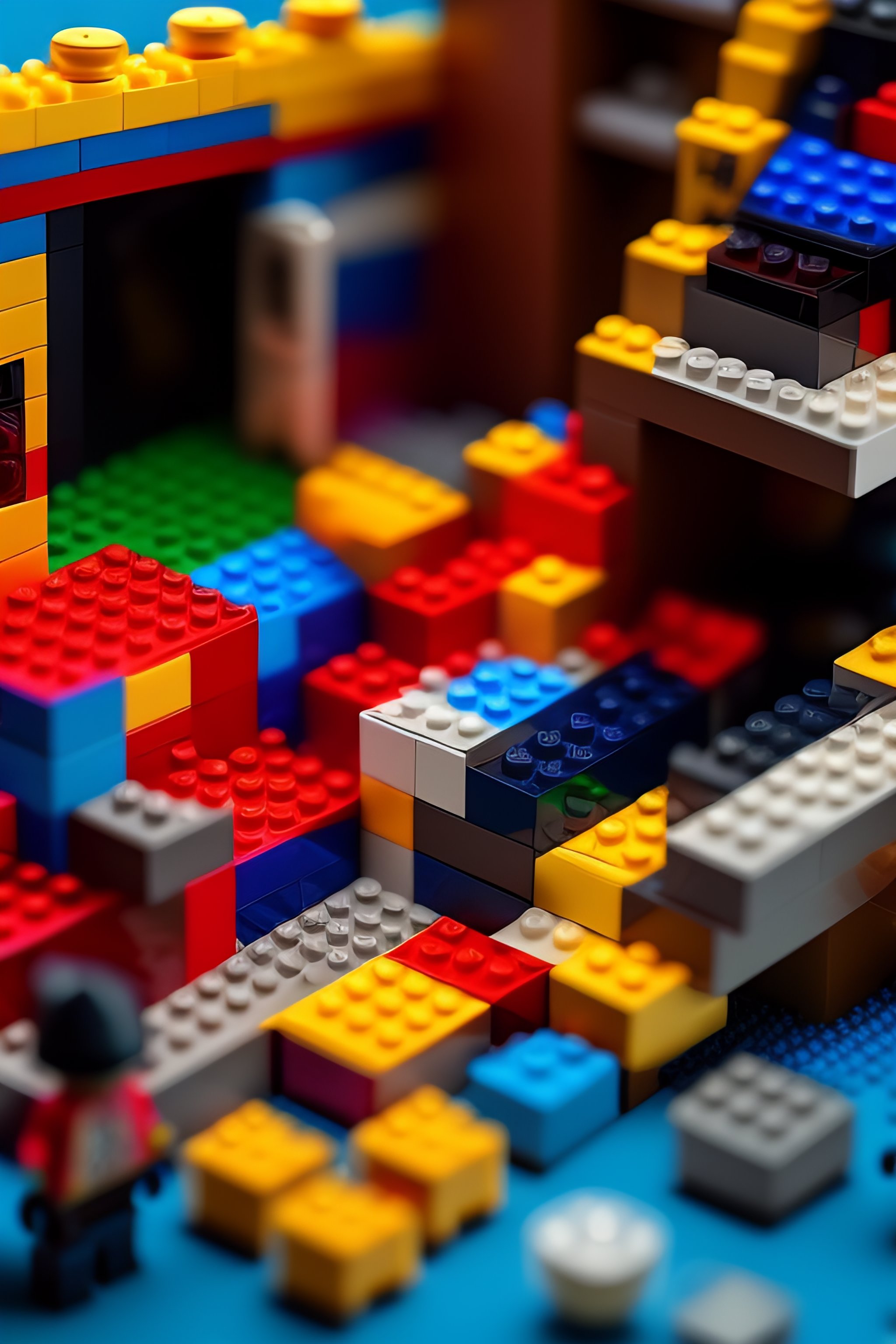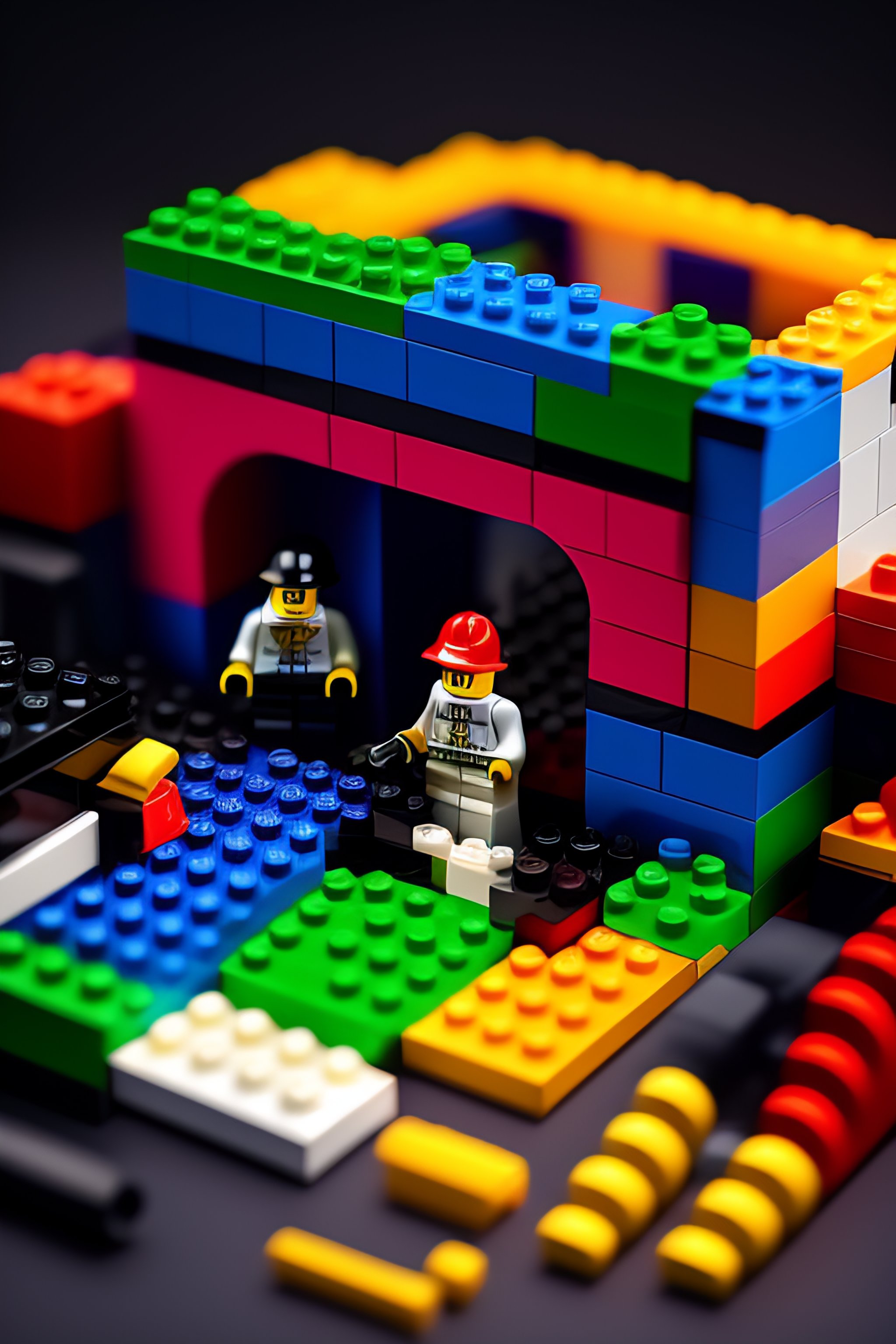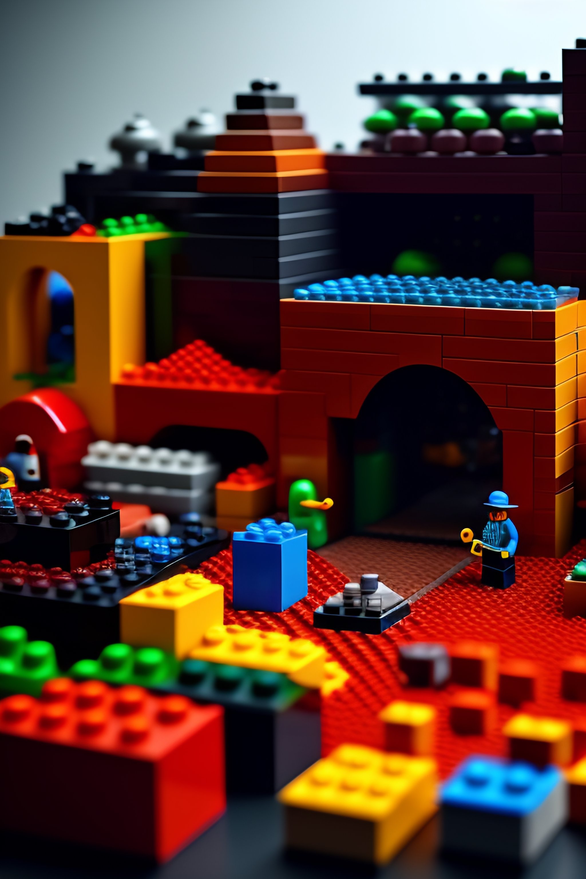 Lego bricks, costumes and props, knolling, knolling layout, deconstruction, highly detailed, depth, many parts, lumen render, 8k
