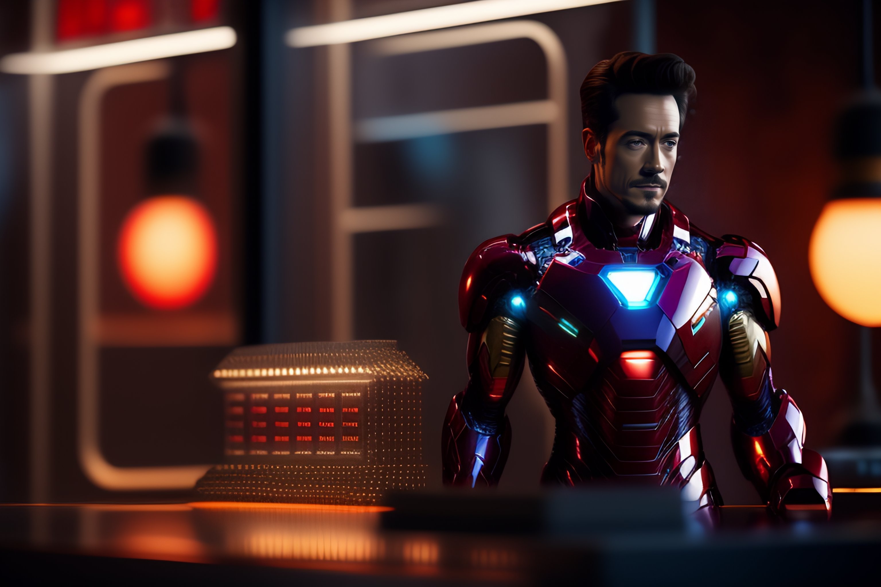 Ironman jarvis, desktop wallpaper, dark background, behind glass, knolling, knolling design, highly detailed, depth, lumen rendering, 8k