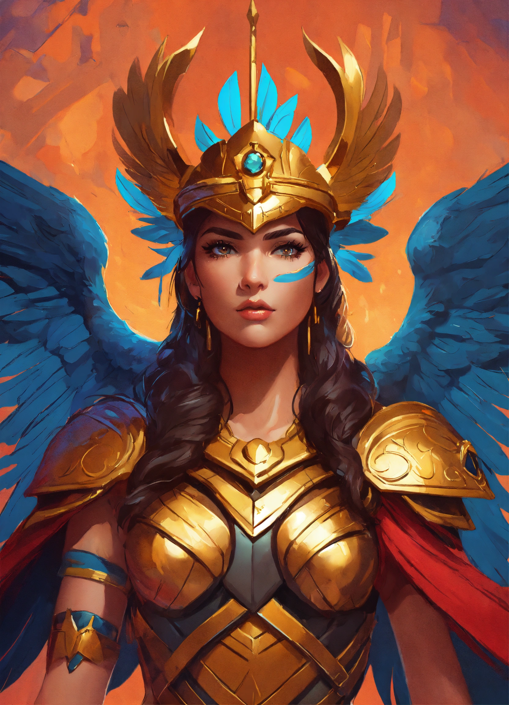 Amazon valkyrie athena, cartoon oil paint, 2d illustration style, sharp focus, bright color, digital paint character design, trending on artstation, high details, simple lines, art by josé luis ágreda and camilla d'errico