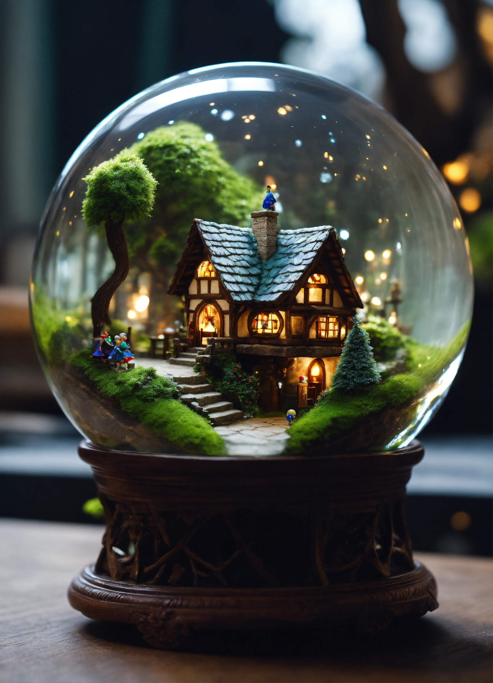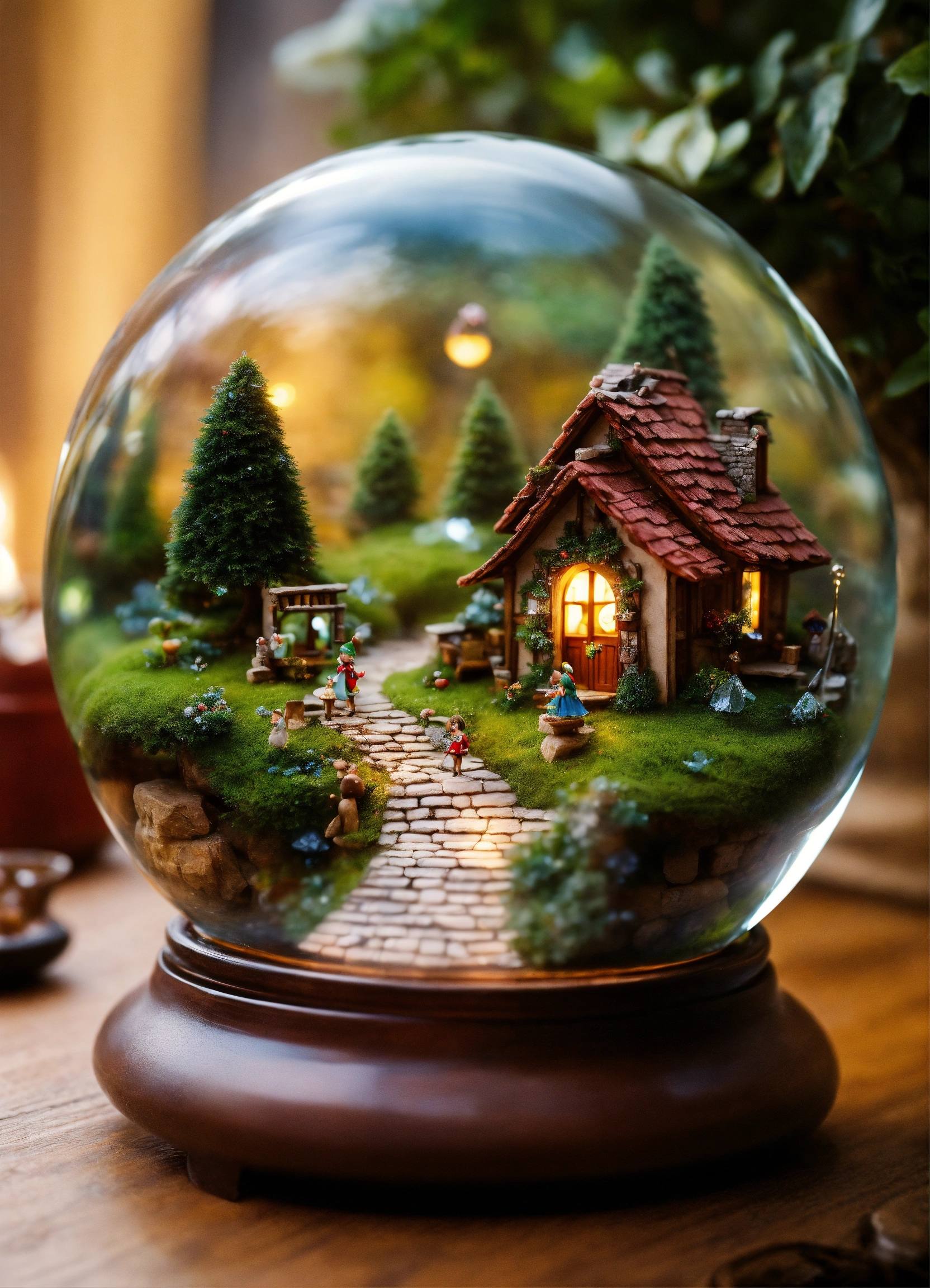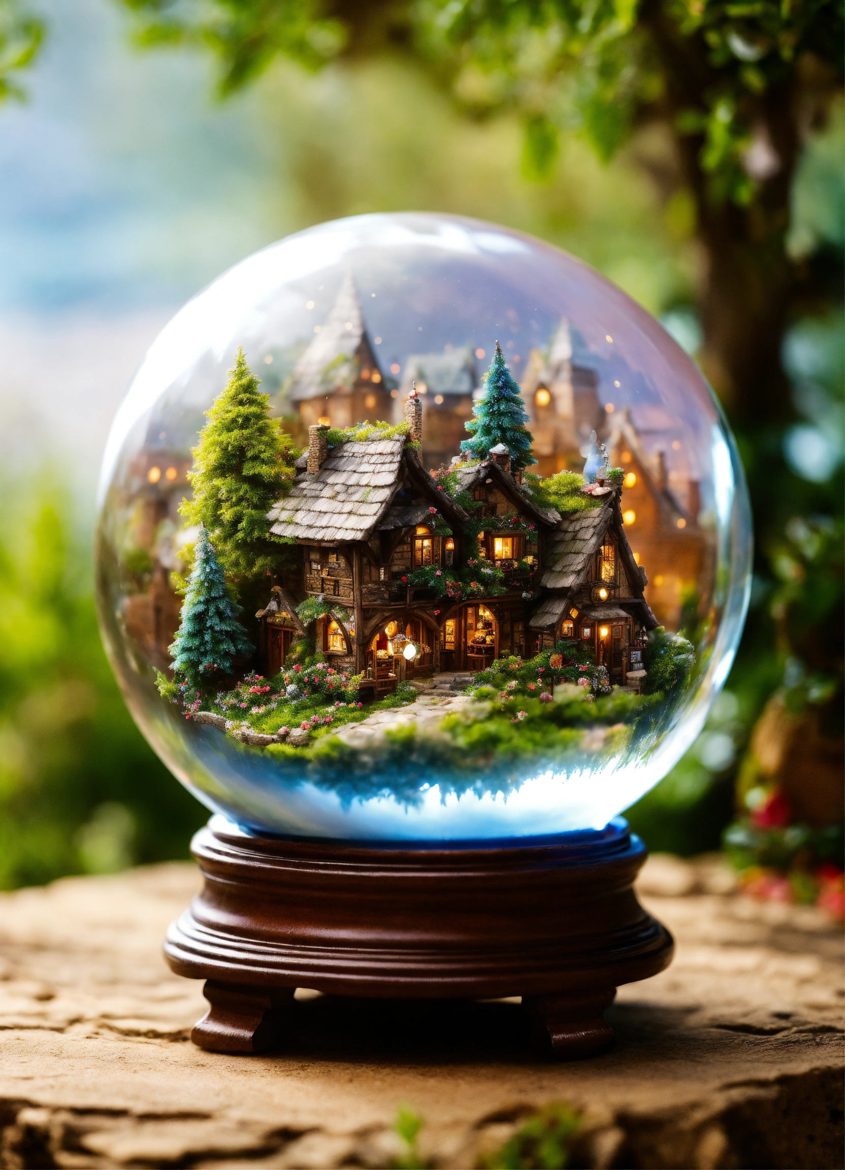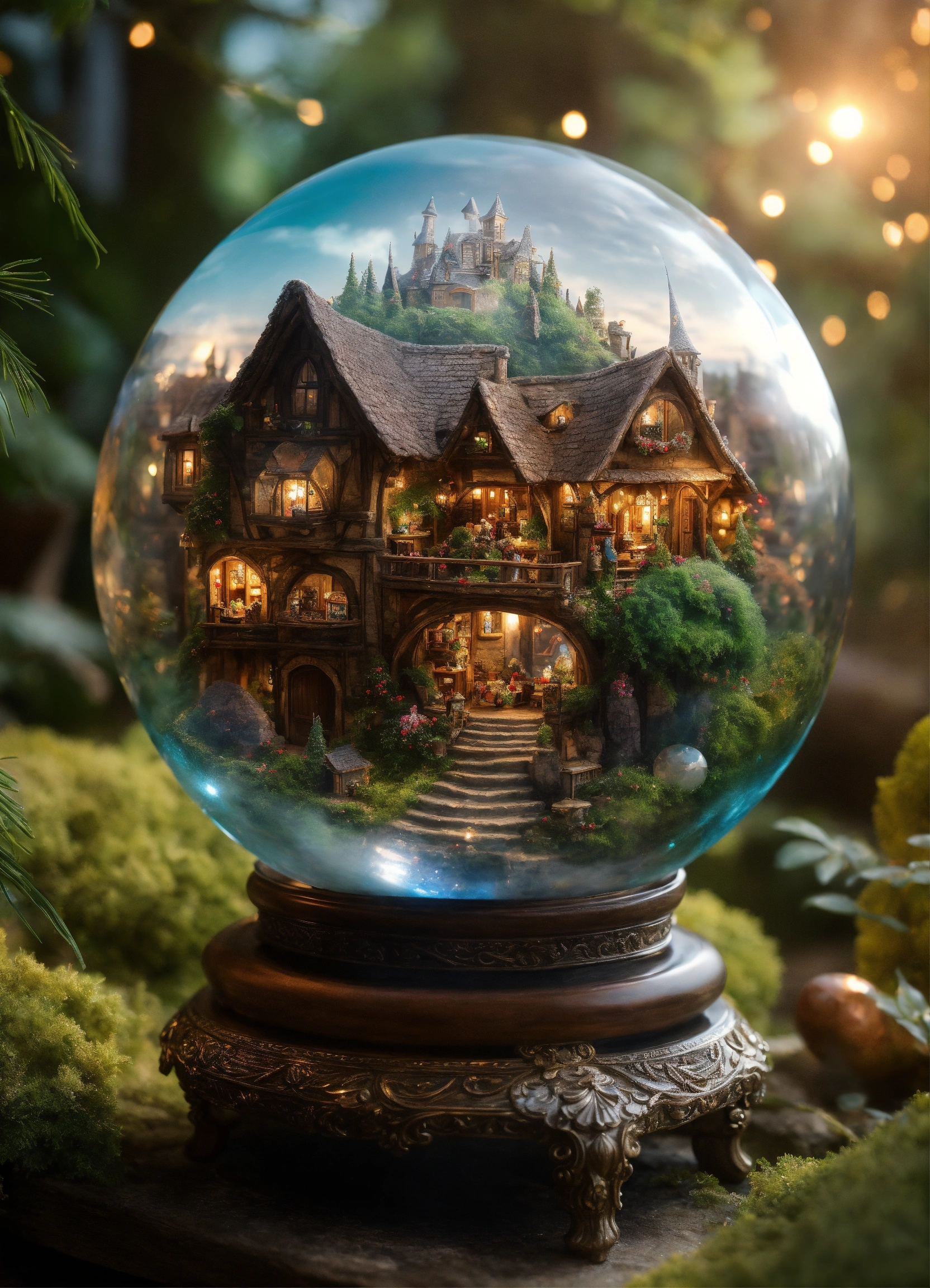 A beautiful crystal ball with a elf village in it with a full body beautiful elf in it perfect clarity photorealistic high definition beautiful quality