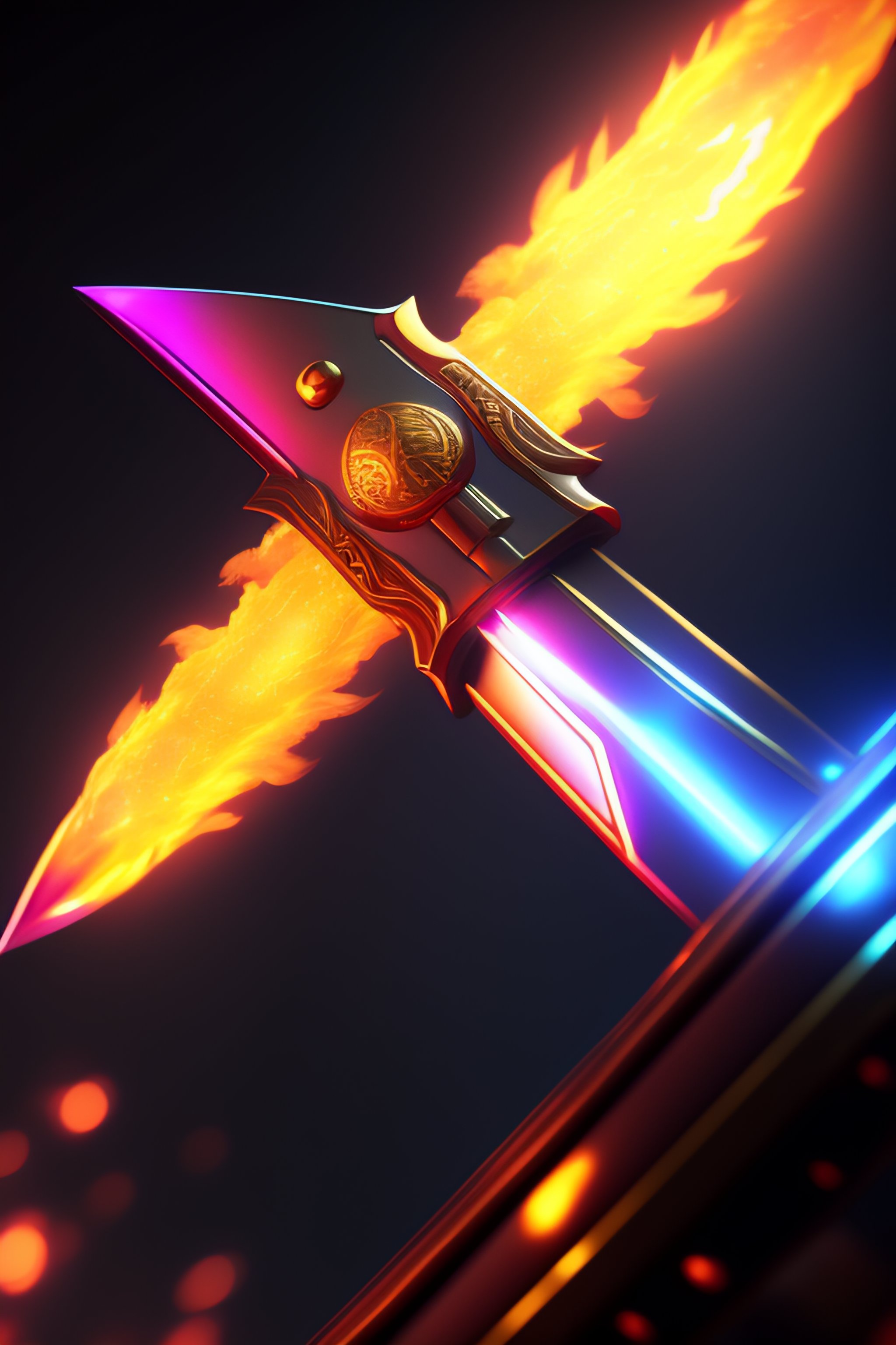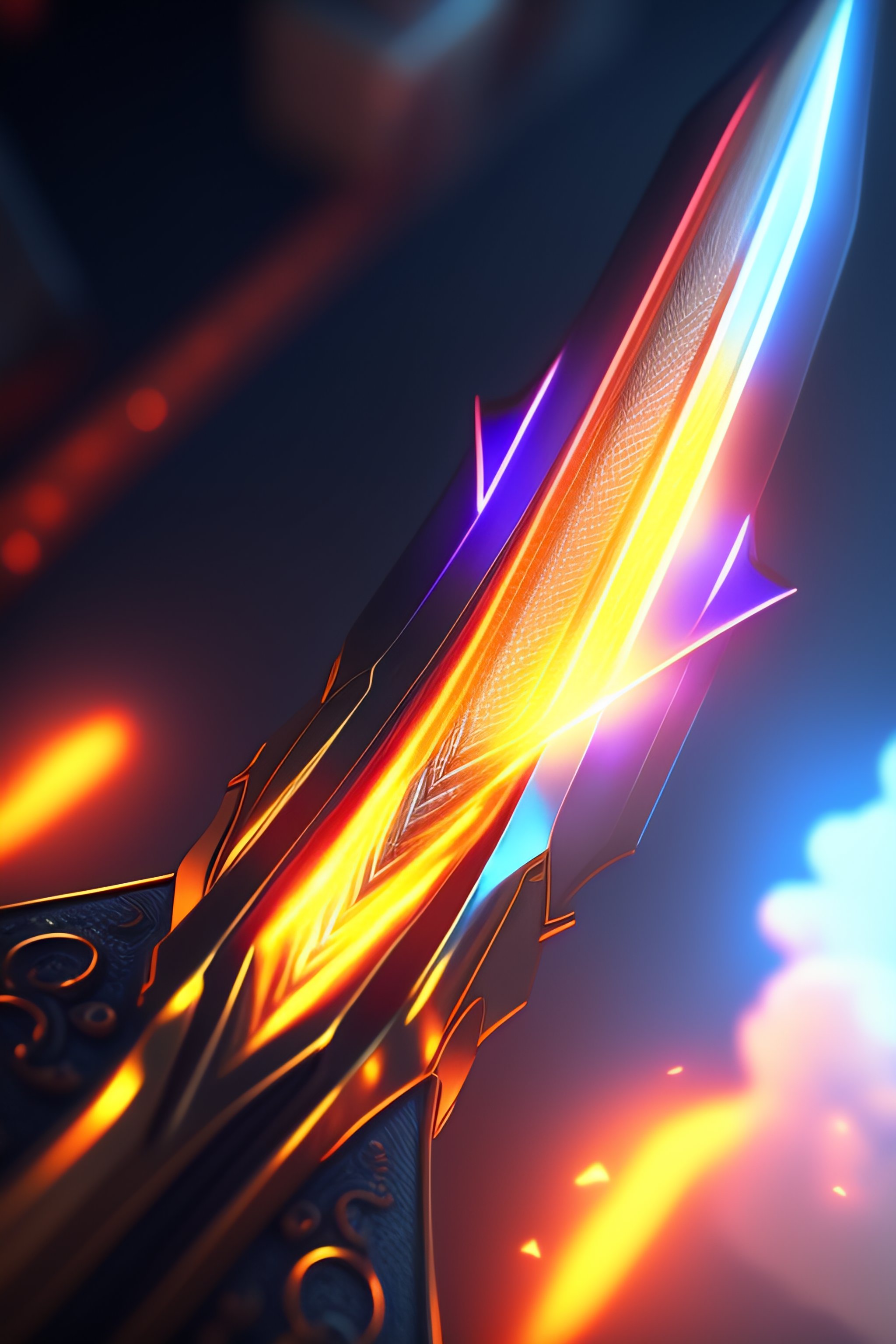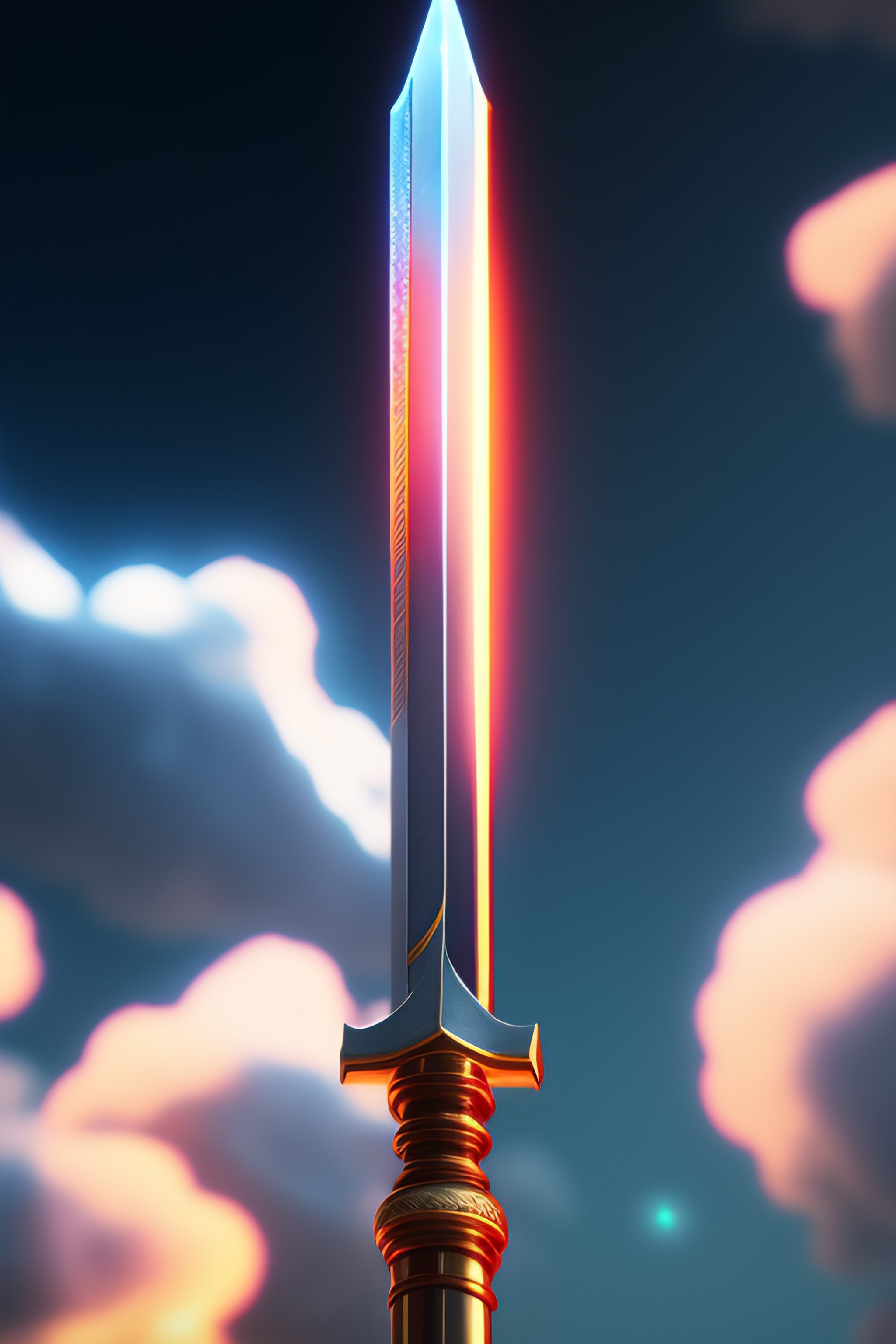 Cyberpunk sword, sword effect, detailed fire aura, anime by sword art online sword style, bright cloud background, 8k render, unreal engine, artstation, high quality, 3d render