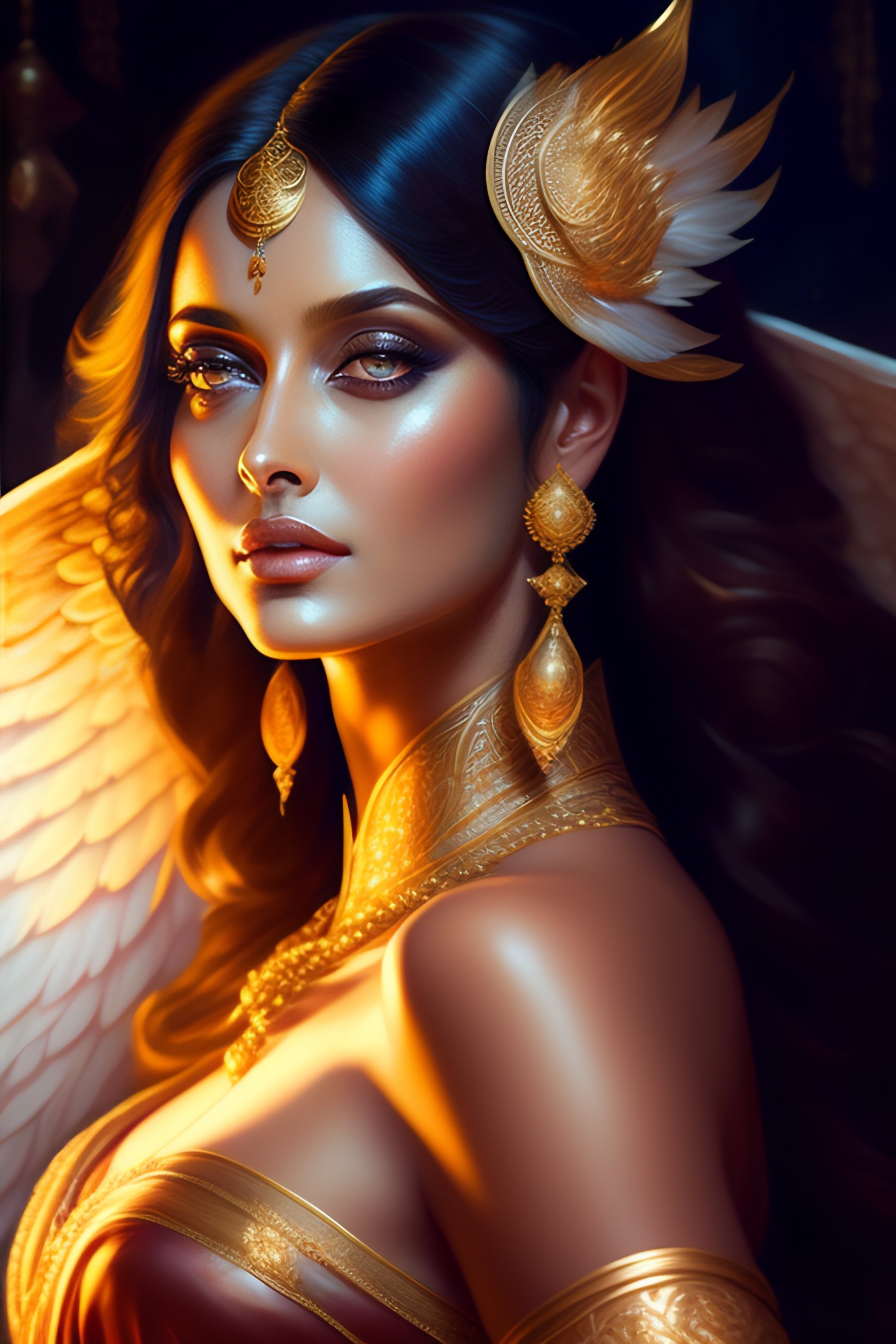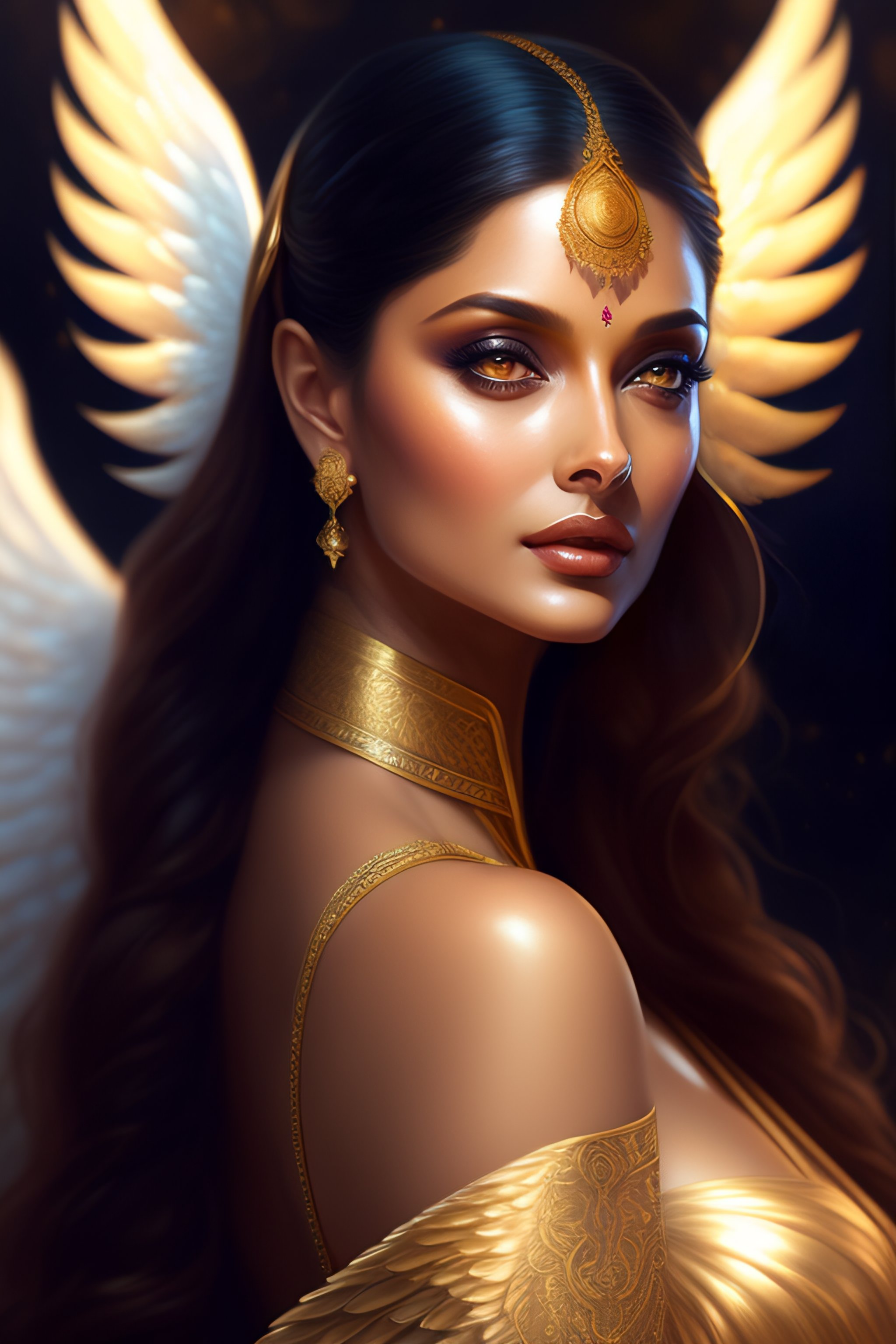 Aishwarya rai as a angel, fantasy magic, intricate, elegant, sharp focus, illustration, highly detailed, digital painting, concept art, matte, art by wlop and artgerm and greg rutkowski and alphonse mucha, masterpiece