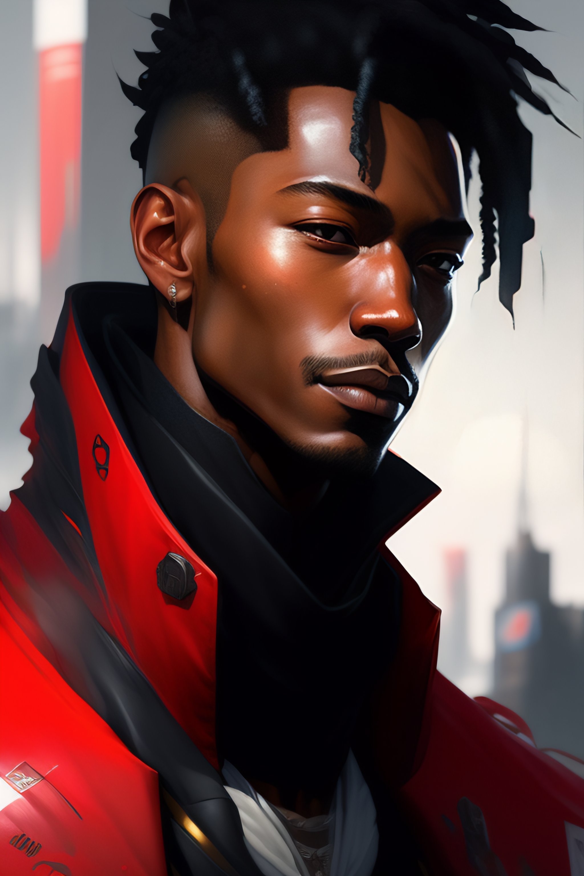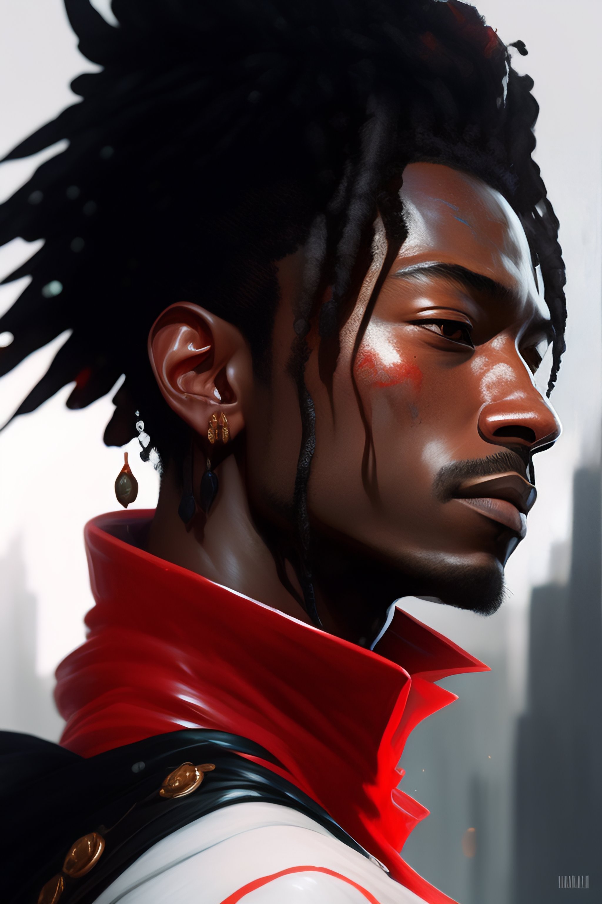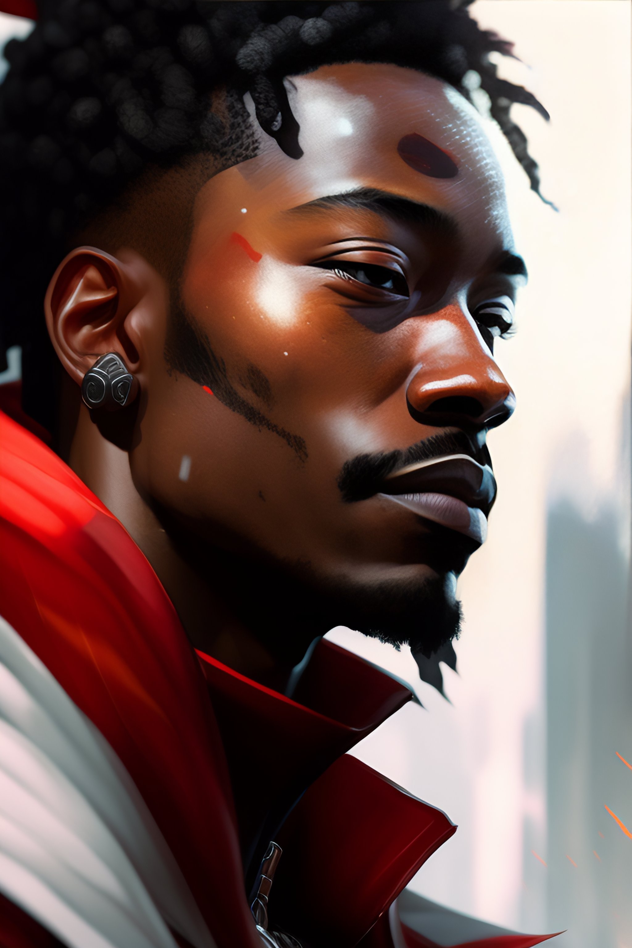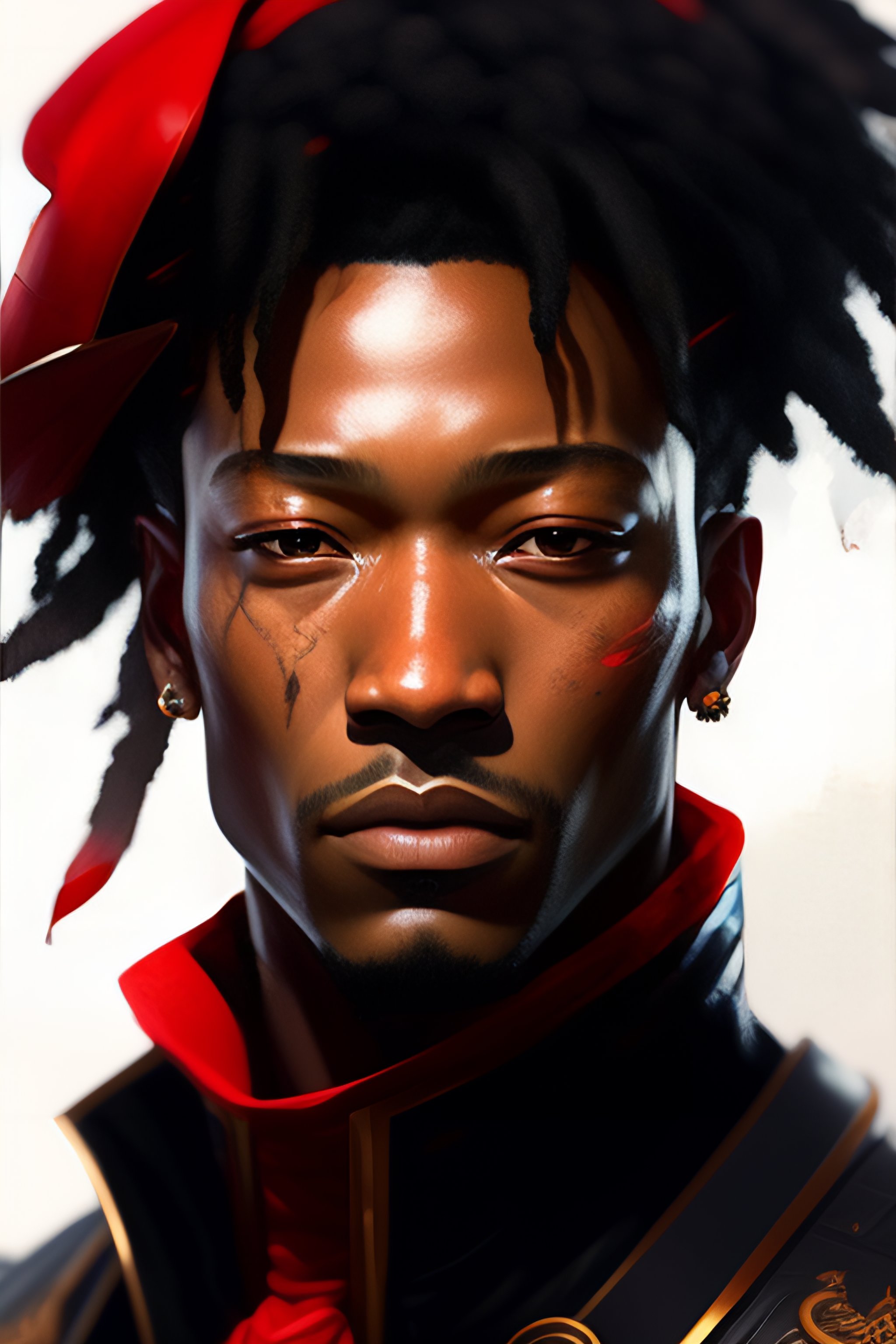Highly detailed portrait of ismael moreno cuadrado, by dustin nguyen, akihiko yoshida, greg tocchini, greg rutkowski, cliff chiang, 4k resolution, nier:automata inspired, bravely default inspired, vibrant but dreary red, black and white color scheme!!!