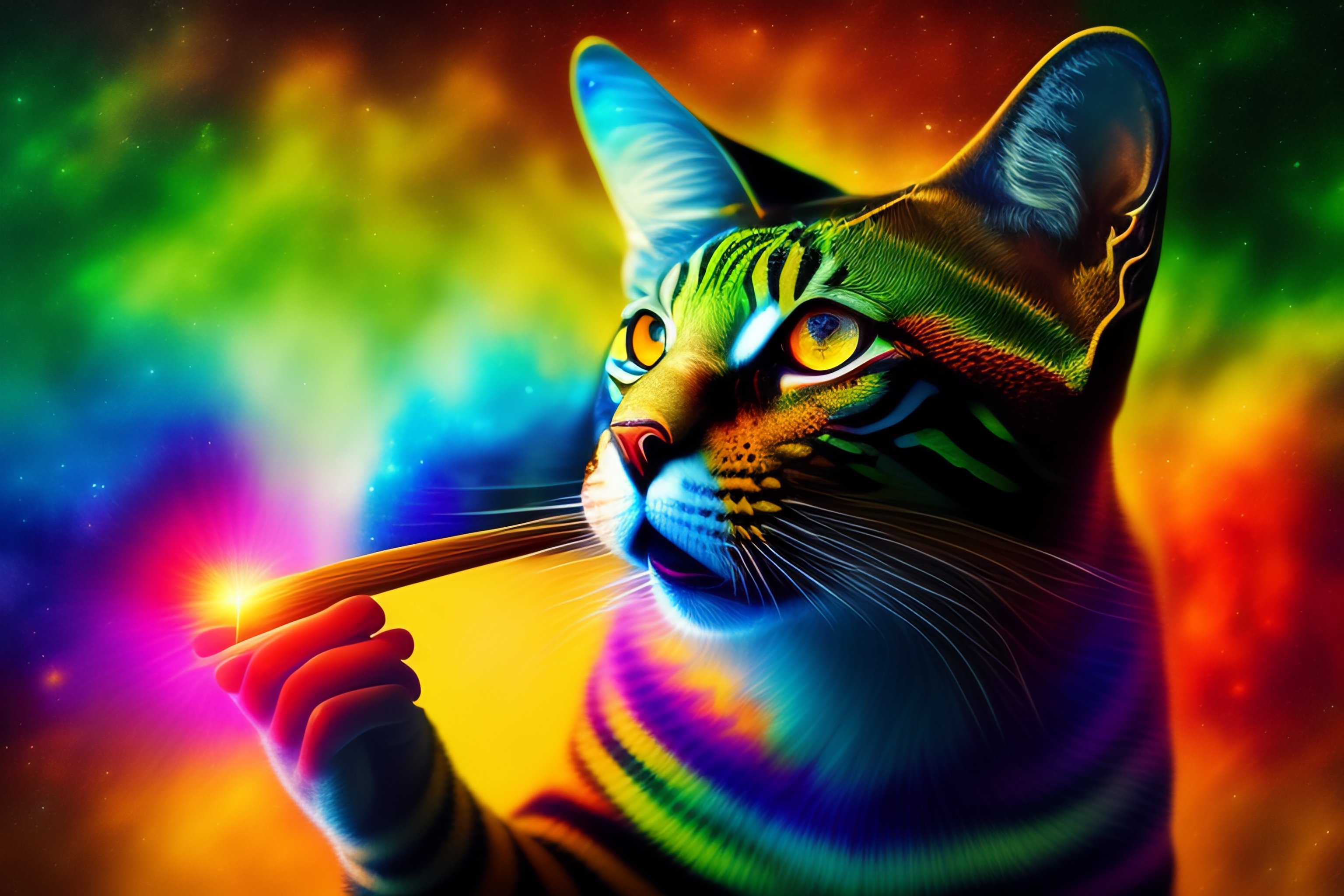 Psychedelic cat smoking weed