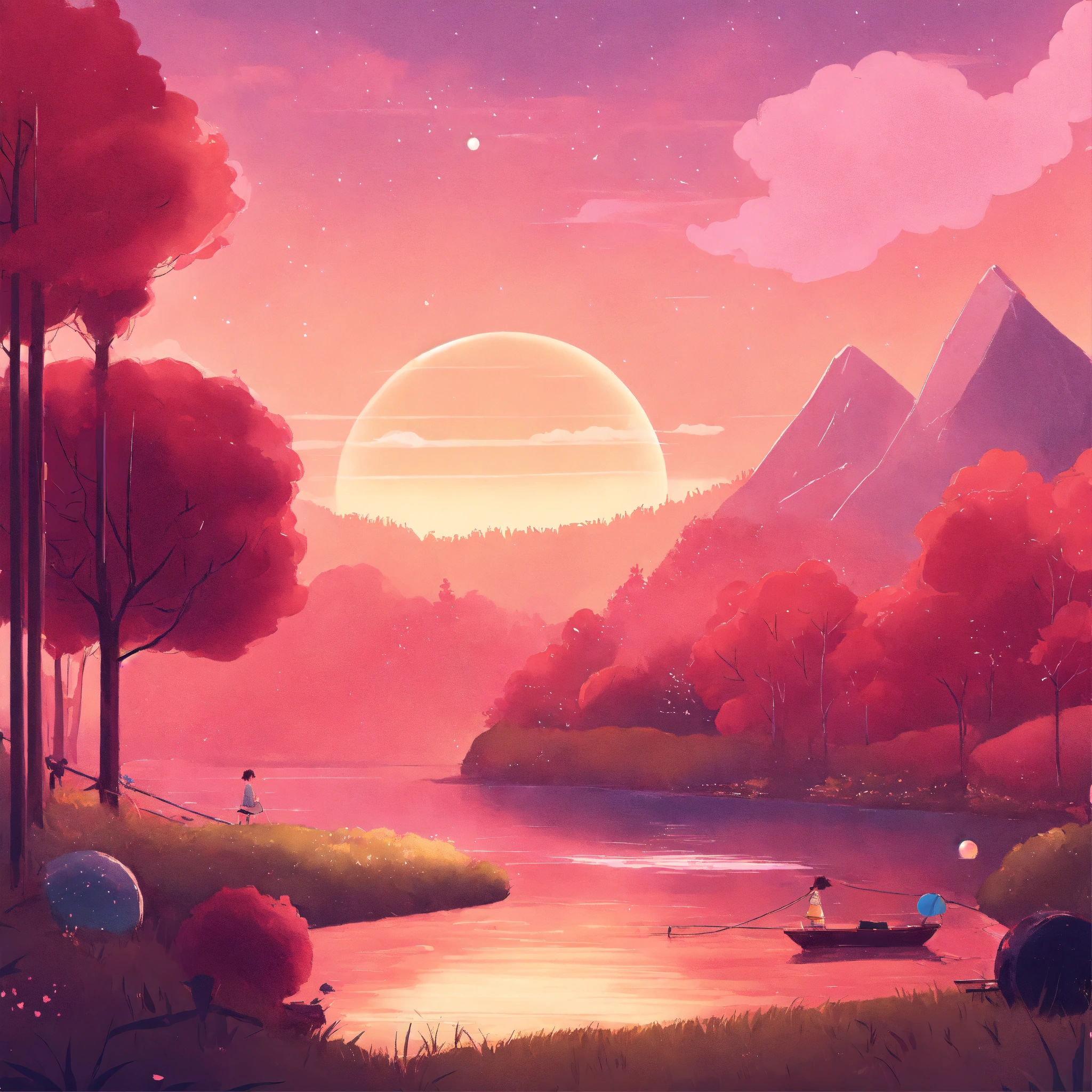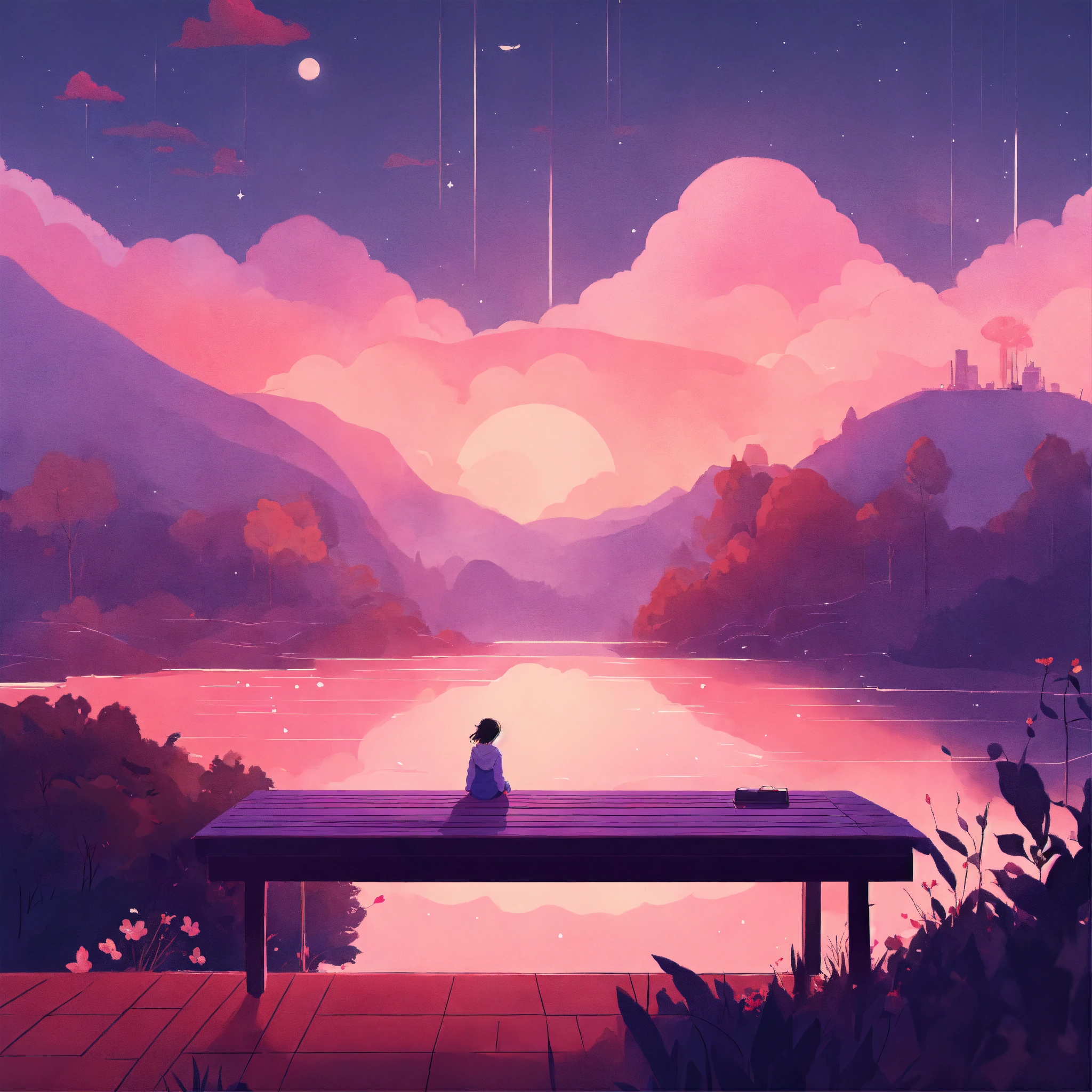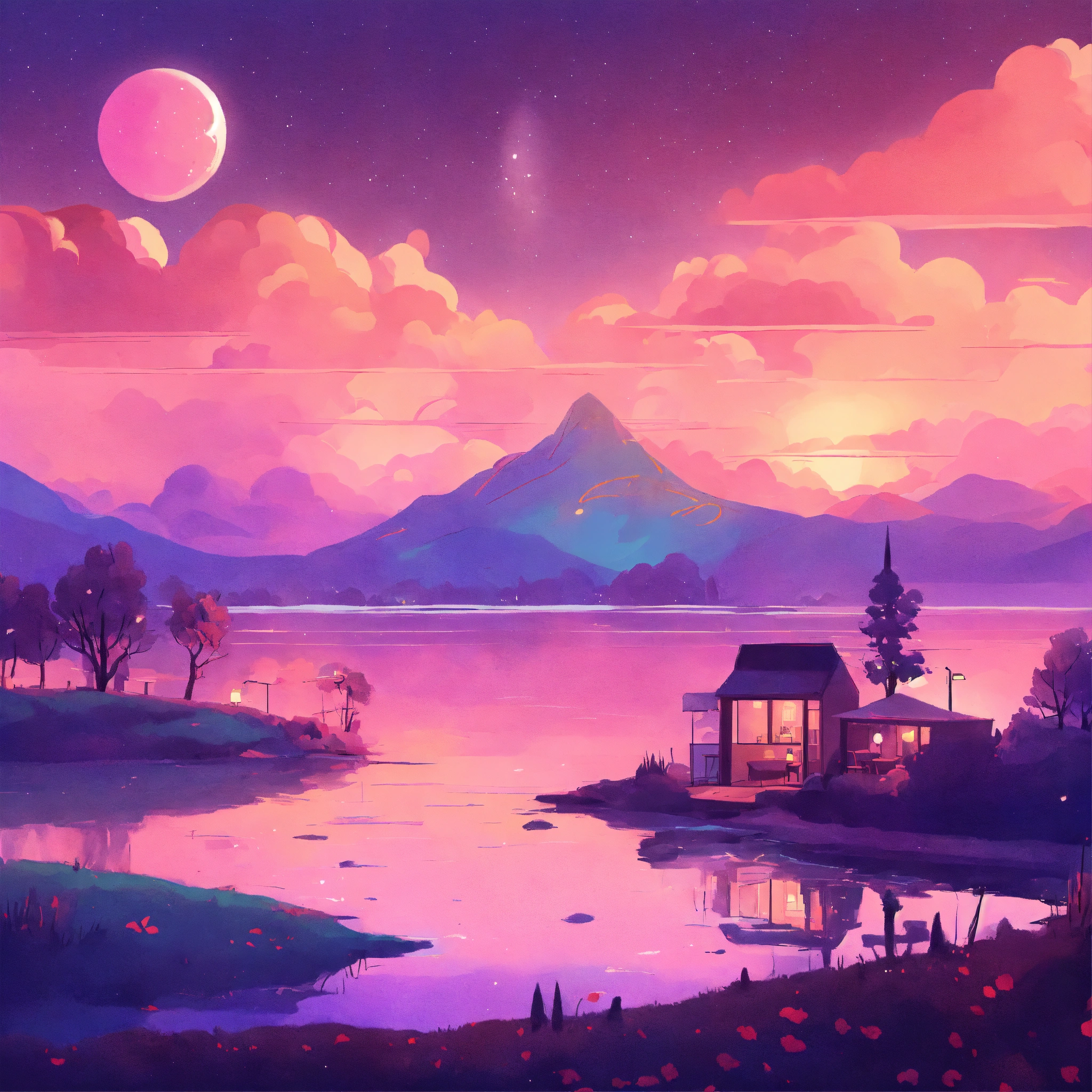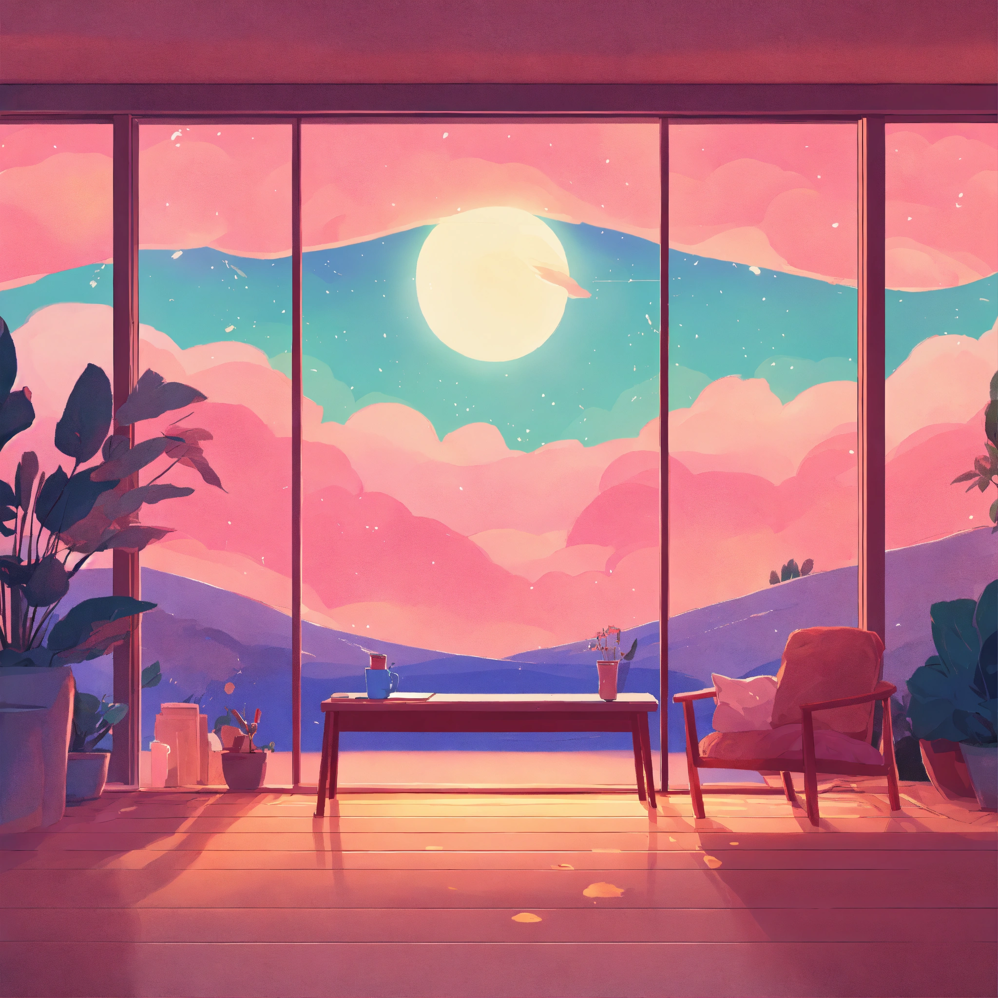 Dreamscape awakening on a cozy afternoon cozy webpage background hero image for adorable platform modern minimalist illustration, lofi