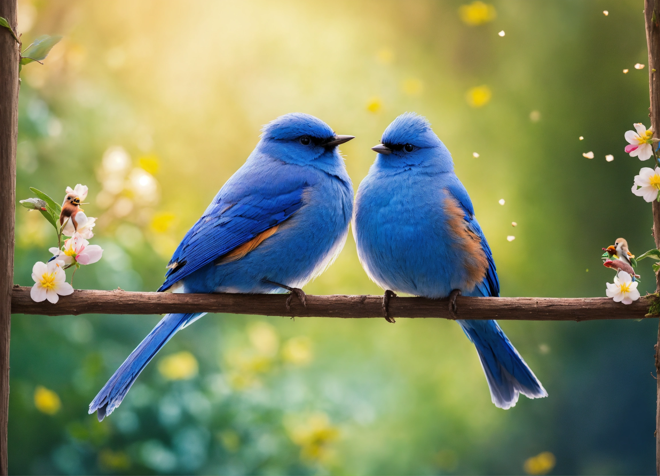 Two blue birds on either side