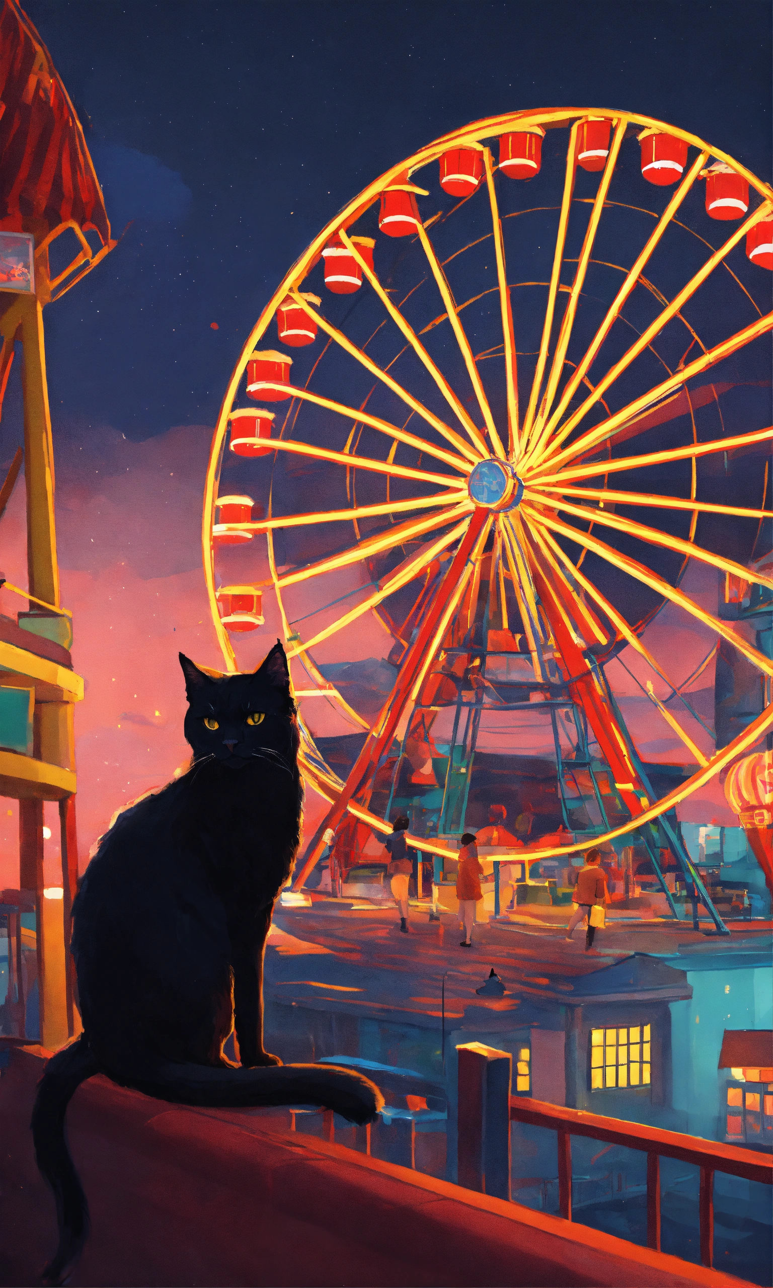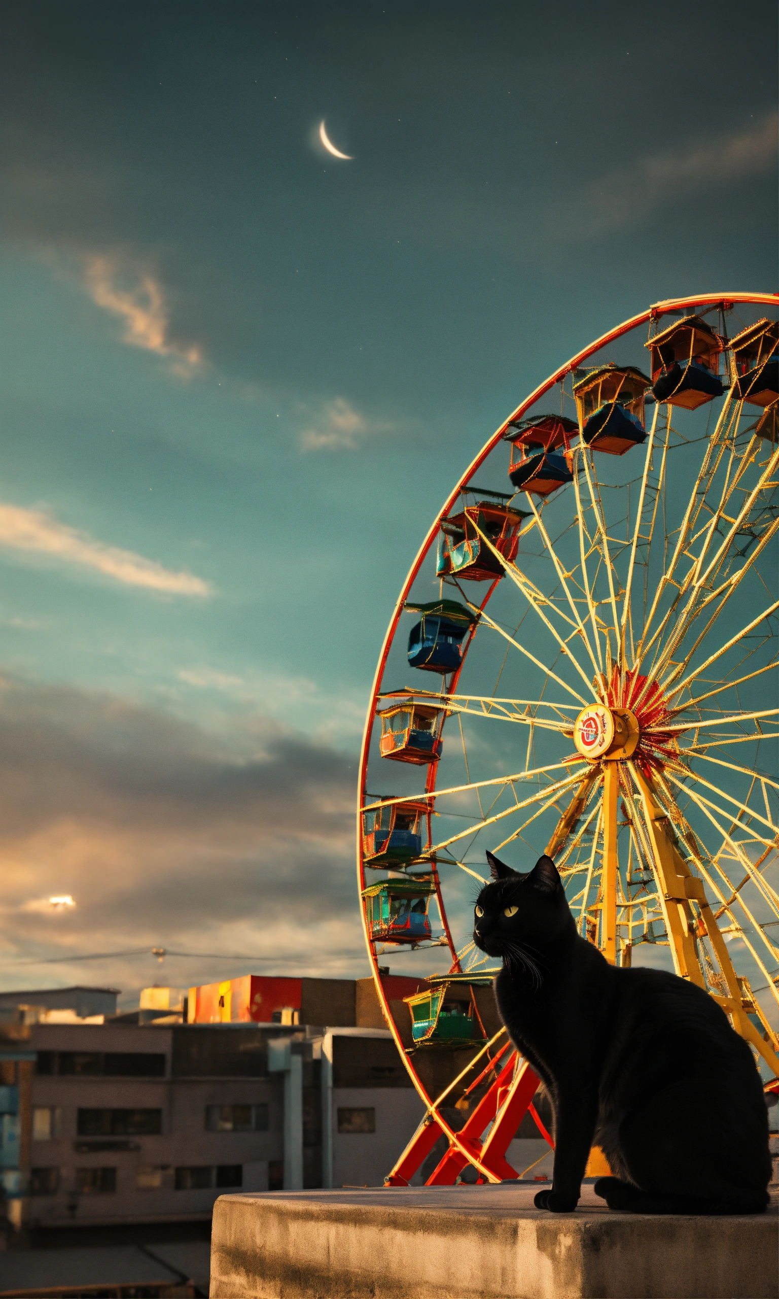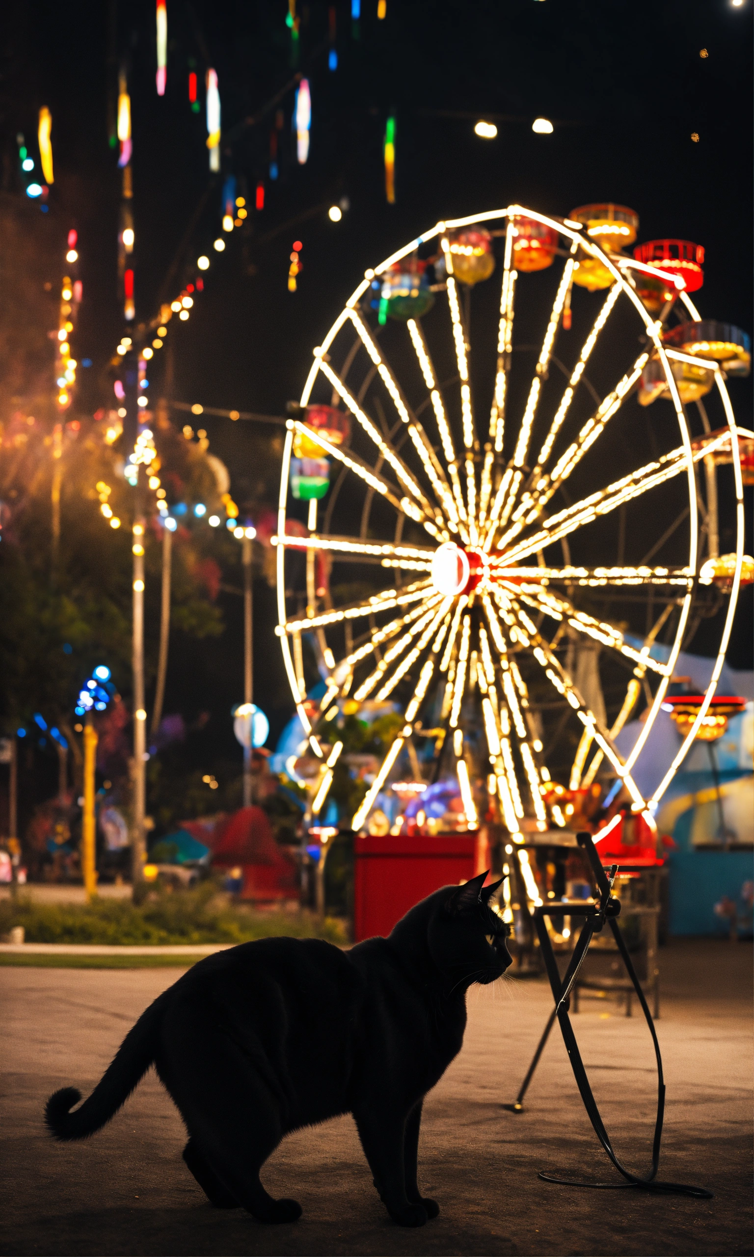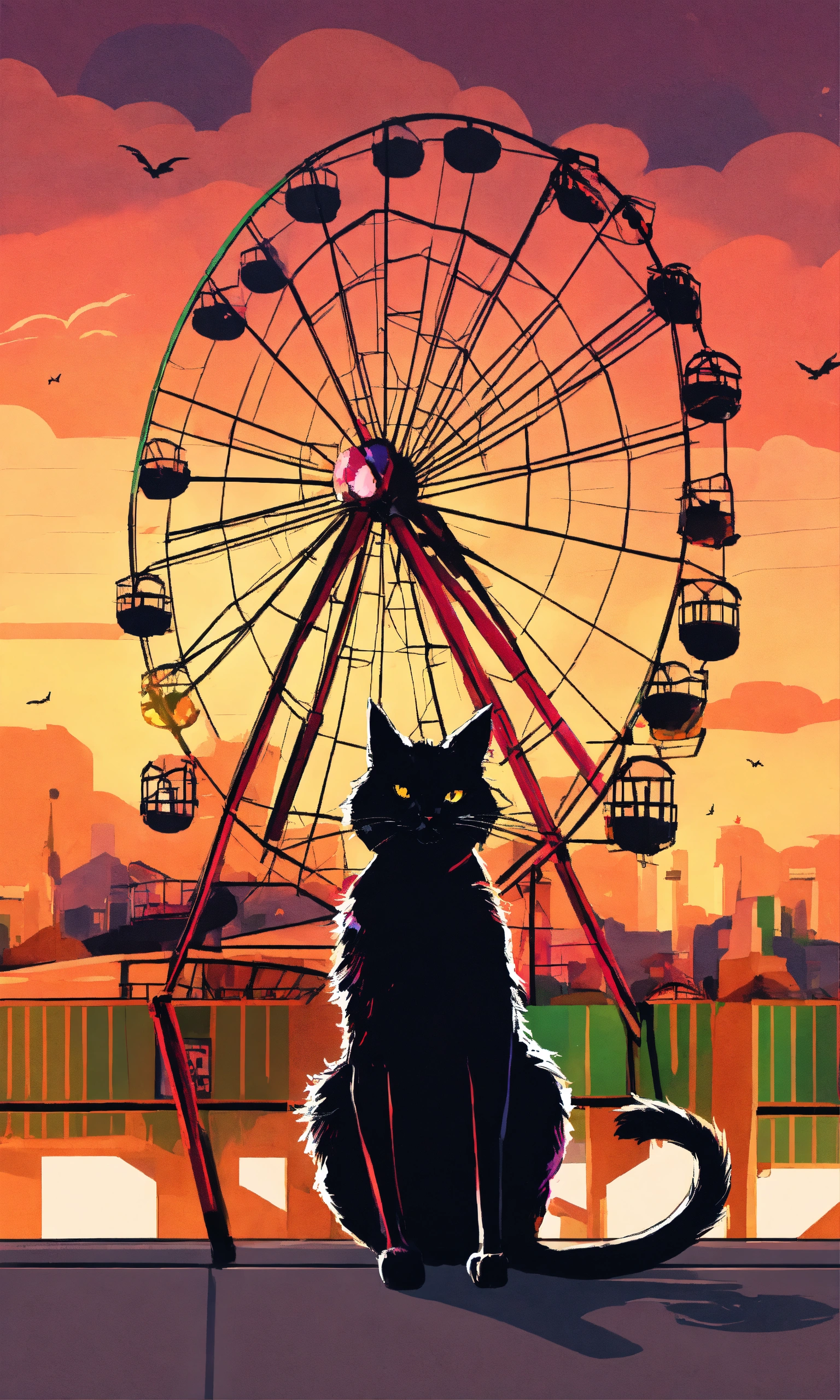 A black cat and a ferris wheel