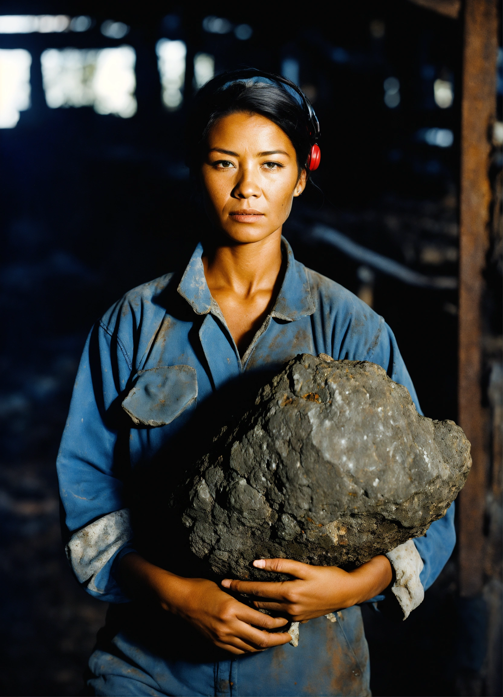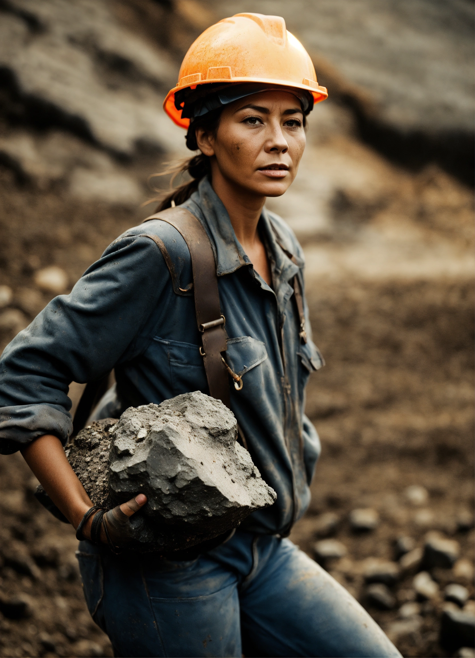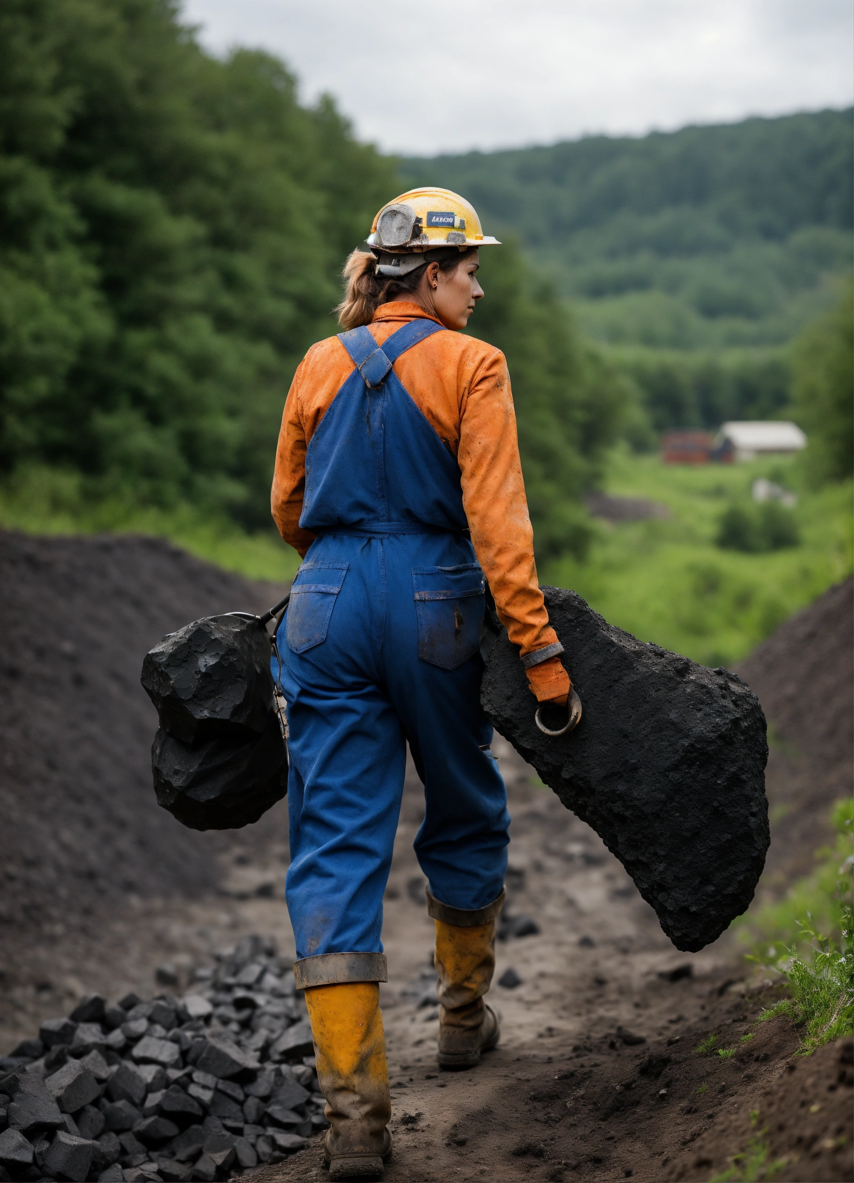 Female coal miner carrying rock
