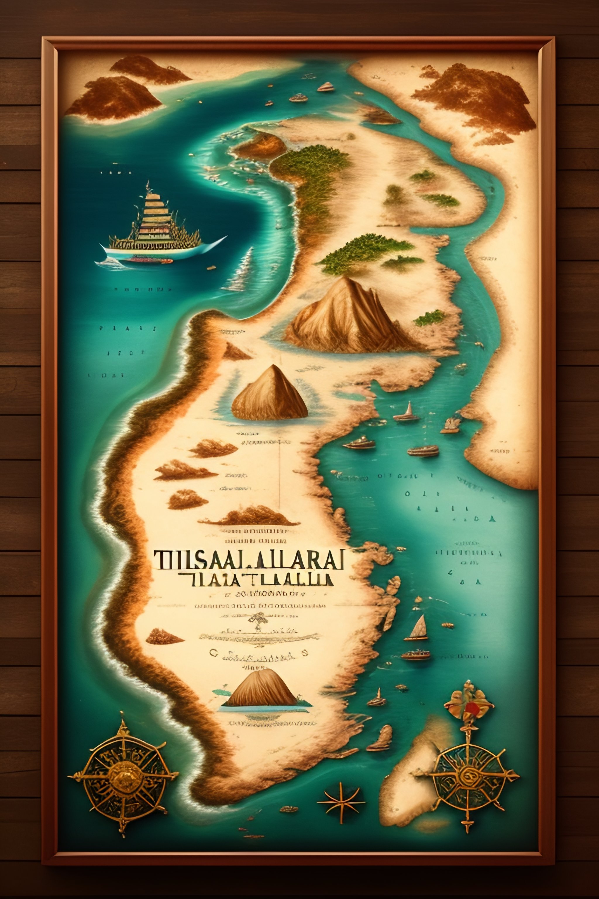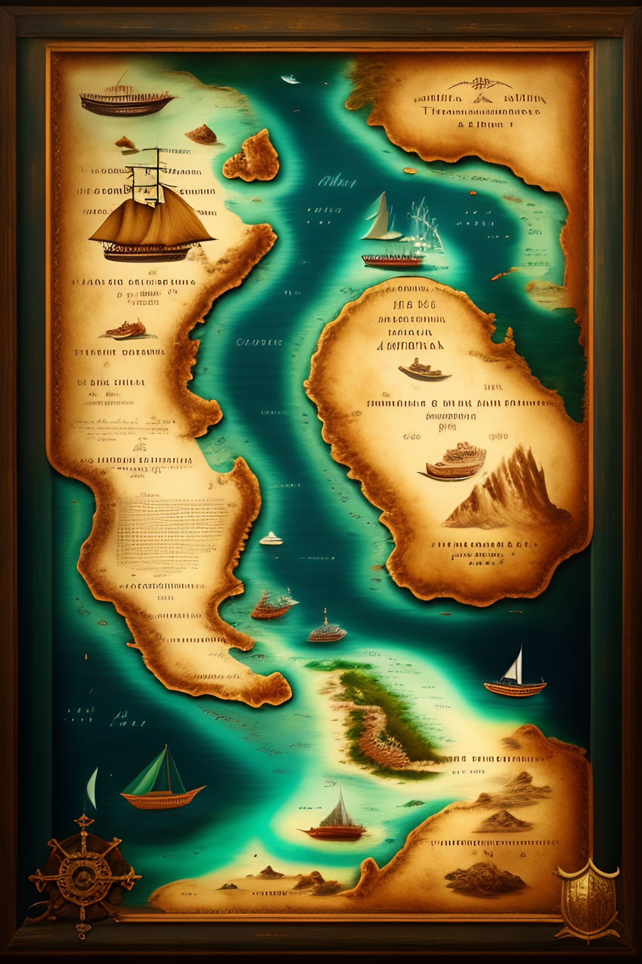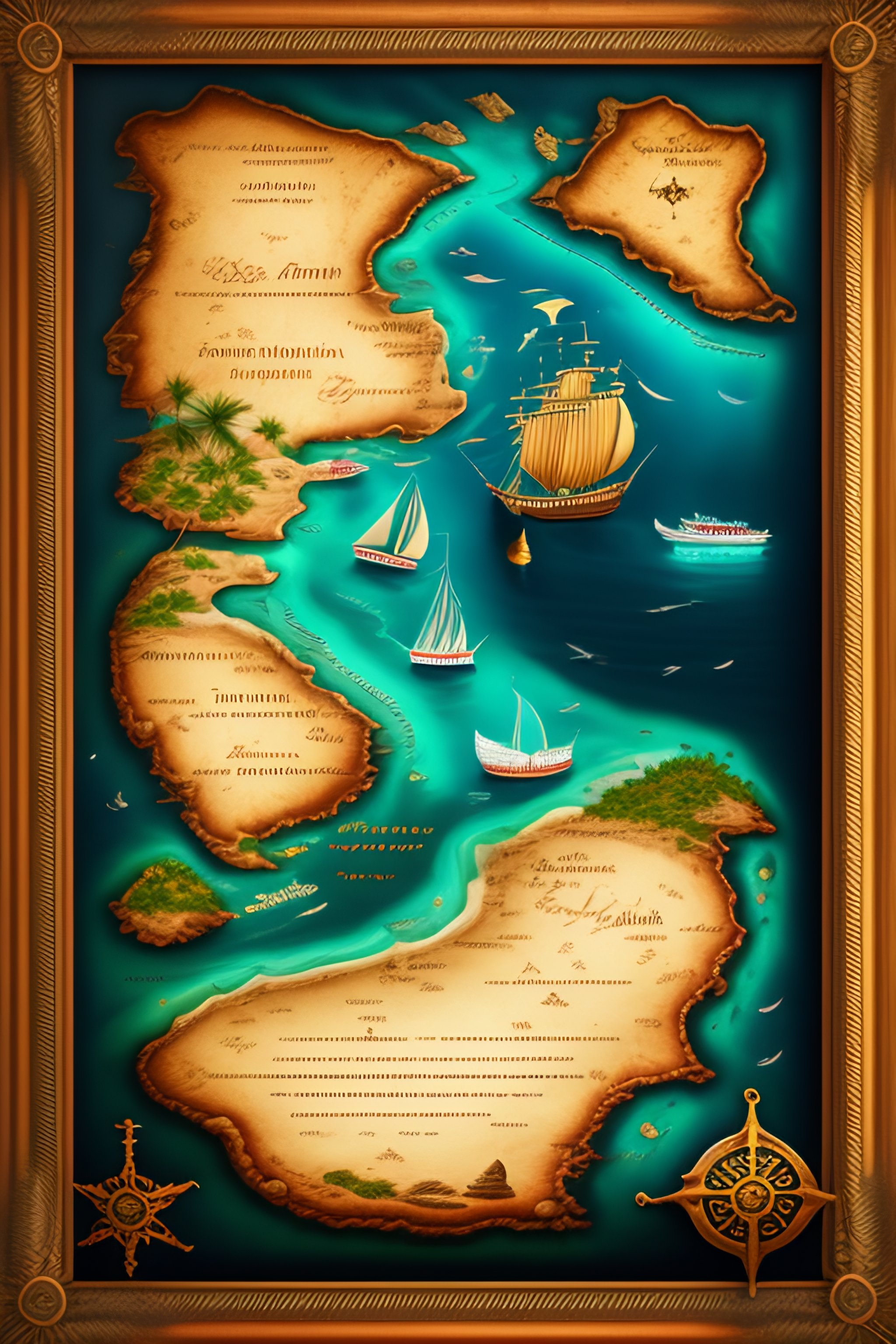Old torn treasure map showing the treasure of "isla la tortuga" in the caribbean, pirates treasure map, high detail, high res, hyperrealistic