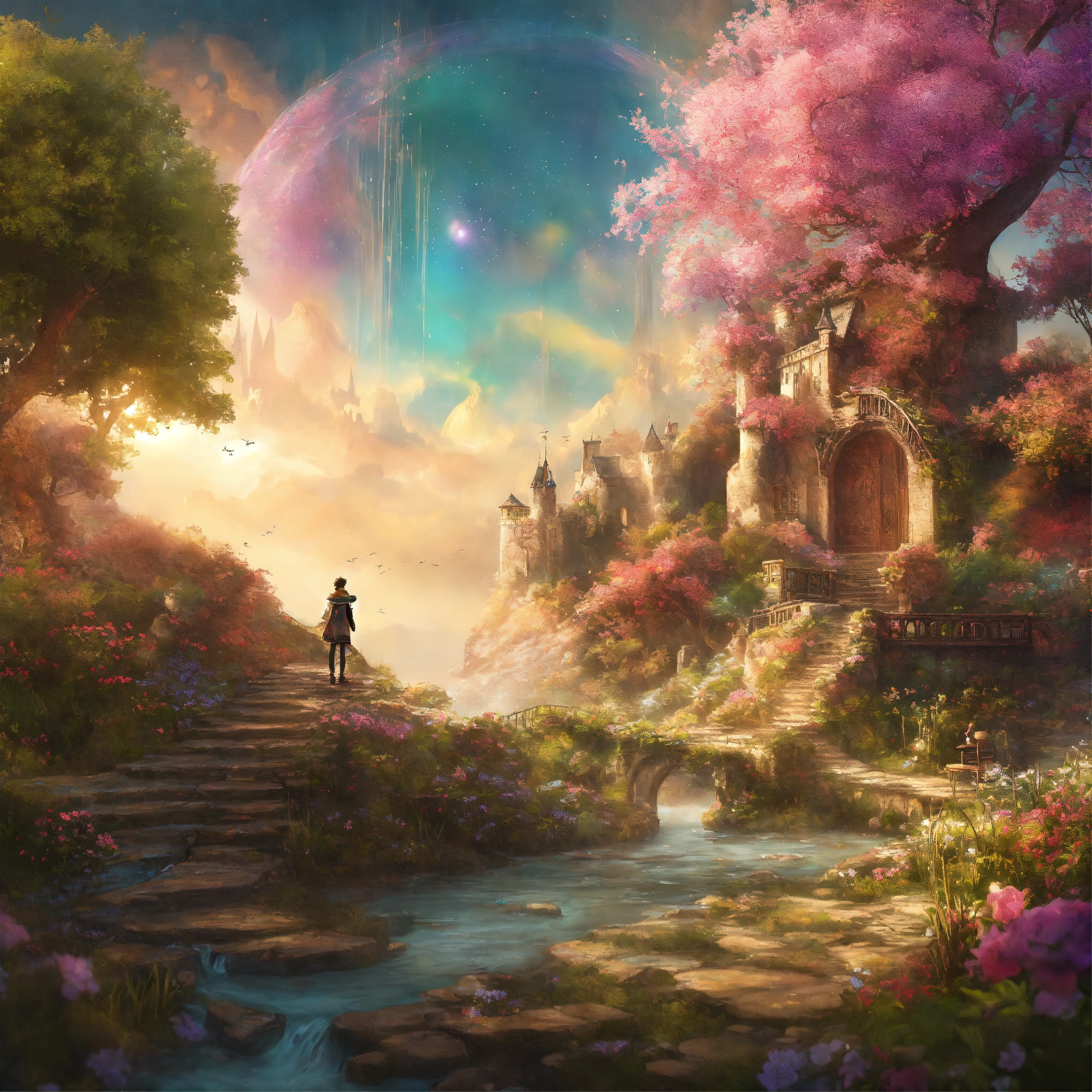 Shabby chic dreamy mist pastel junk journals imagine a world where stories come to life and every book is a portal to a fantastical adventure. in this universe, a young hero embarks on a quest to save the realm from an encroaching darkness. write a tale in which as the hero progresses through the story, they learn that the only way to save the realm is to uncover the story's true ending, a conclusion that has eluded countless adventurers before them. swirling magical fairytale abstract art style