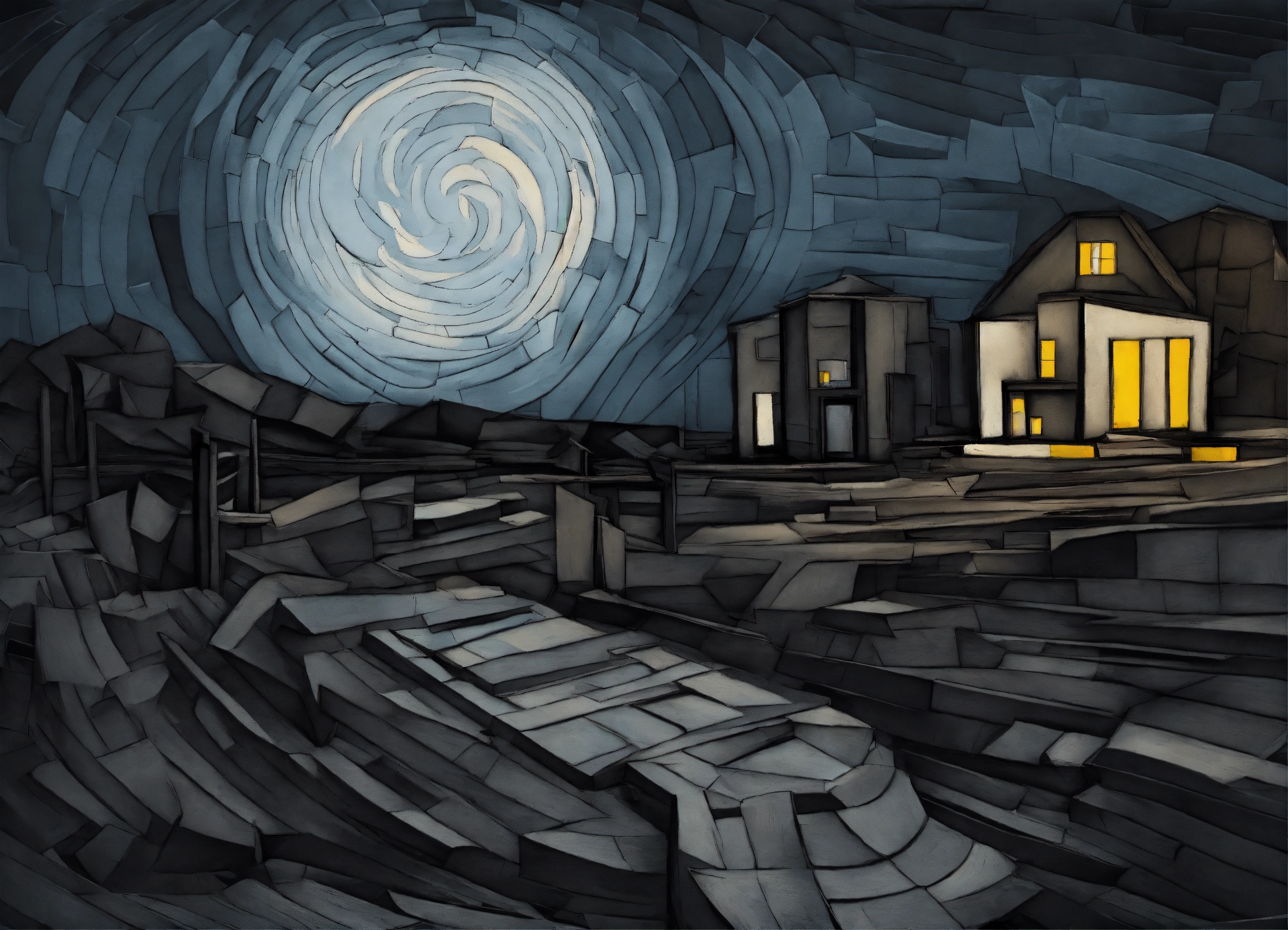 Abstract art abstraction abstract sketchup moonlight vincent van gogh charcoal cubism
