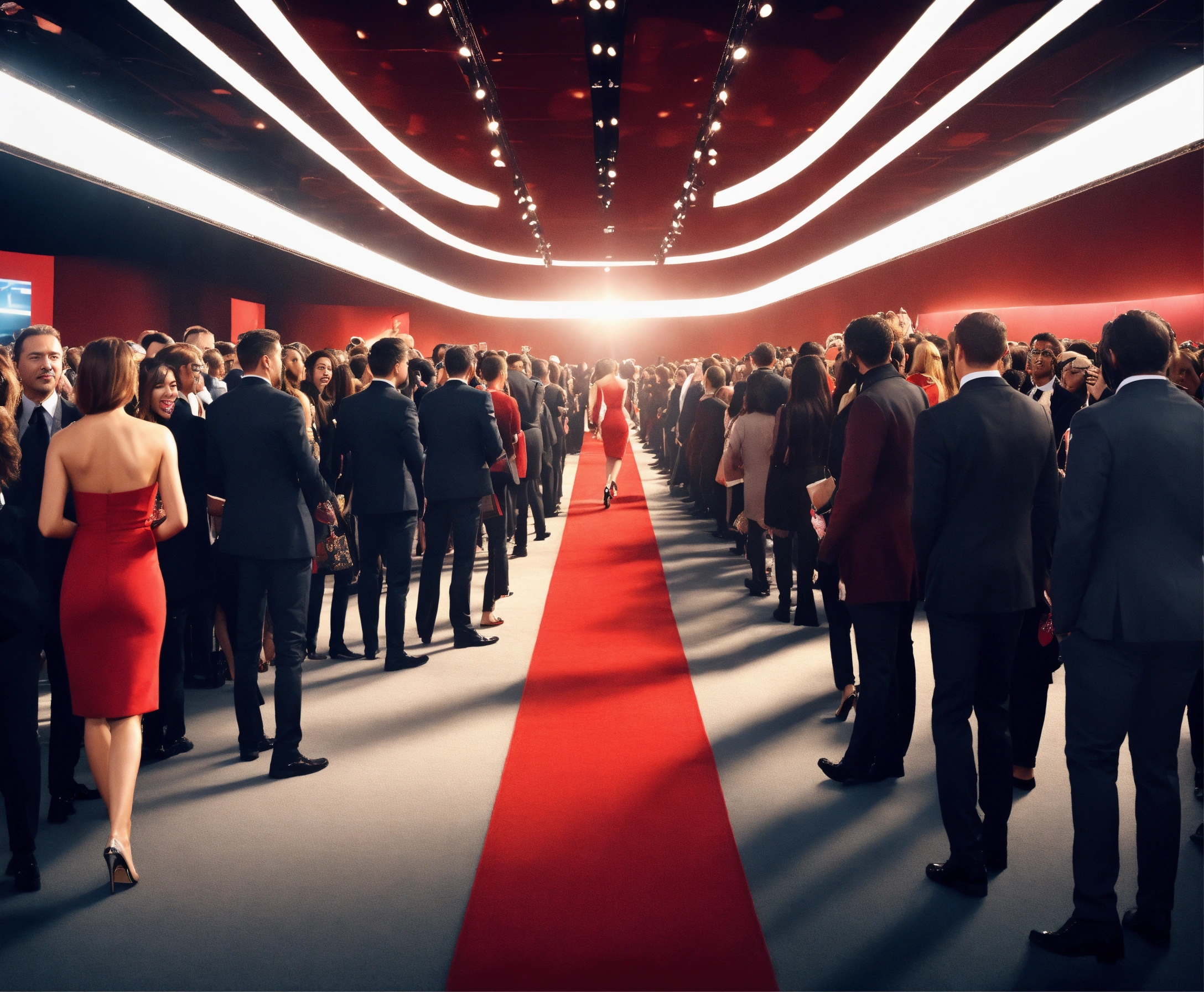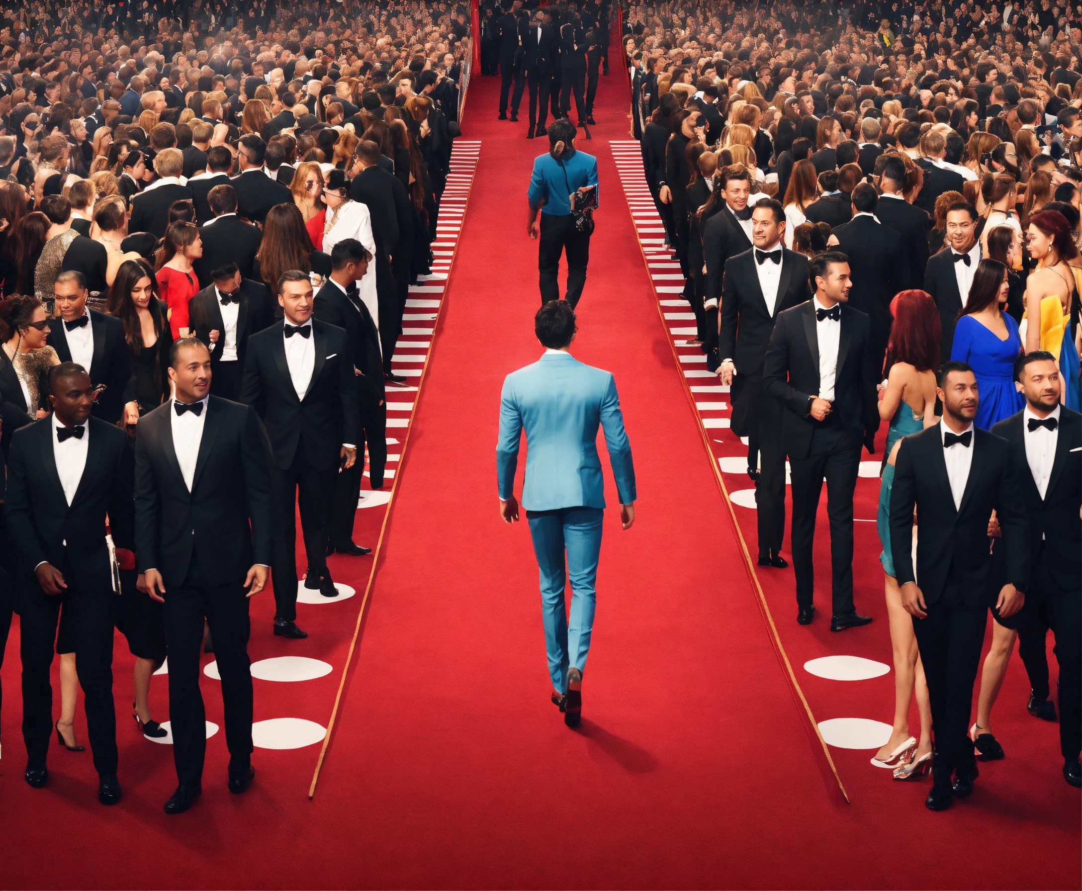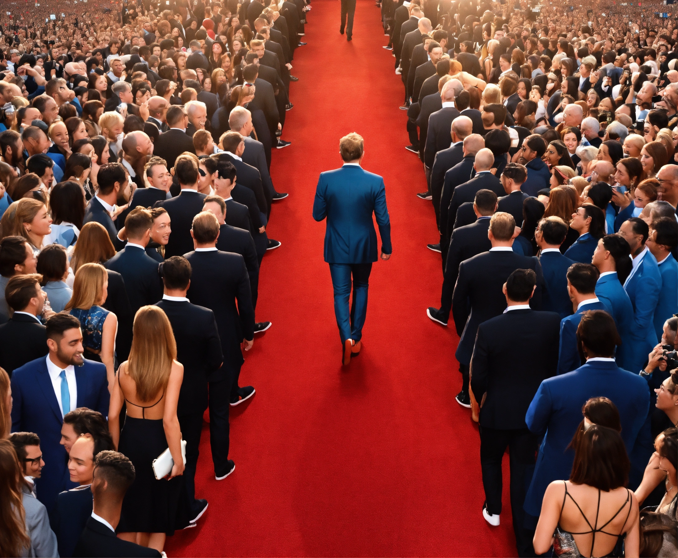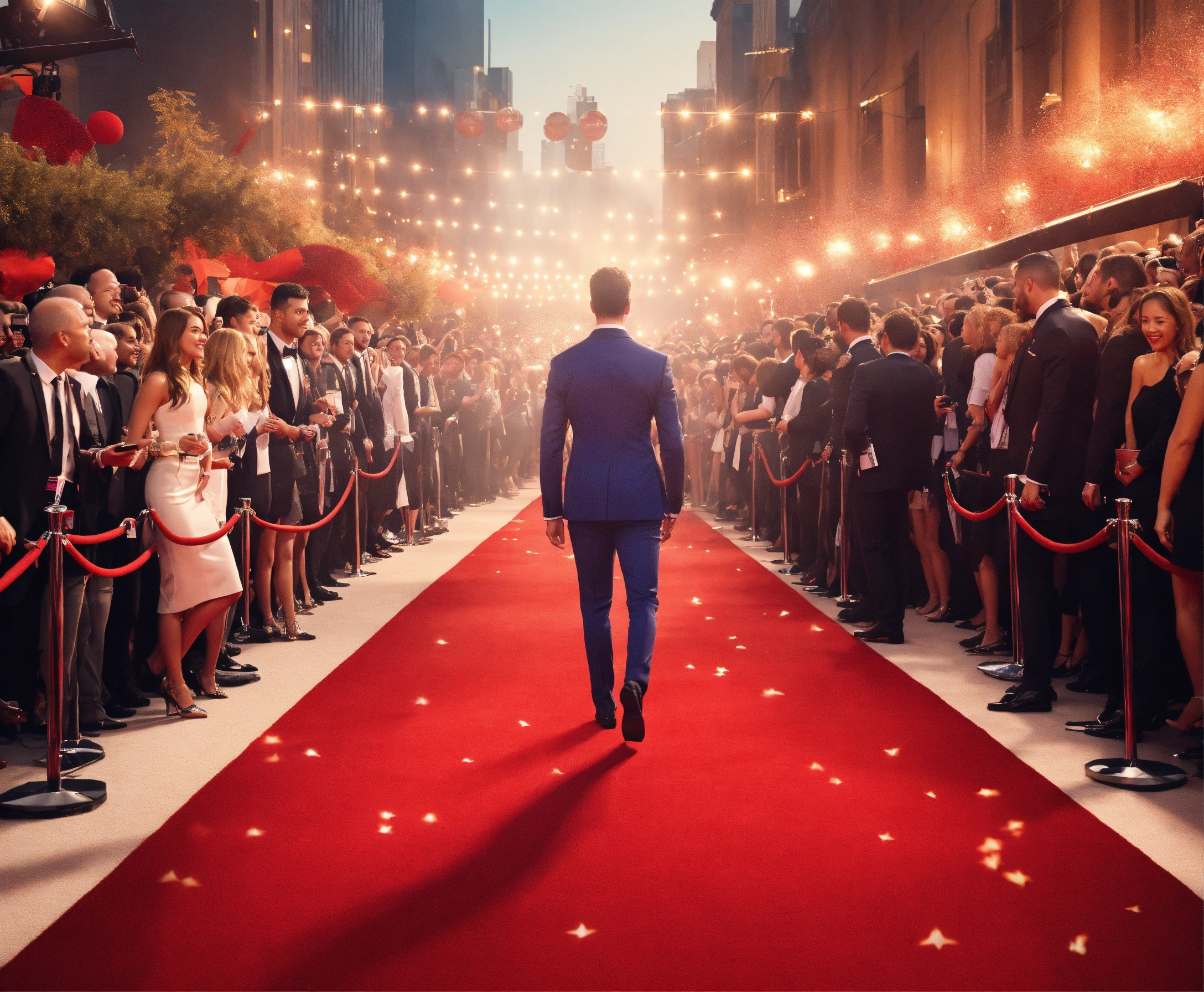Generate an image of a famous celebrity walking on a red carpet with a massive crowd of people surrounding them, all eager to catch a glimpse of the star ultra realistic 4k