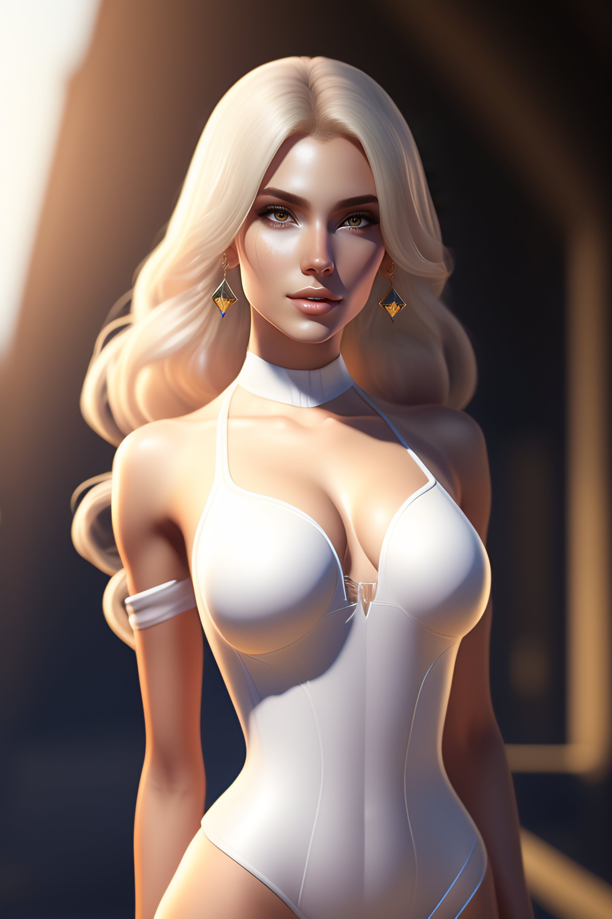 The perfect white skin woman, having 90-60-90 dimensions, showing the full body, 8k resolution, hyper-realistic anime style