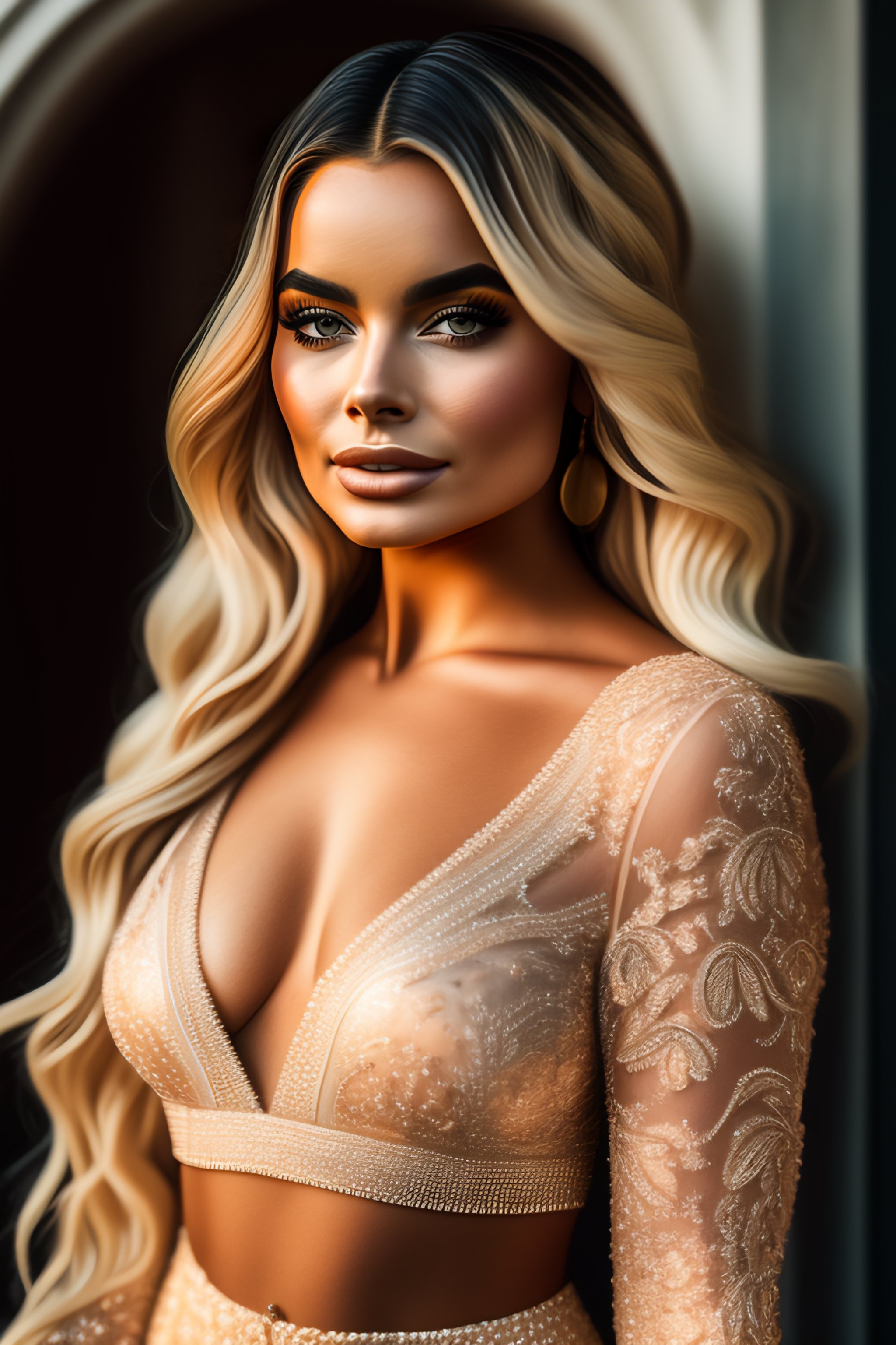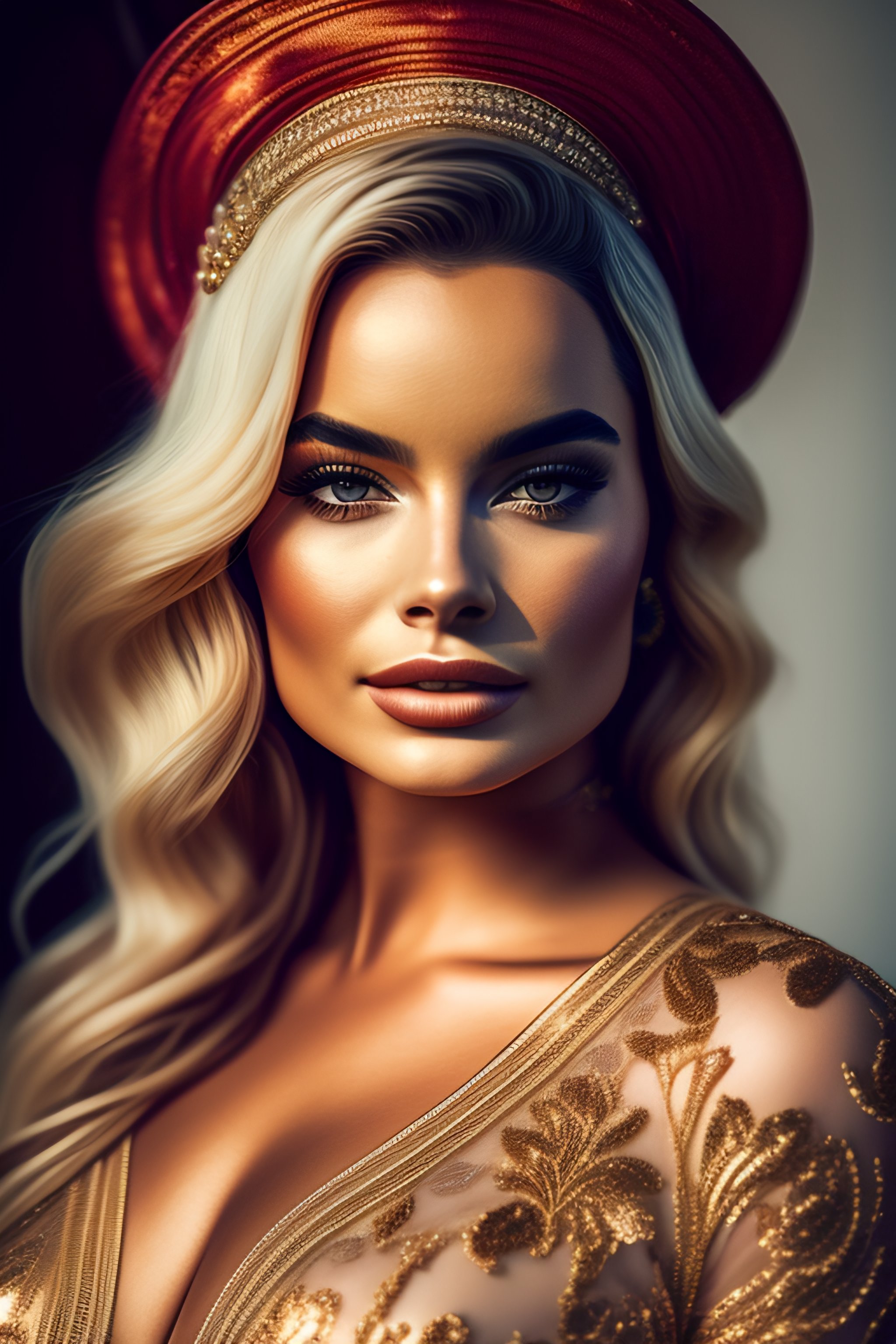 Portrait of margot robbie combined with demi rose wearing kebaya, by charlotte grimm, natural light, detailed face, canon eos c 3 0 0, ƒ 1. 8, 3 5 mm, 8 k, medium - format print