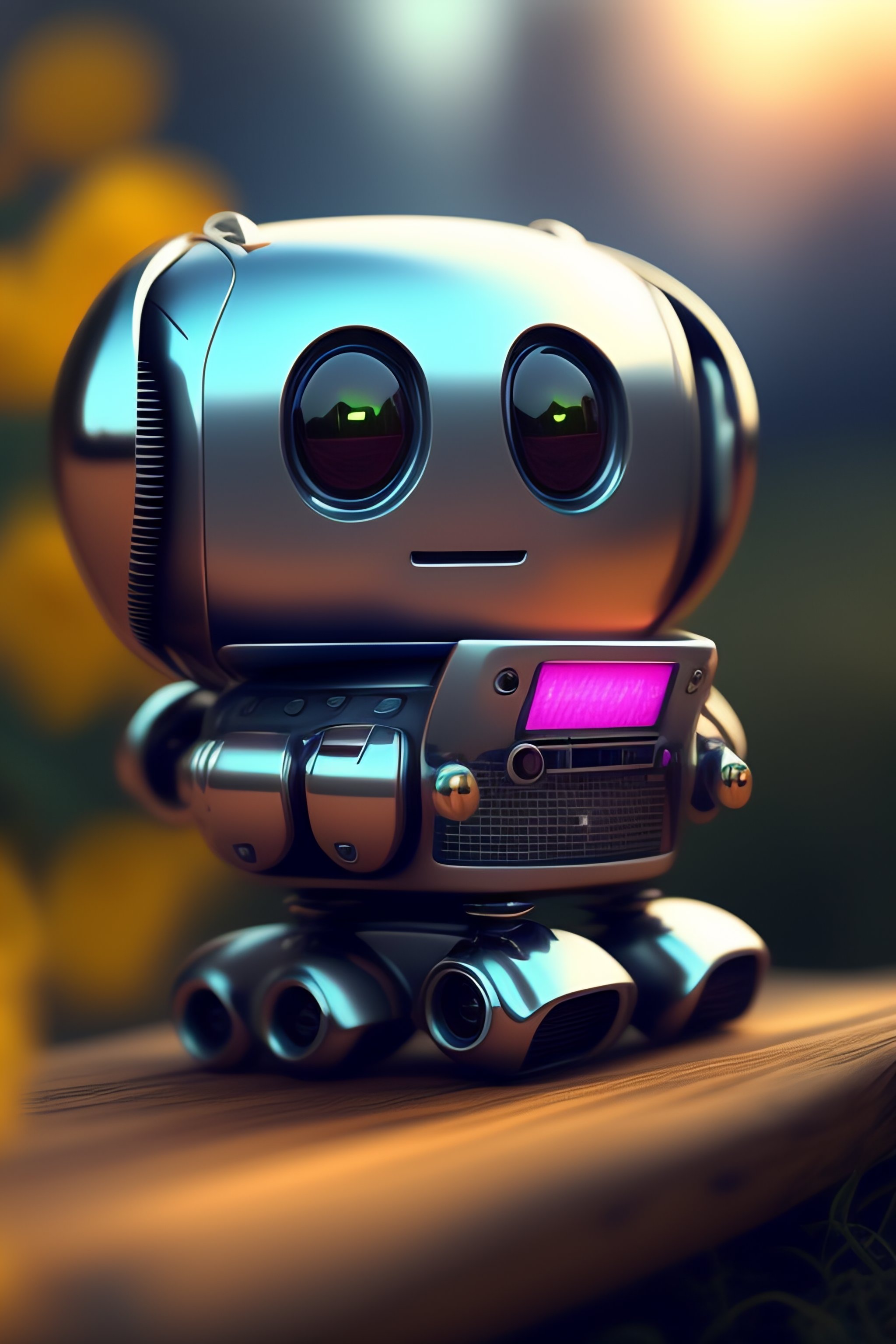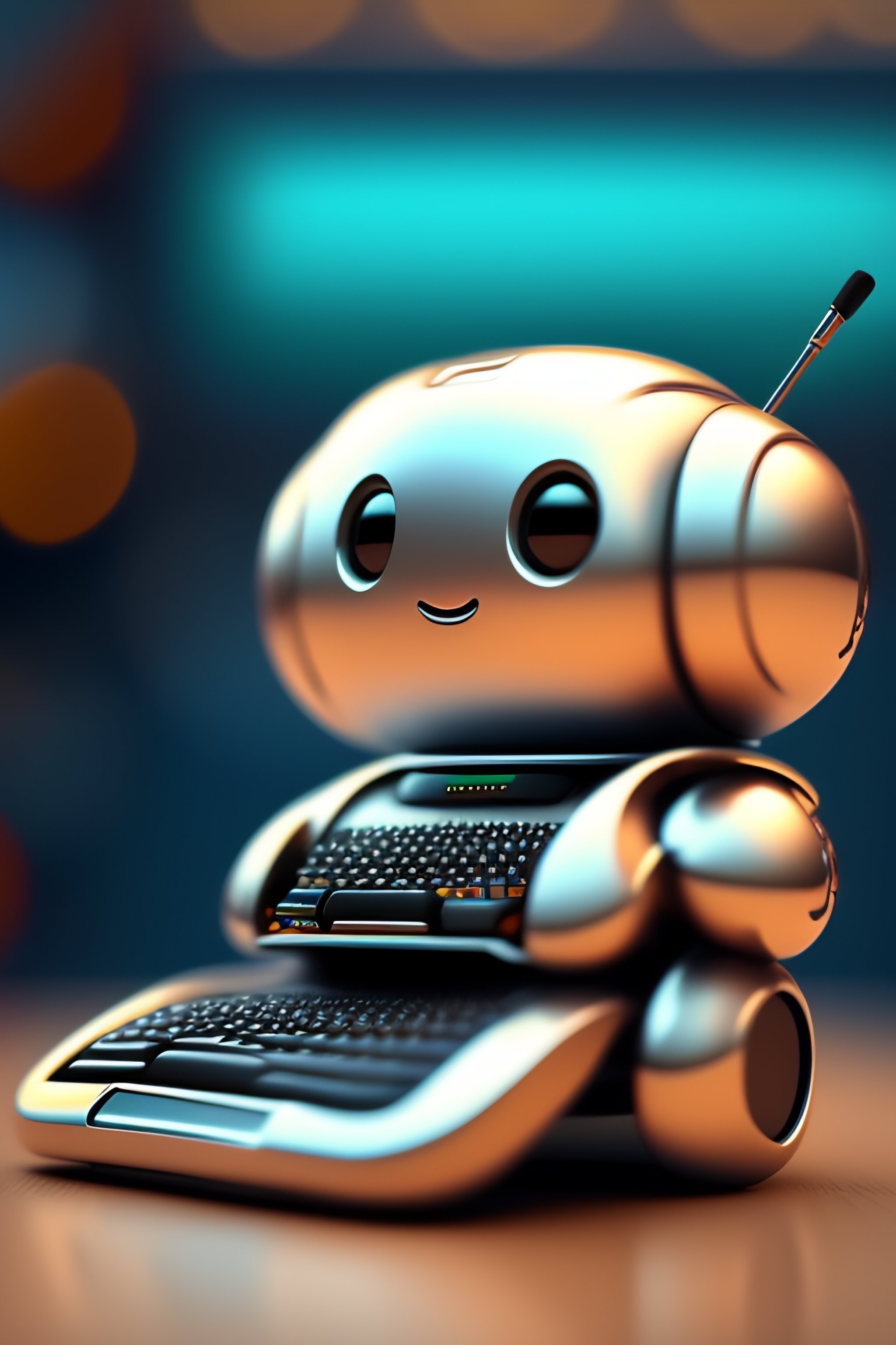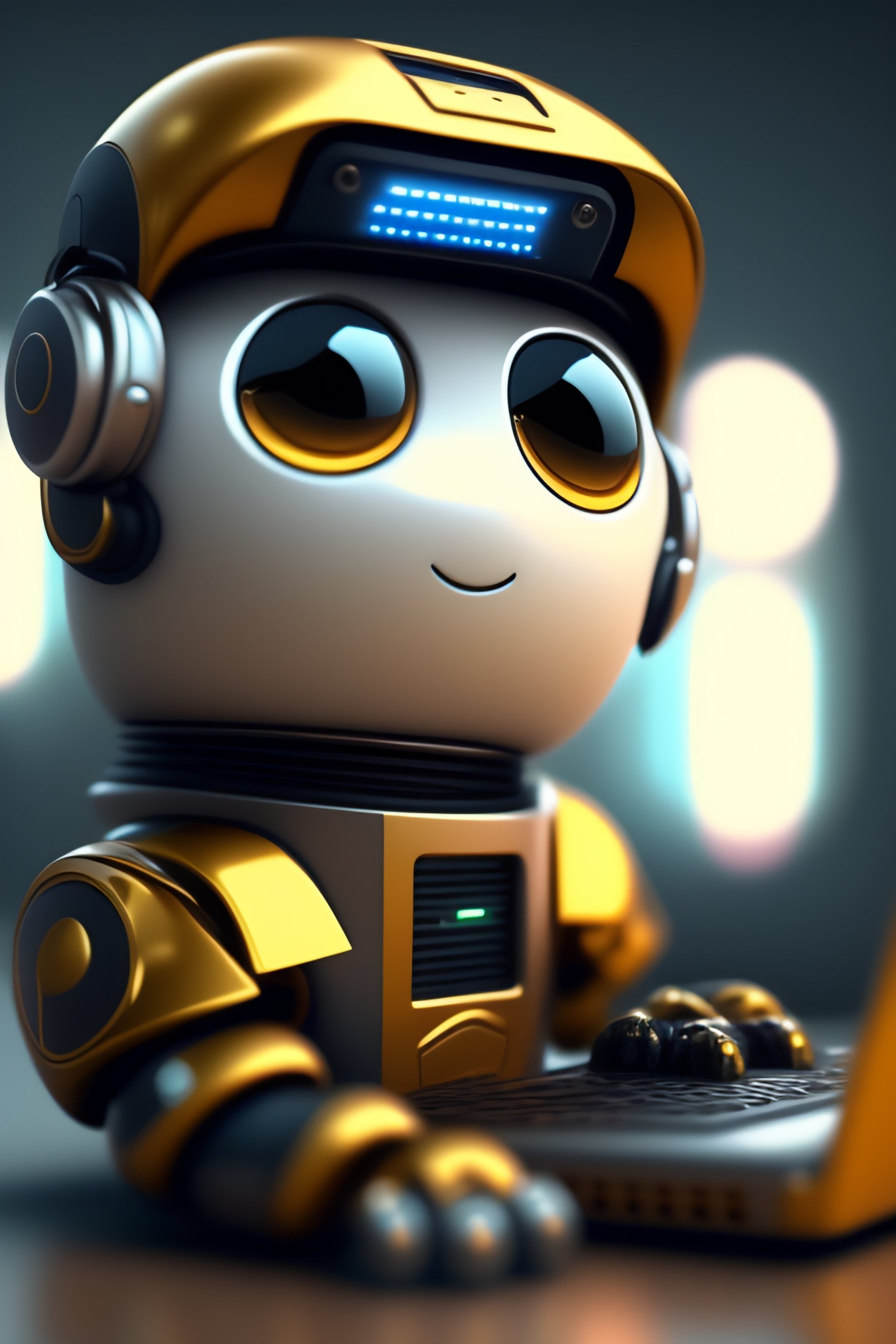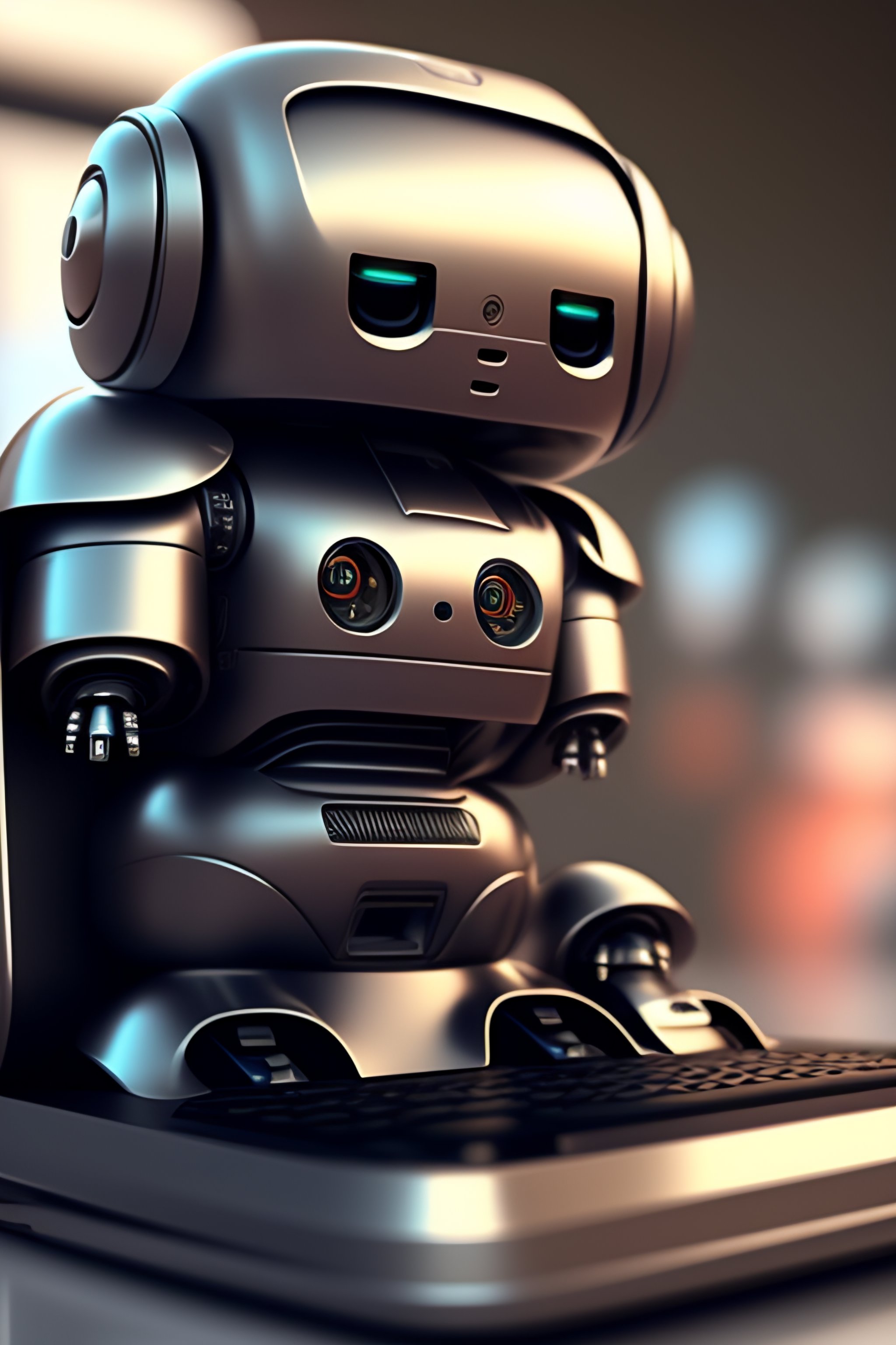 Cute robot typing in computer realistc