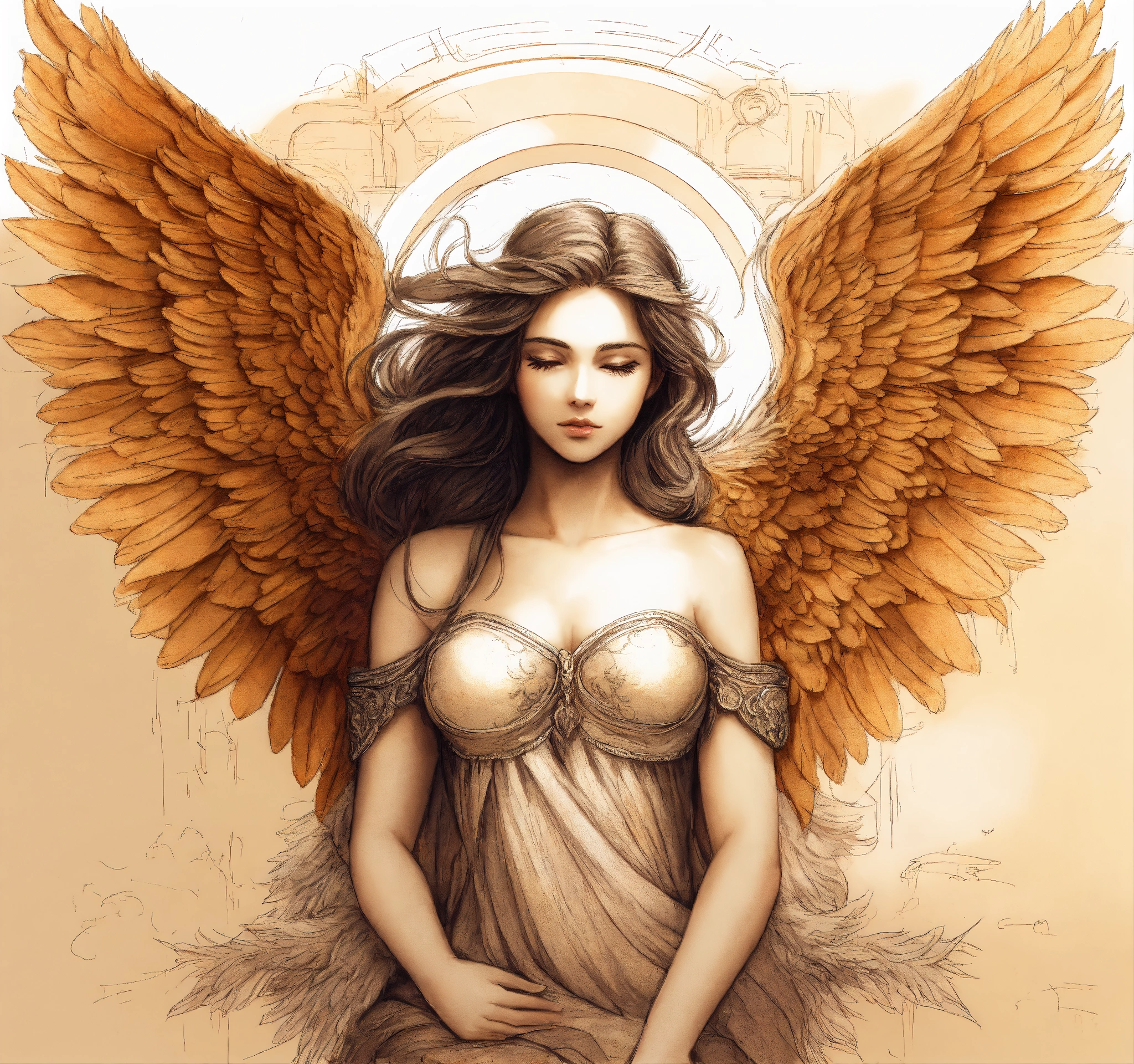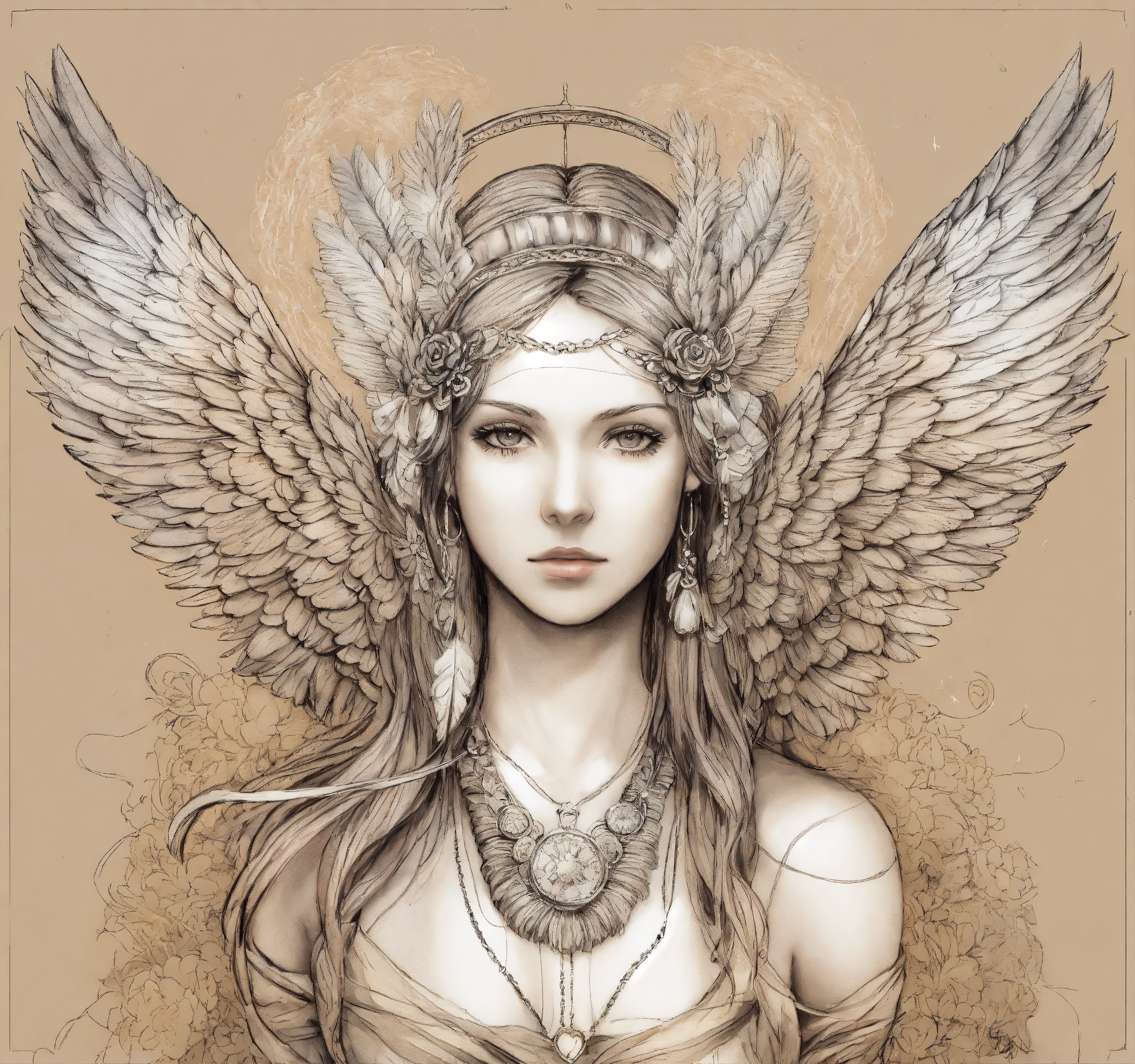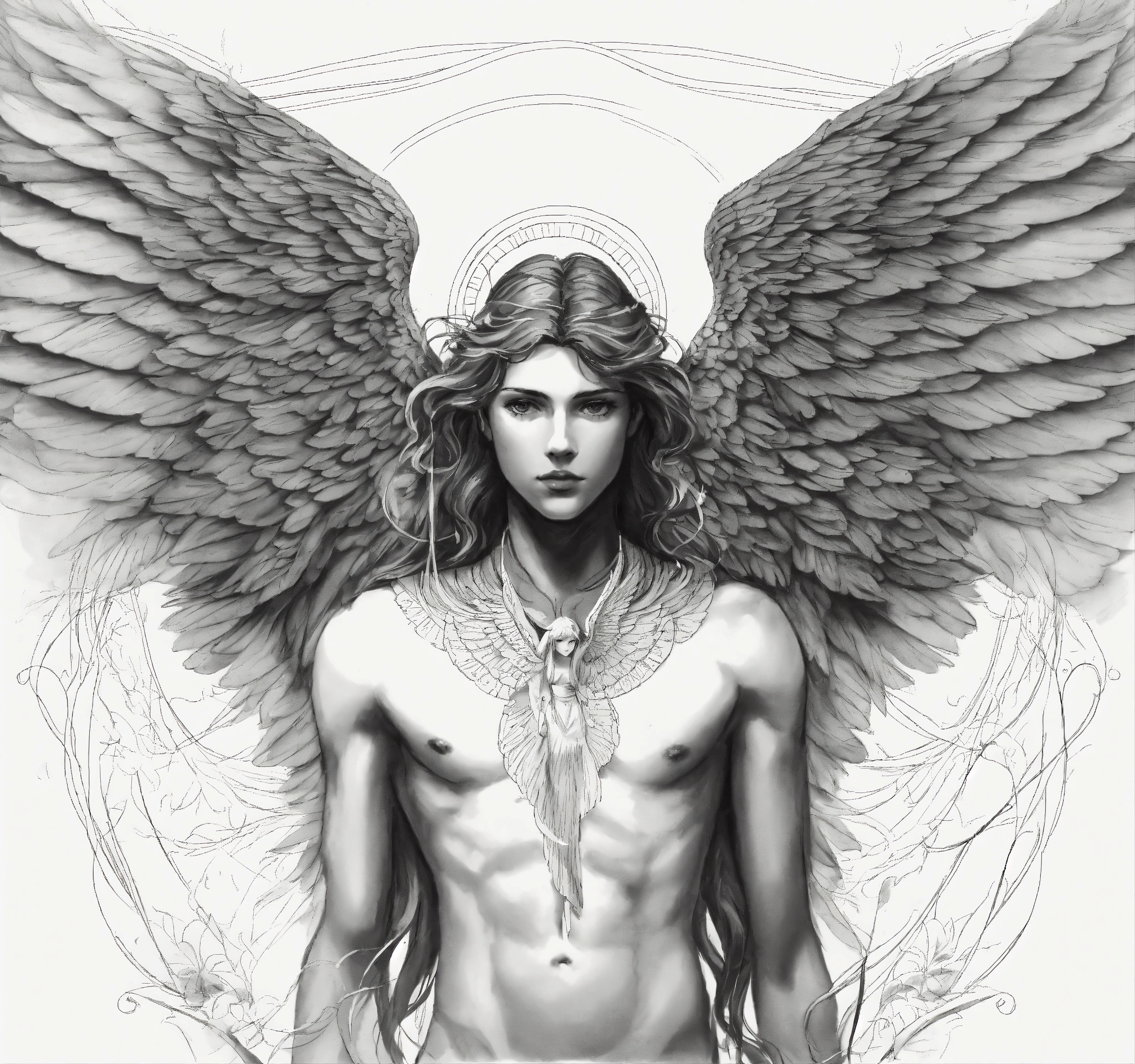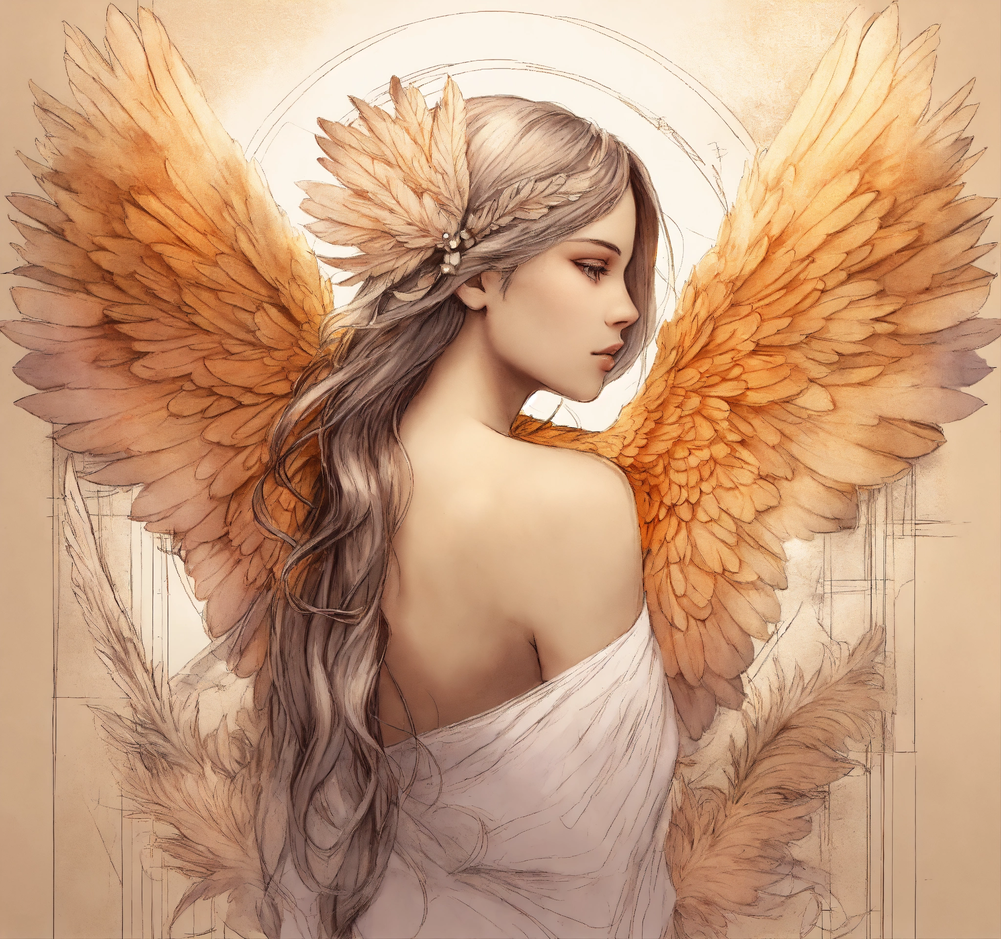 Dibujo en sketch de angel psicodelico con alas y plumas