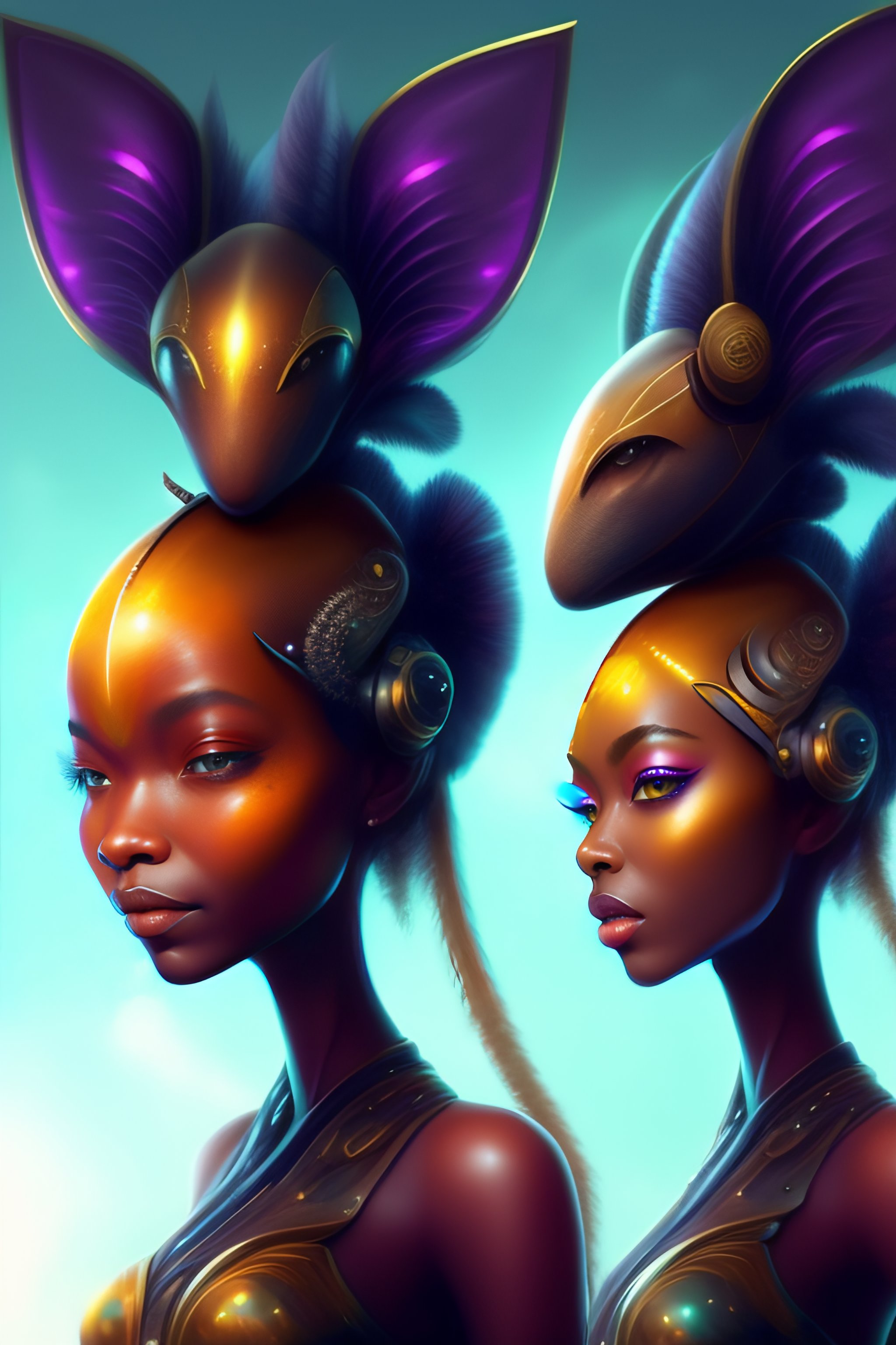 Detailed concept art of an alien pair, with antennas in the head and a special sensory on the forehead.