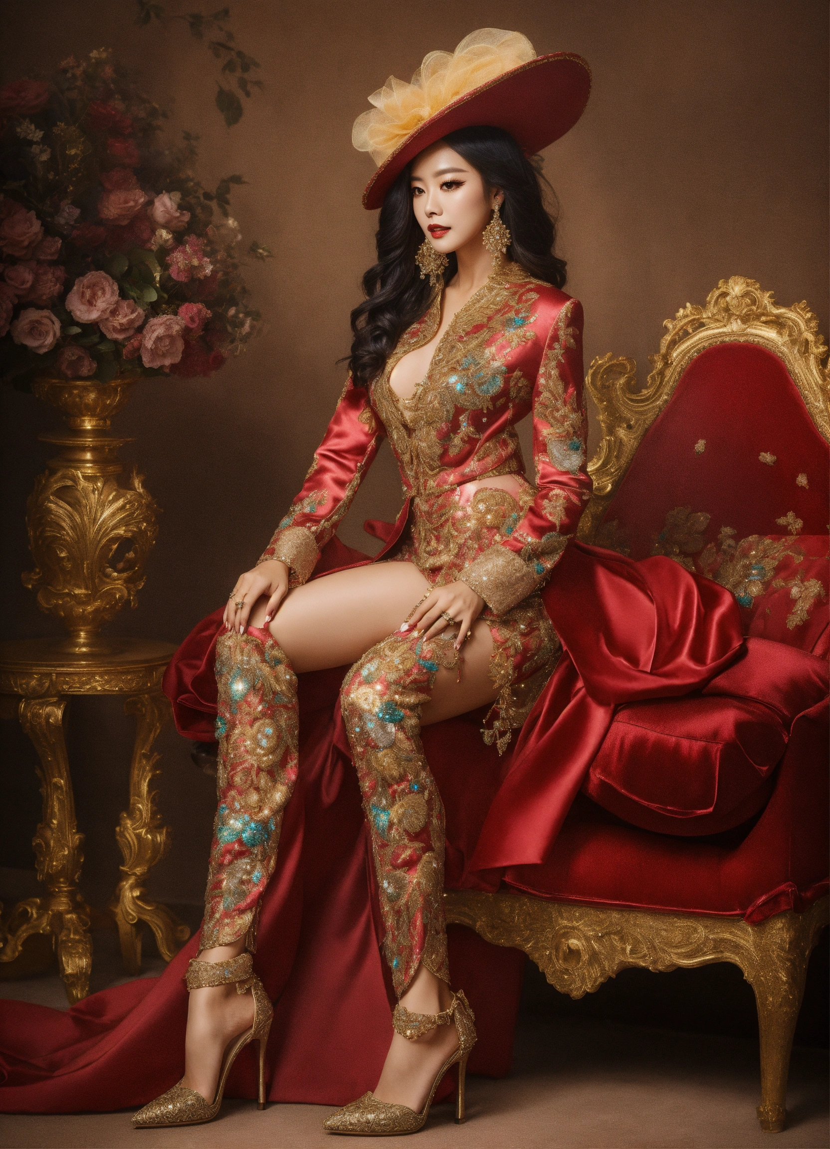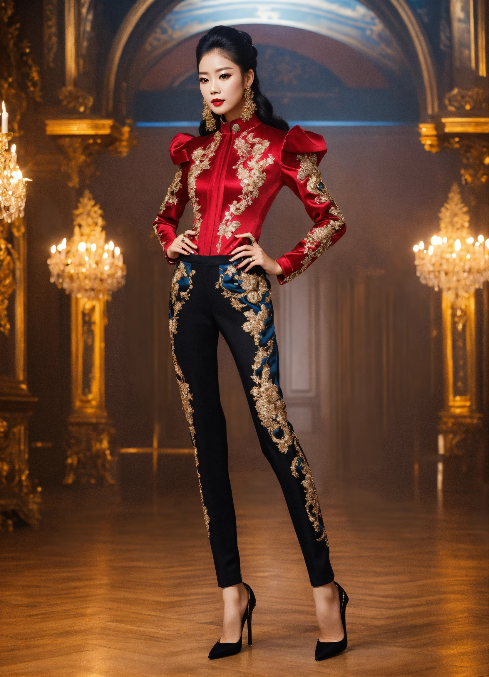 Jiu sparkly fashionable baroque outfit with pants and high heels