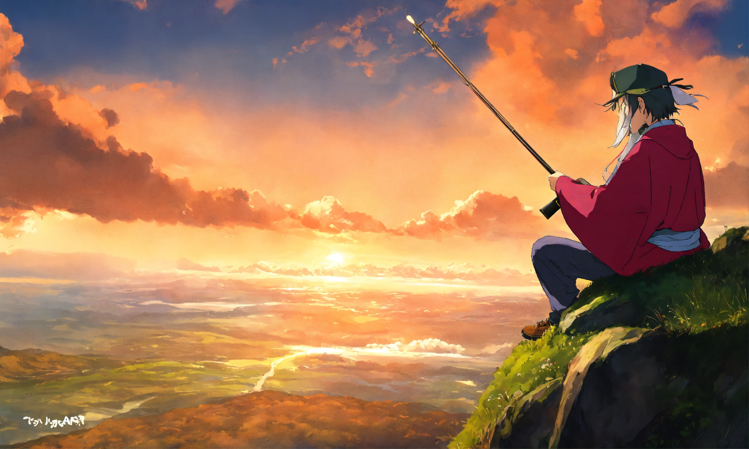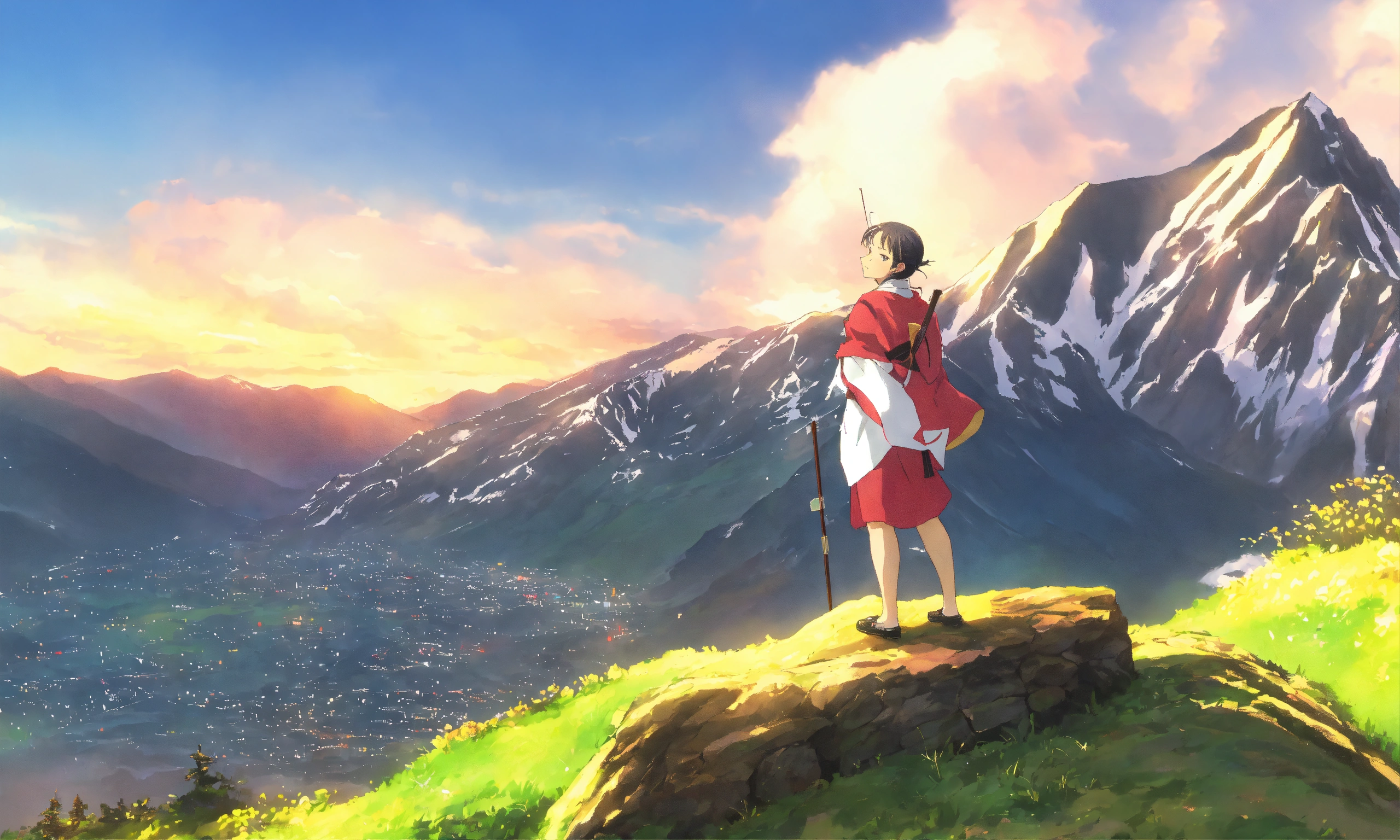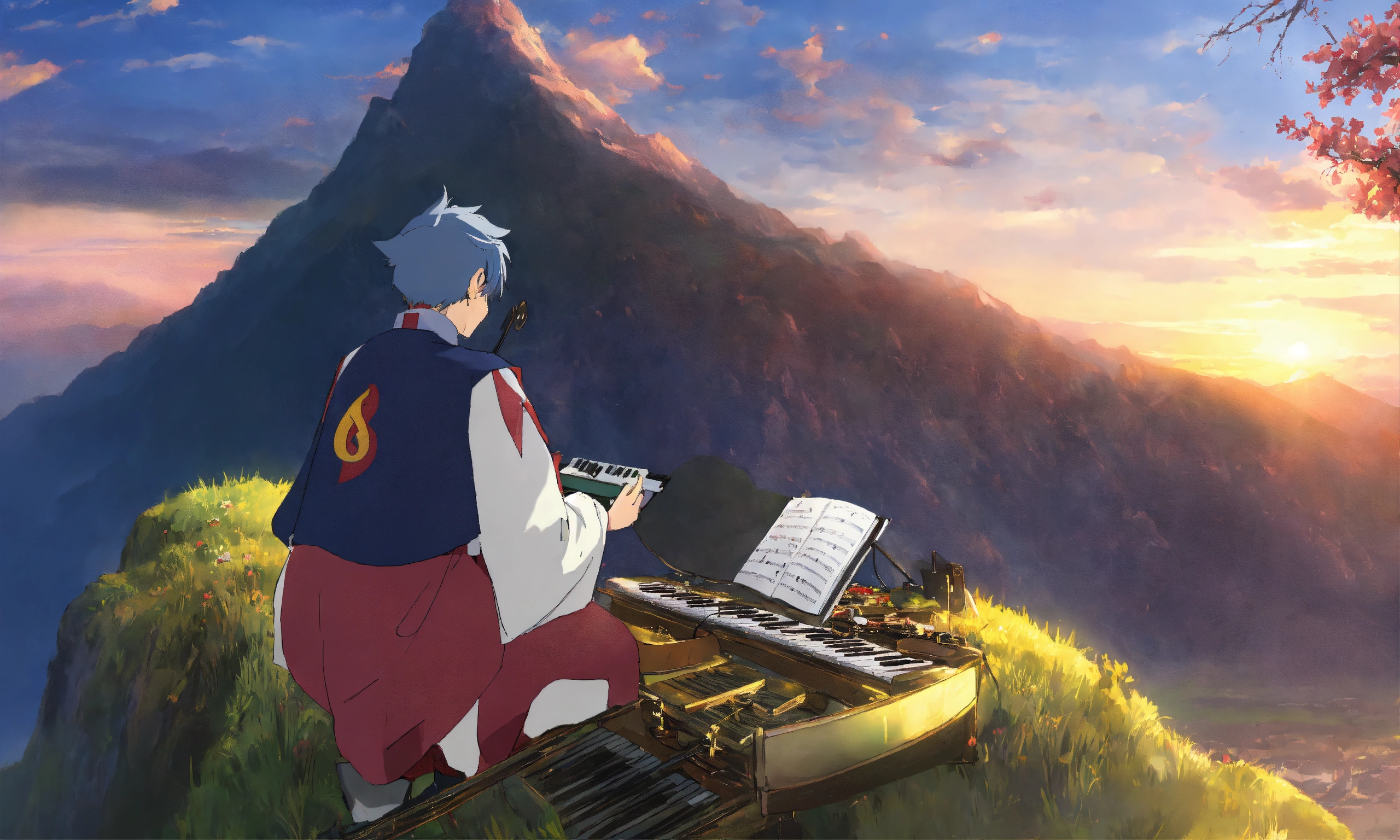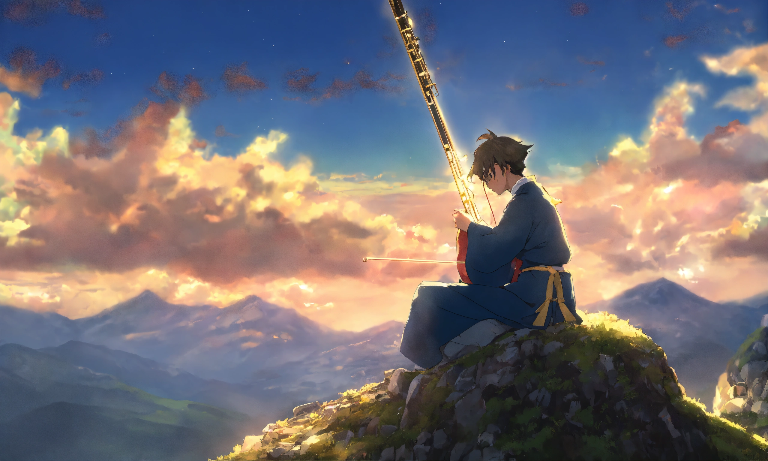 gawr gura composing a symphony on a mountain.