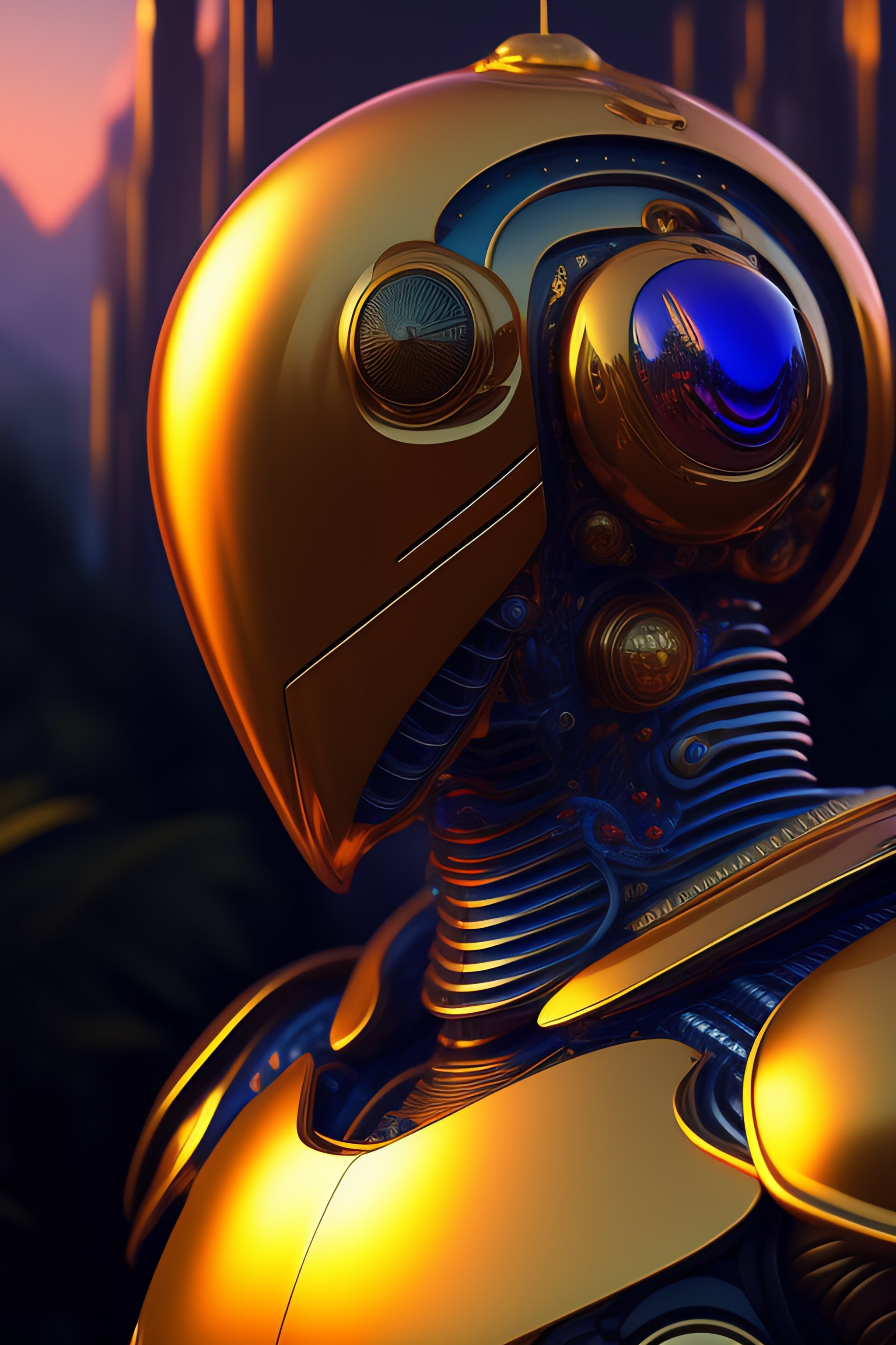 Cinematic bust portrait of psychedelic robot from left, head and chest only, exotic alien features, robotic enhancements, desaturated, tim hildebrandt, wayne barlowe, bruce pennington, donato giancola, larry elmore, oil on canvas, masterpiece, trending on artstation, featured on pixiv, cinematic composition, dramatic pose, beautiful lighting, sharp, details, hyper - detailed, hd, hdr, 4 k, 8 k