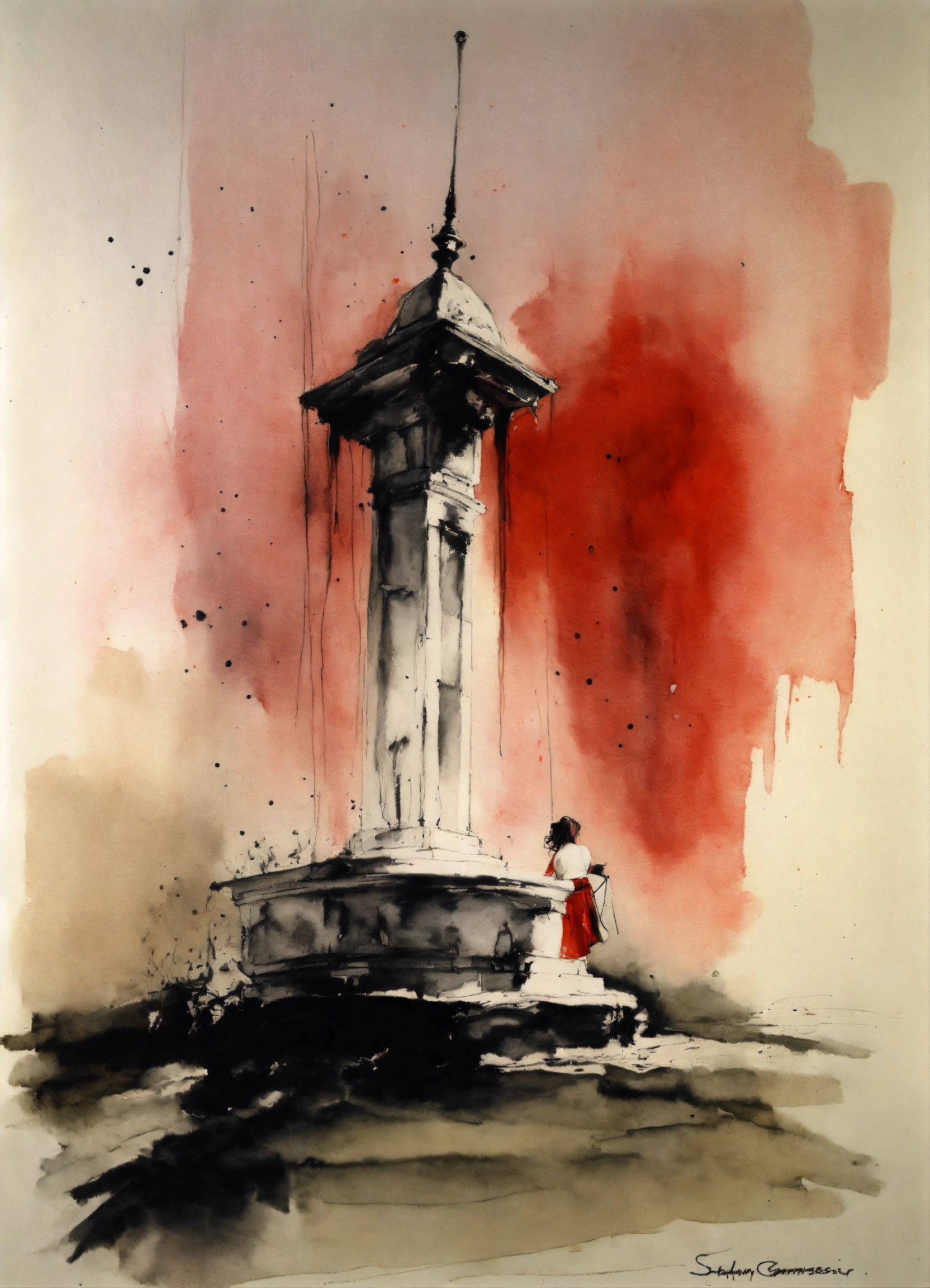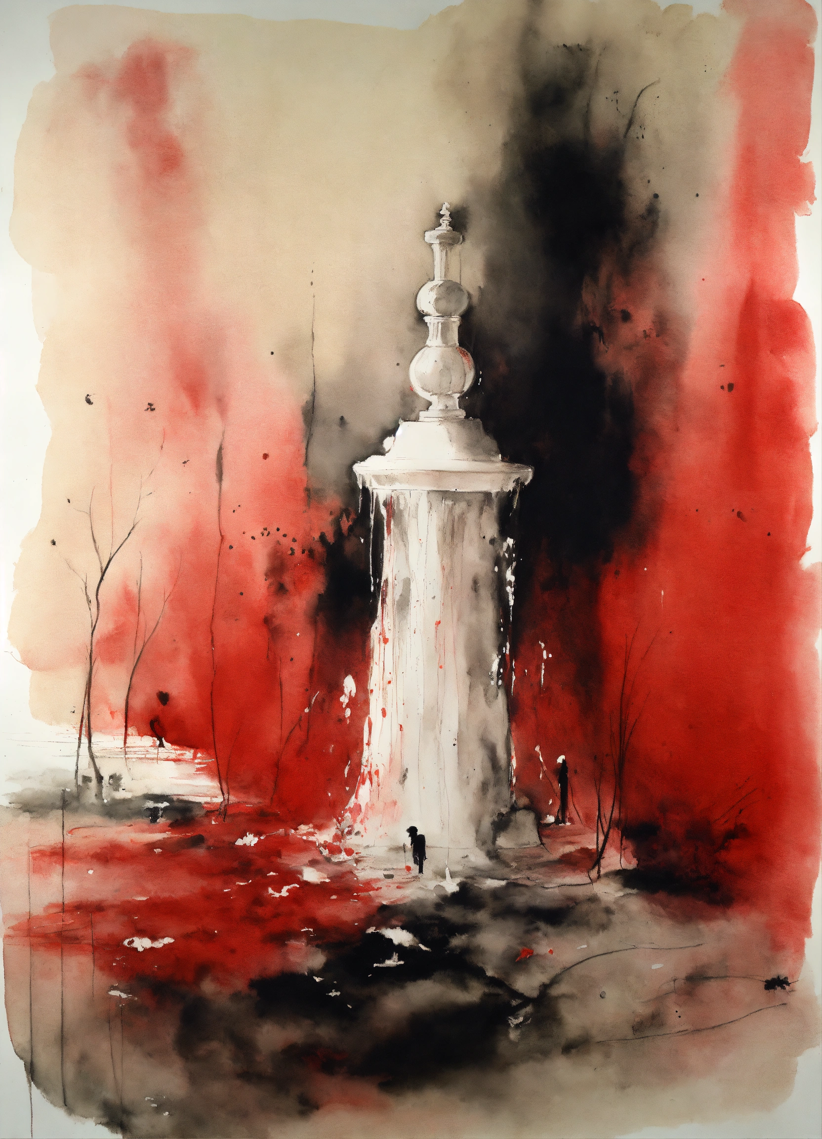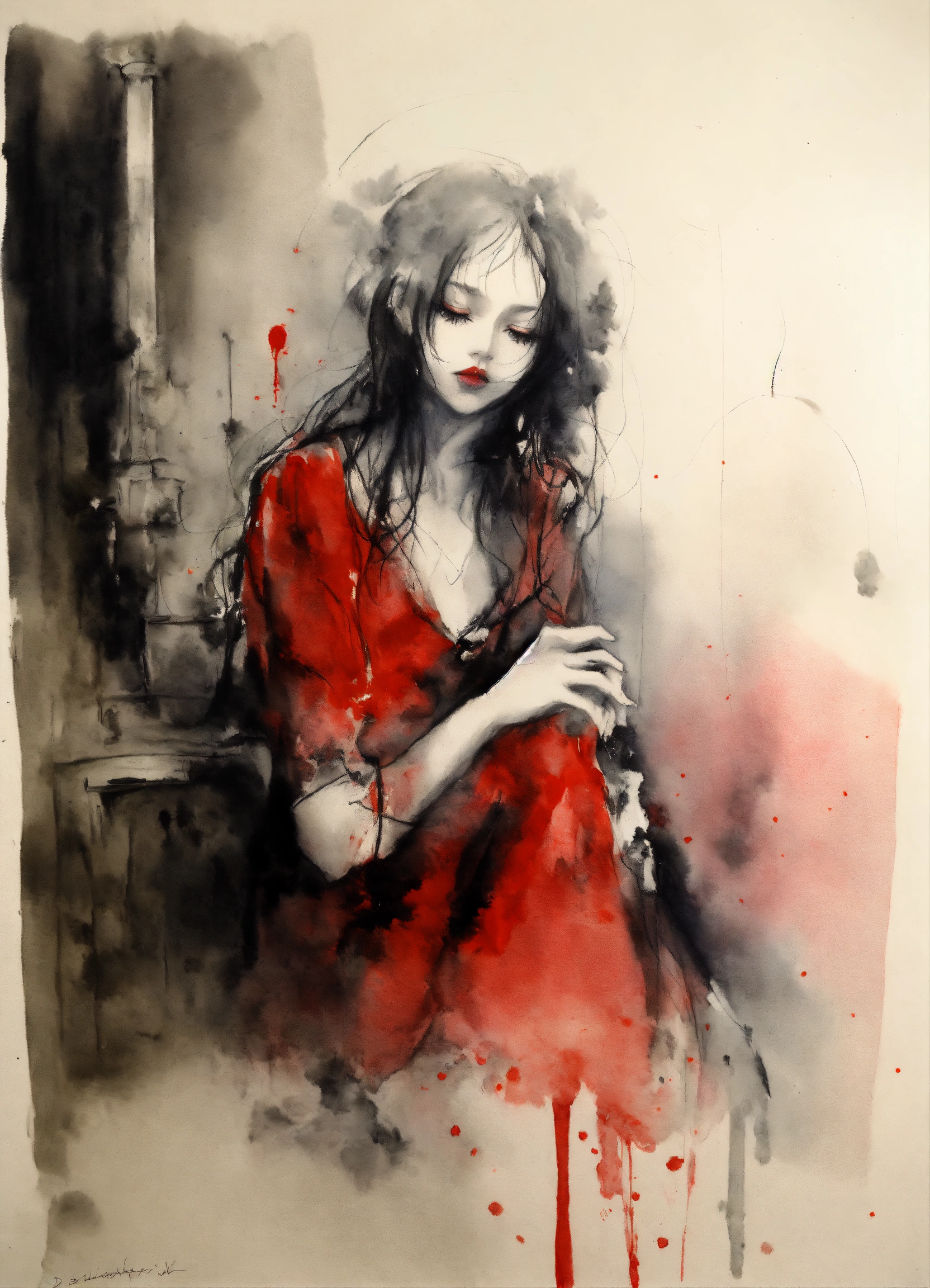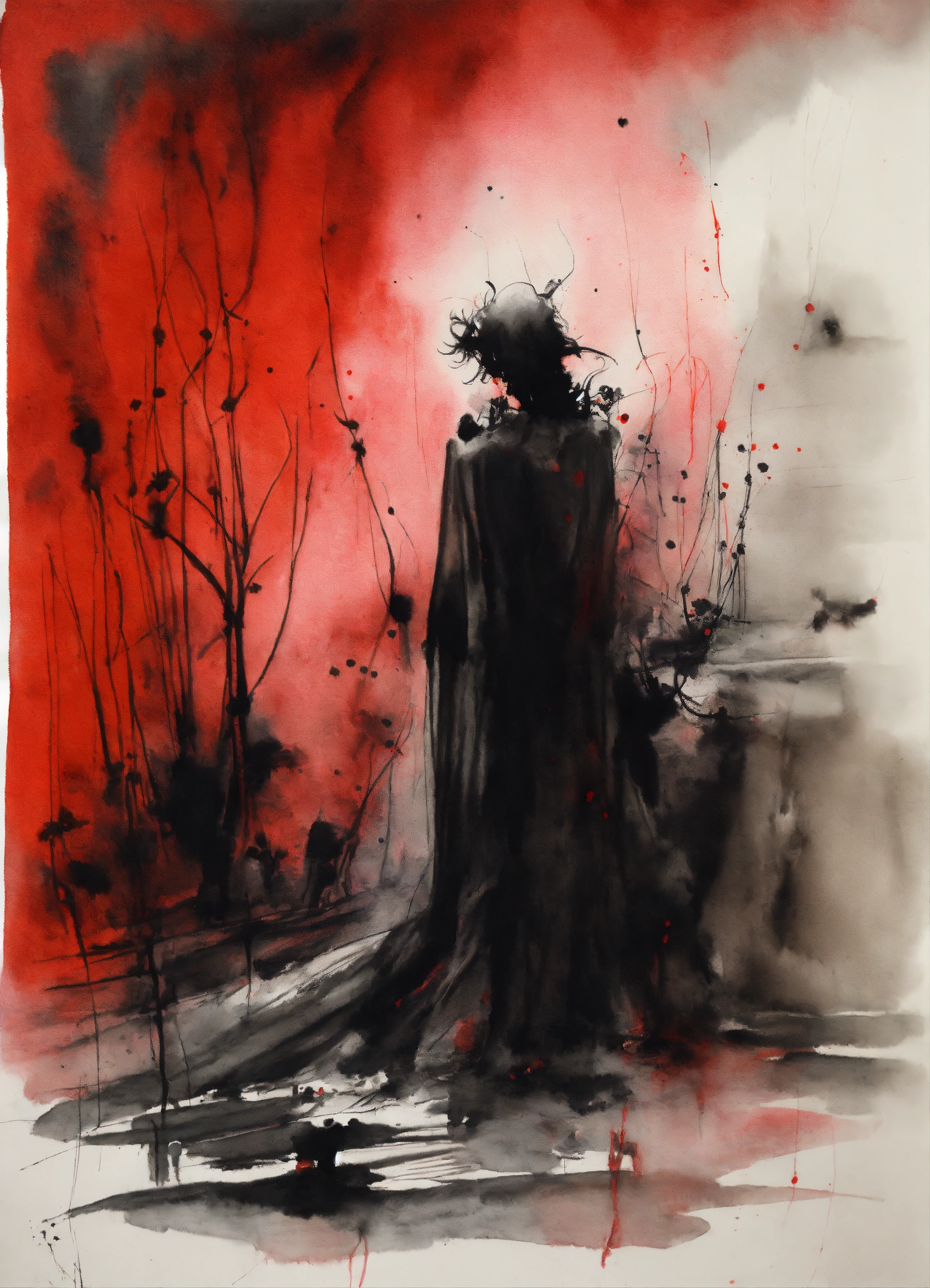Stephen gammell style, dessin, aquarelle, aquarelles, noir et blanc et rouge, de marais, de sombres créatures, dégoulinant, a fountain pen placed on a sheet of paper