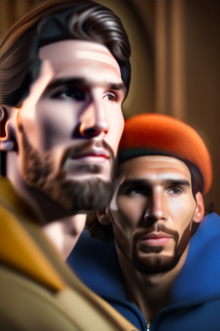 Lionel messi with che guevara: hyper realistic, photorealistic, studio lighting, reflections, dynamic pose, cinematic, color grading, photography, shot on 50mm lens, ultra - wide angle, depth of field, hyper - detailed, beautifully color - coded, insane details, intricate details, beautifully color graded, unreal engine, cinematic, color grading, editorial photography, photography, global illumination, screen space global illumination, ray tracing global illumination, optics, scattering, glowing, shadows, rough, shimmering, ray tracing reflections, lumen reflections, screen space reflections, diffraction grading, chromatic aberration, gb displacement, scan lines, ray traced, ray tracing ambient occlusion, anti - aliasing, fkaa, txaa, rtx, ssao, shaders, opengl - shaders, glsl - shaders, post processing, post - production, cel shading, tone mapping, cgi, vfx, sfx, insanely detailed and intricate, hyper maximalist, elegant, hyper realistic, super detailed, dynamic pose, photography, 64k