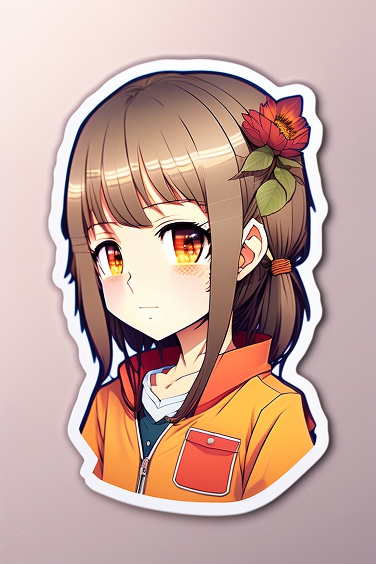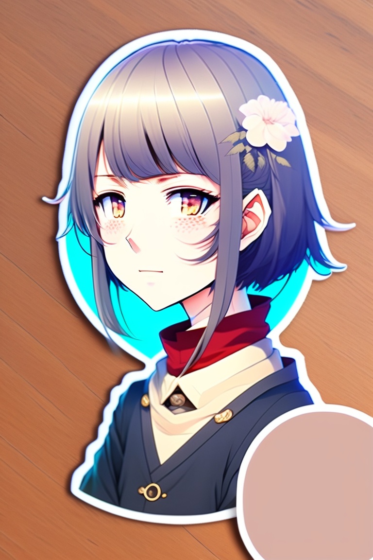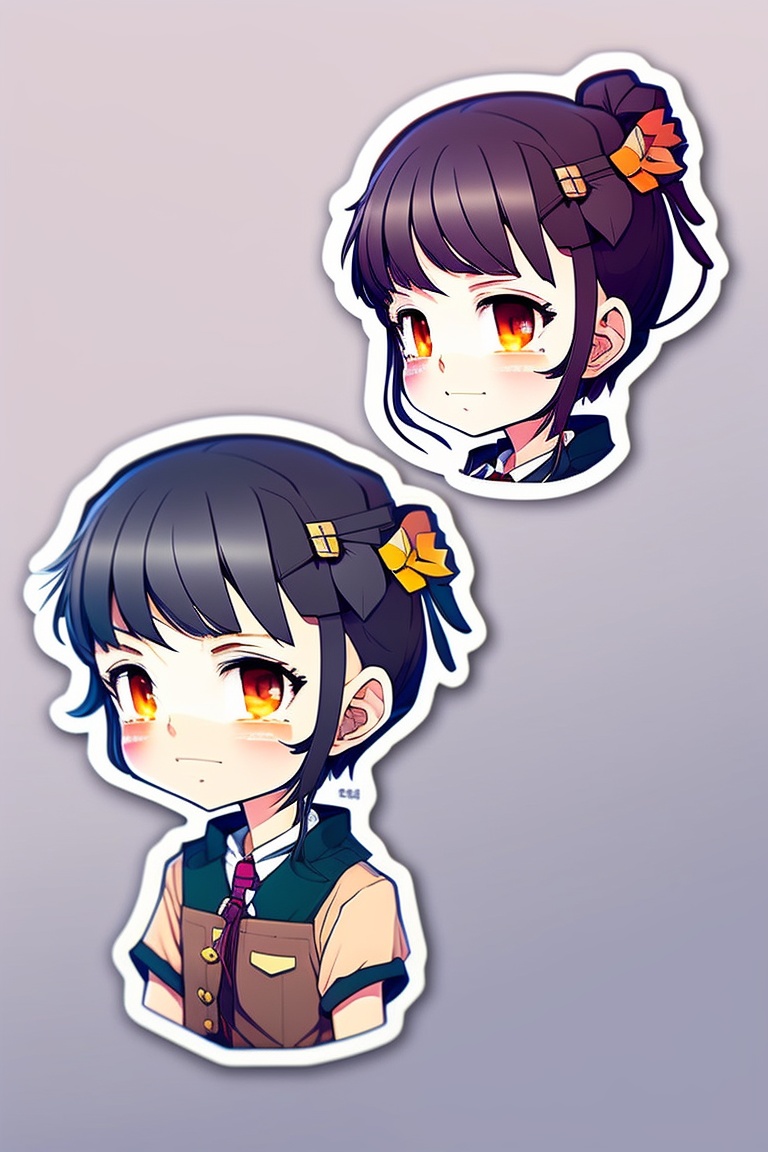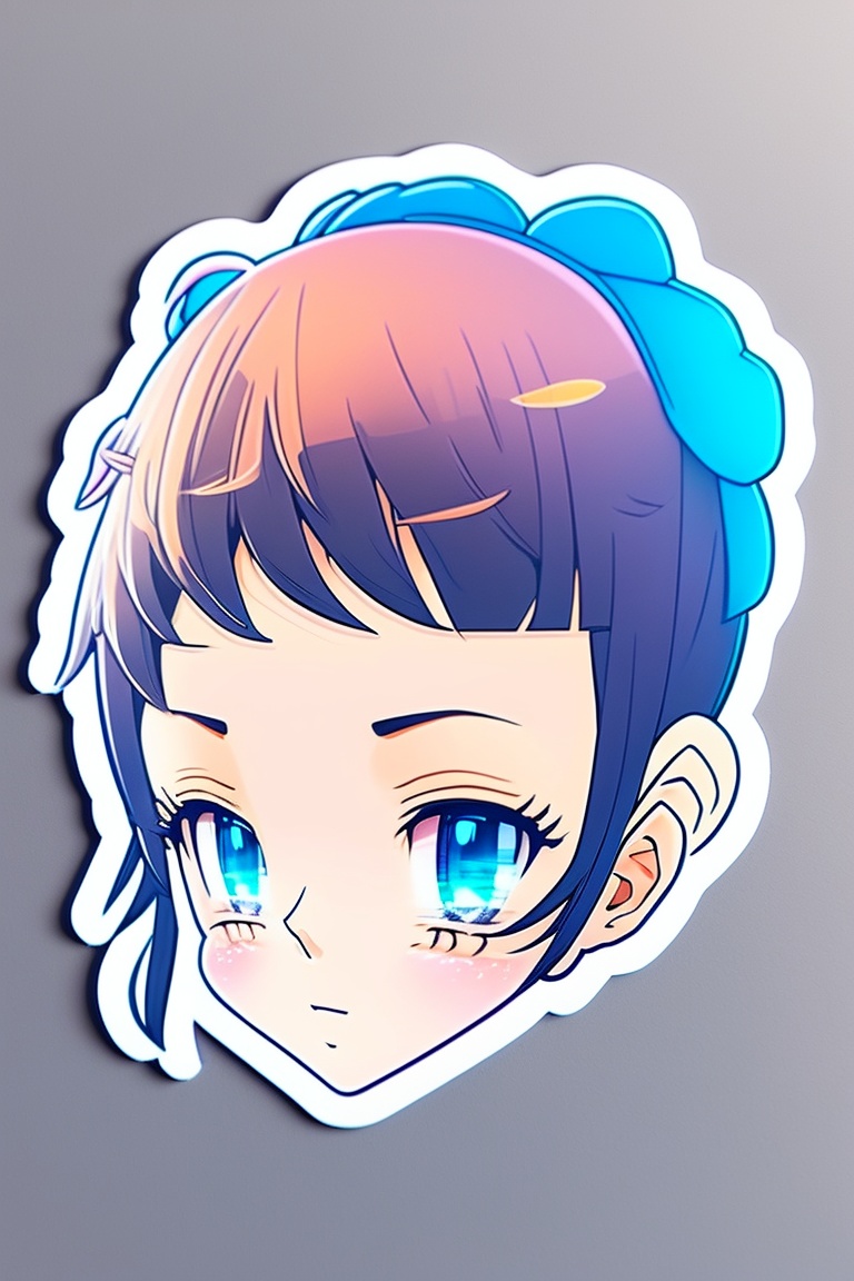 Japanese anime young boyish round face girl sticker