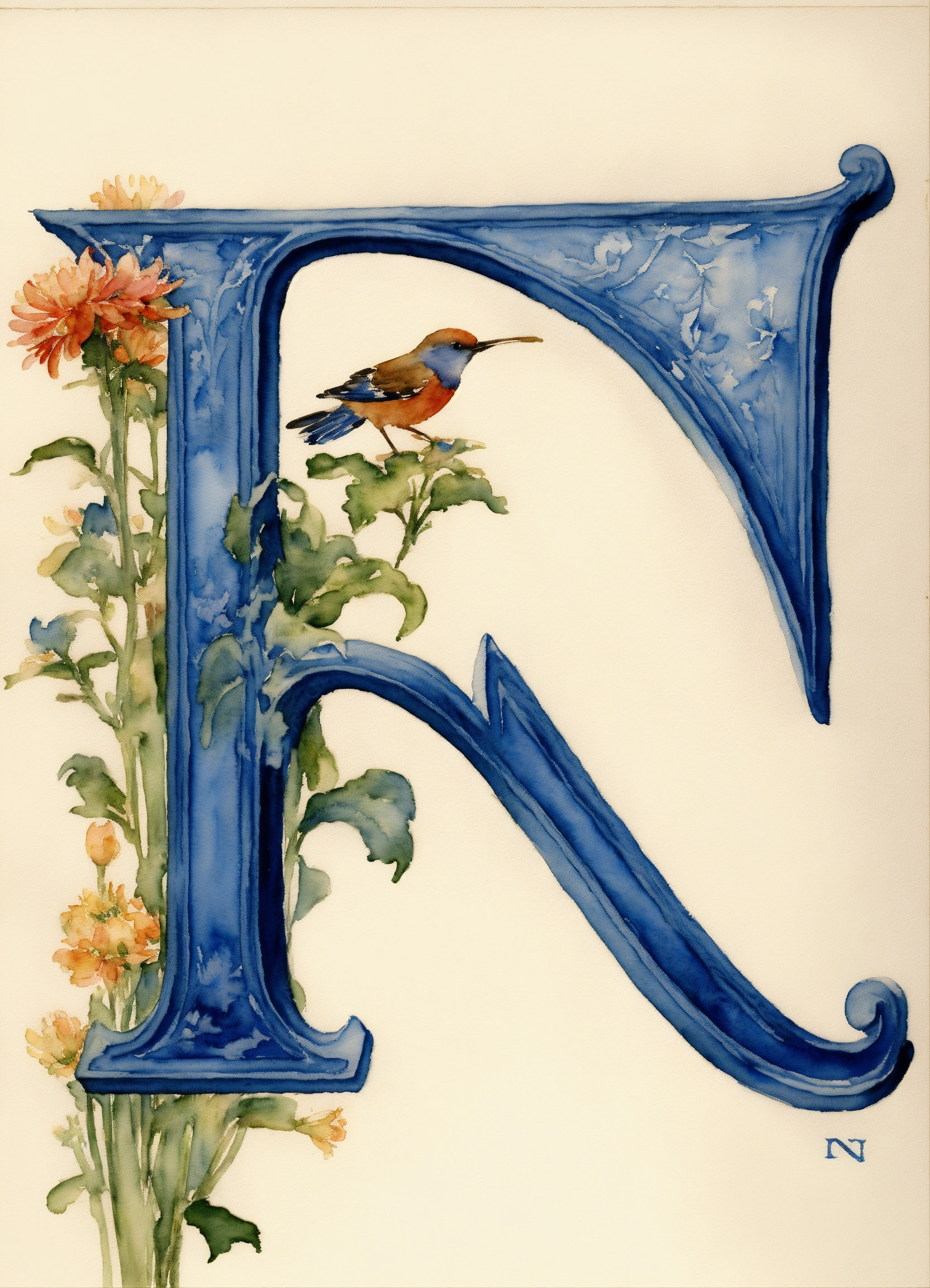 A single blue letter "n" on a white background