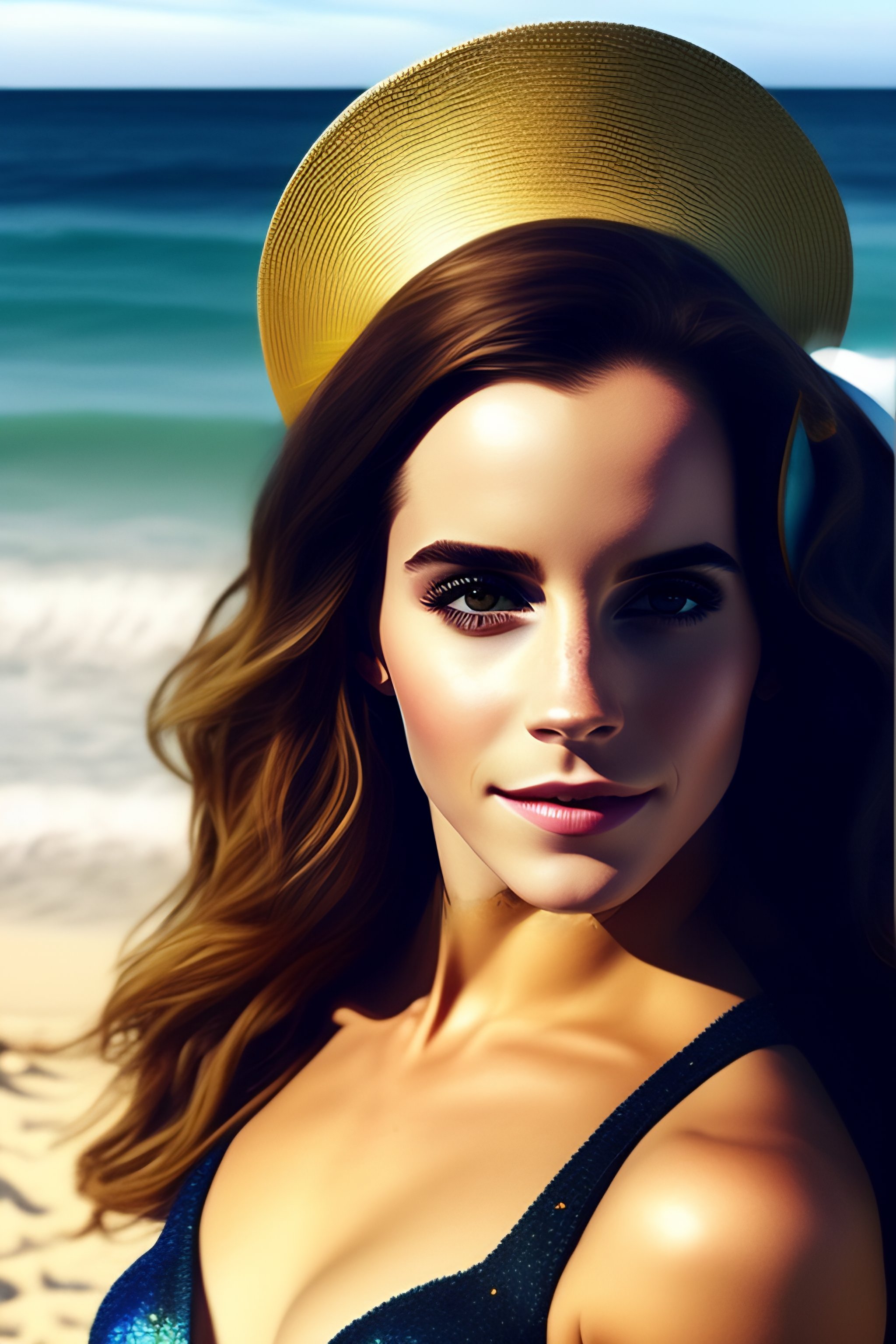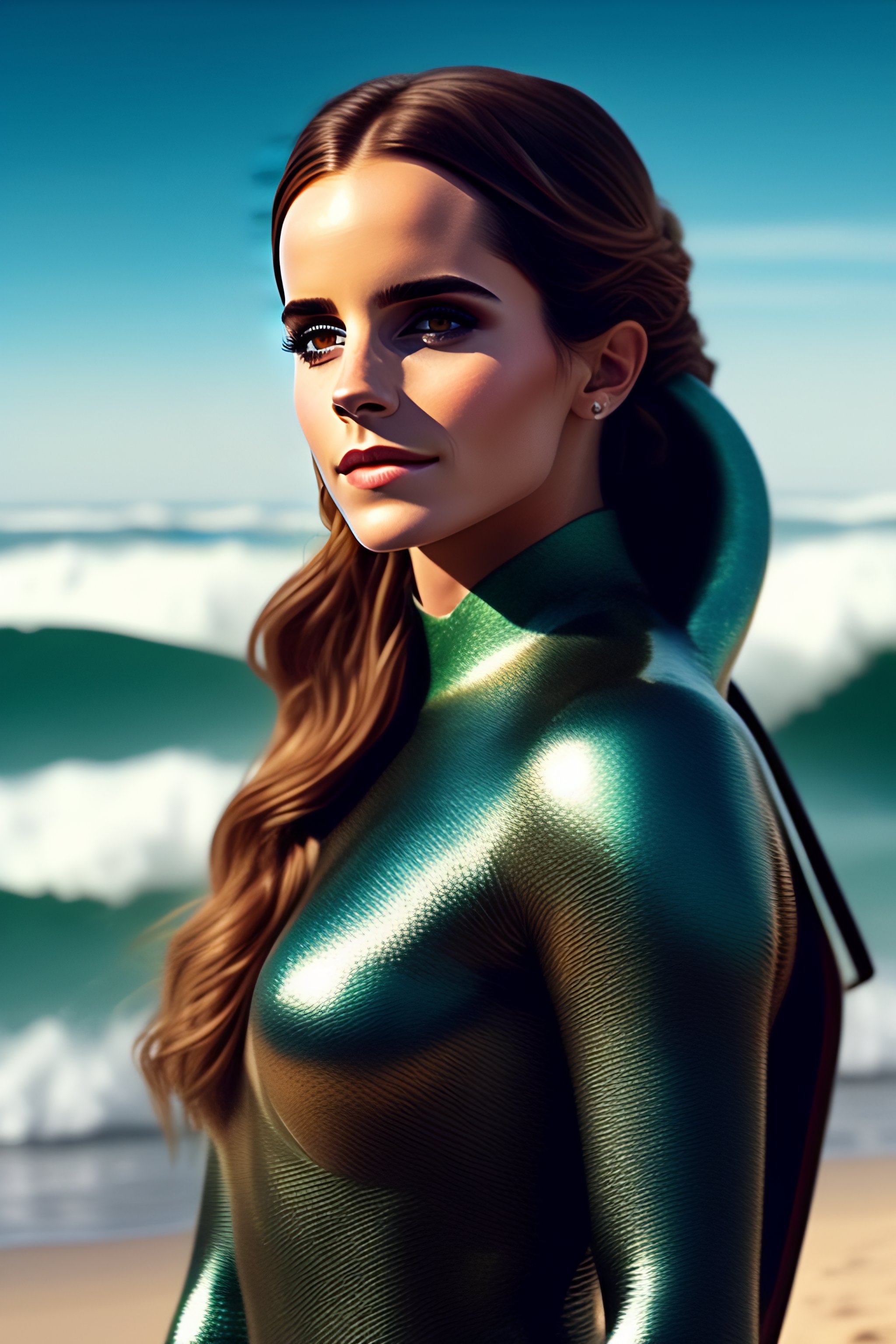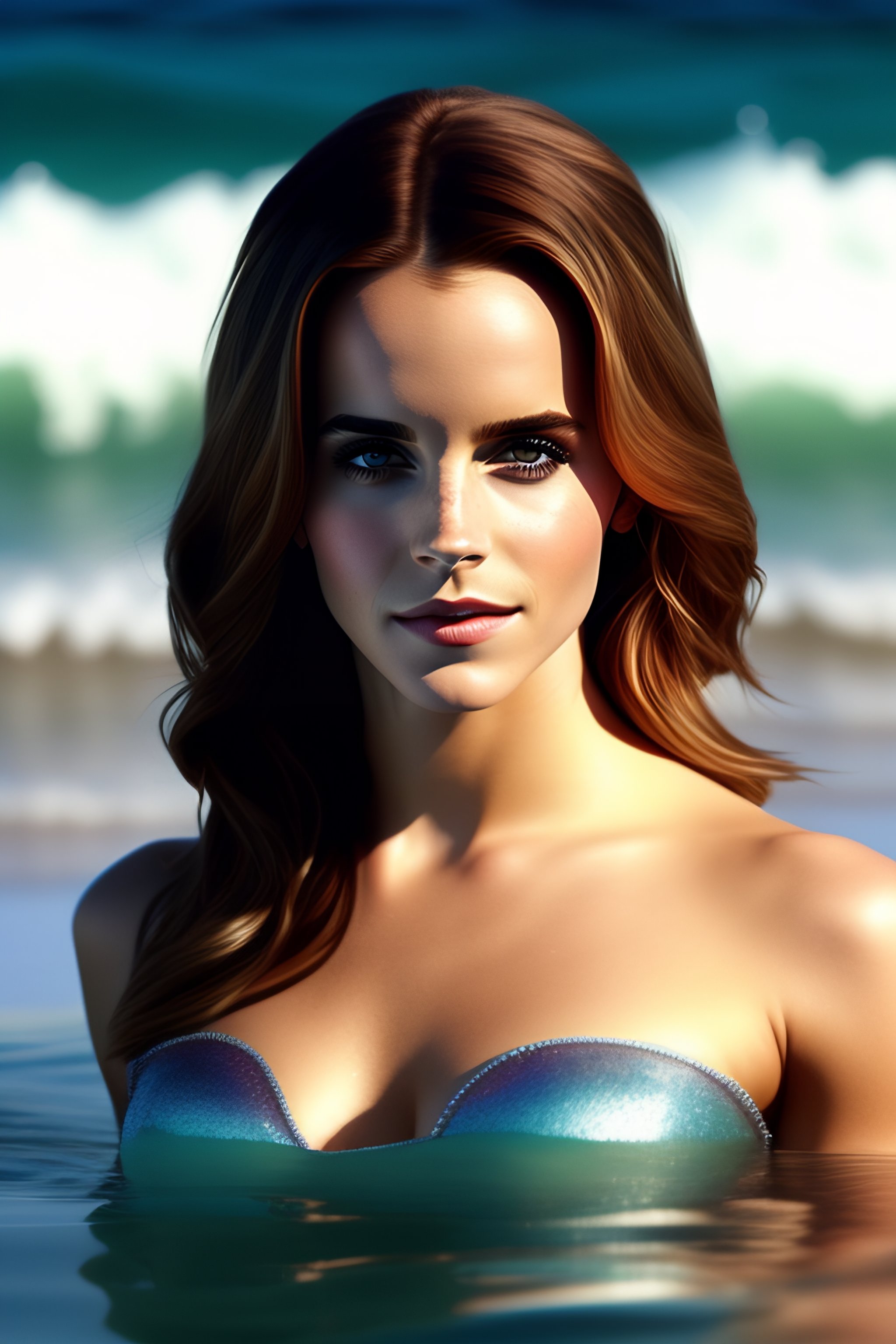 An incredibly beautiful emma watson as a mermaid on the beach