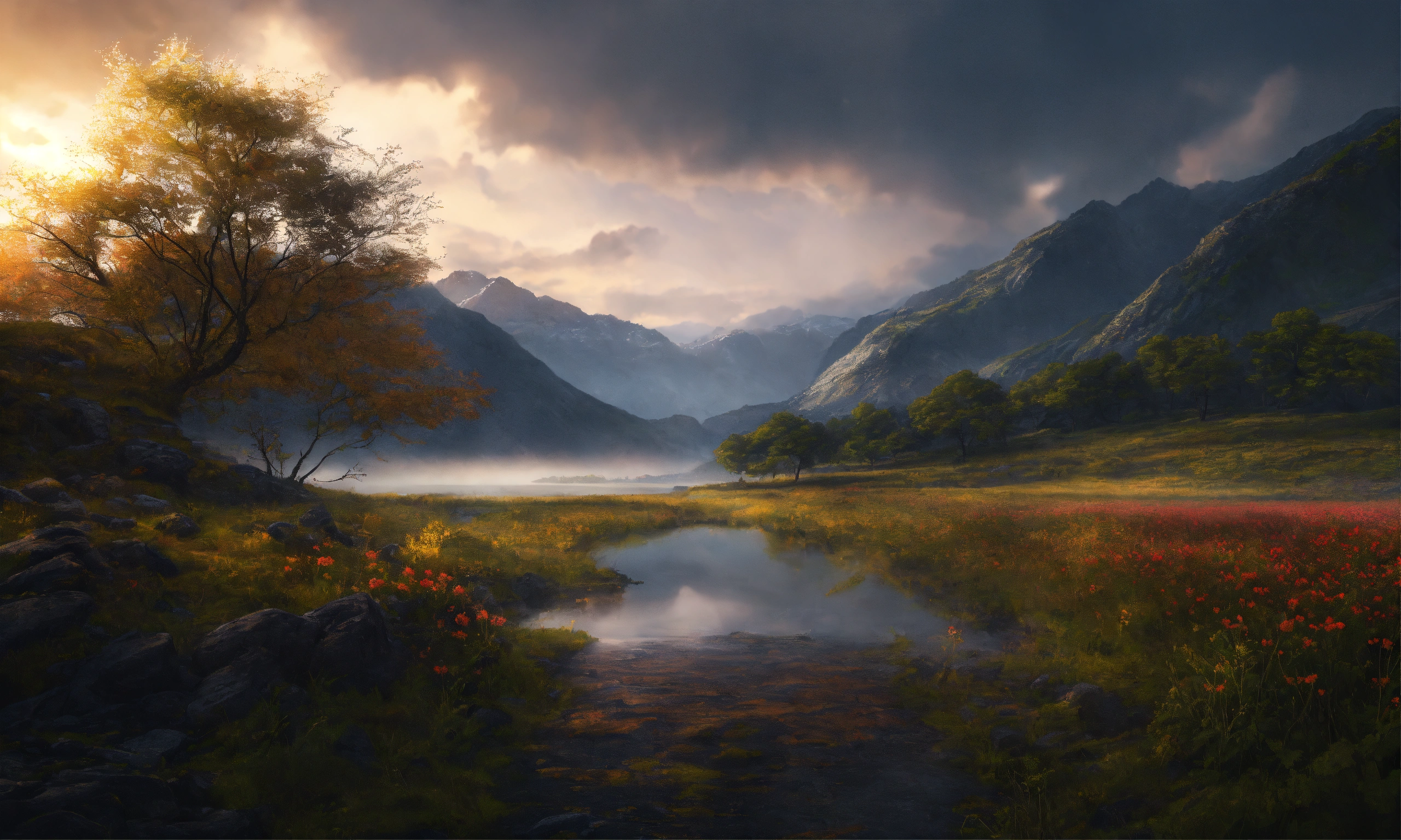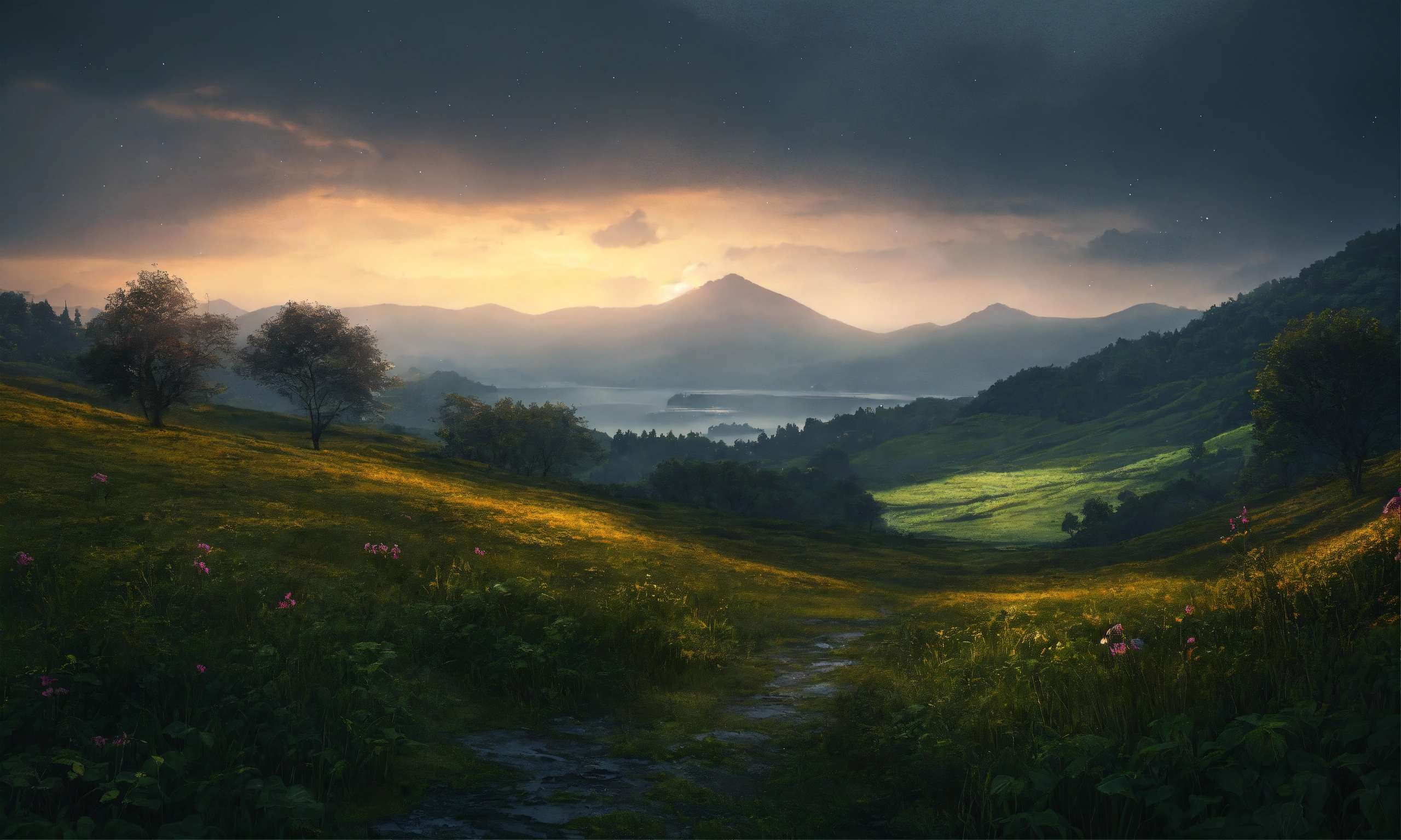 Landscape for meditation and inner peace, beauty and calm, elements of nature that bring peace, 8k render, detailed, high resolution, photorealistic, dark, gloomy, moody