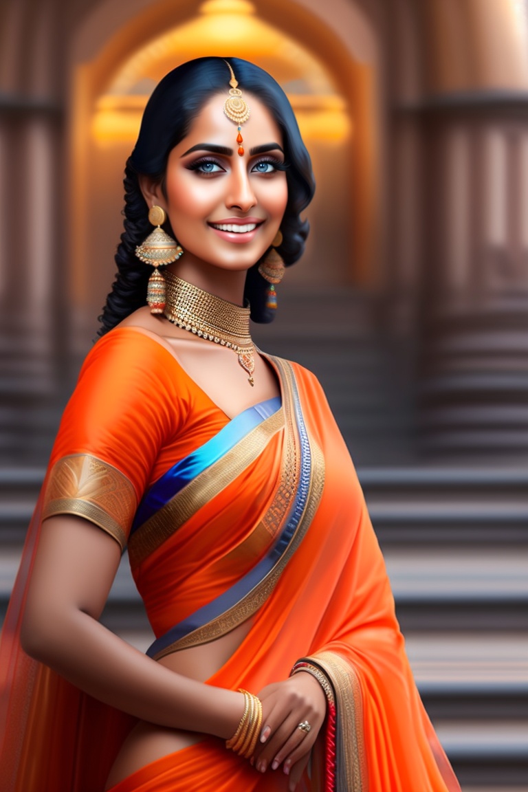 Hot hindu wearing orange saree