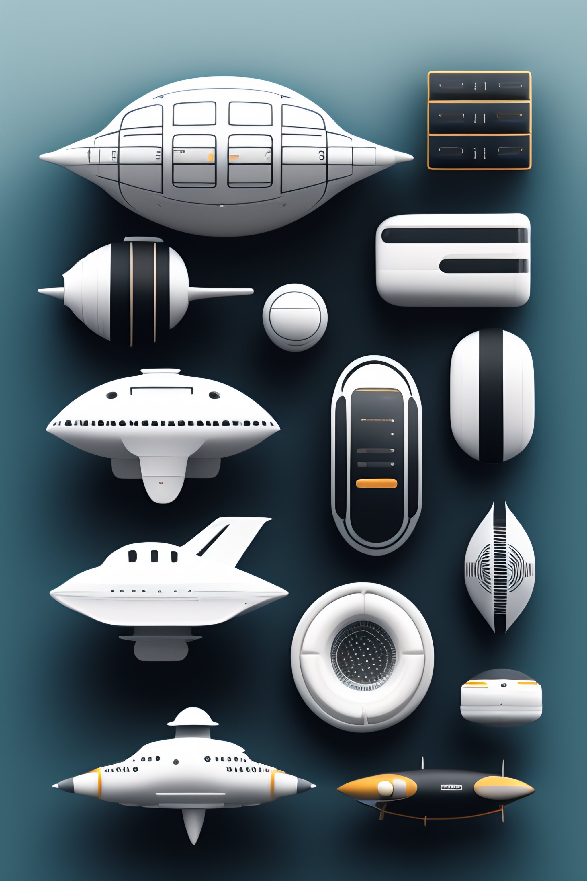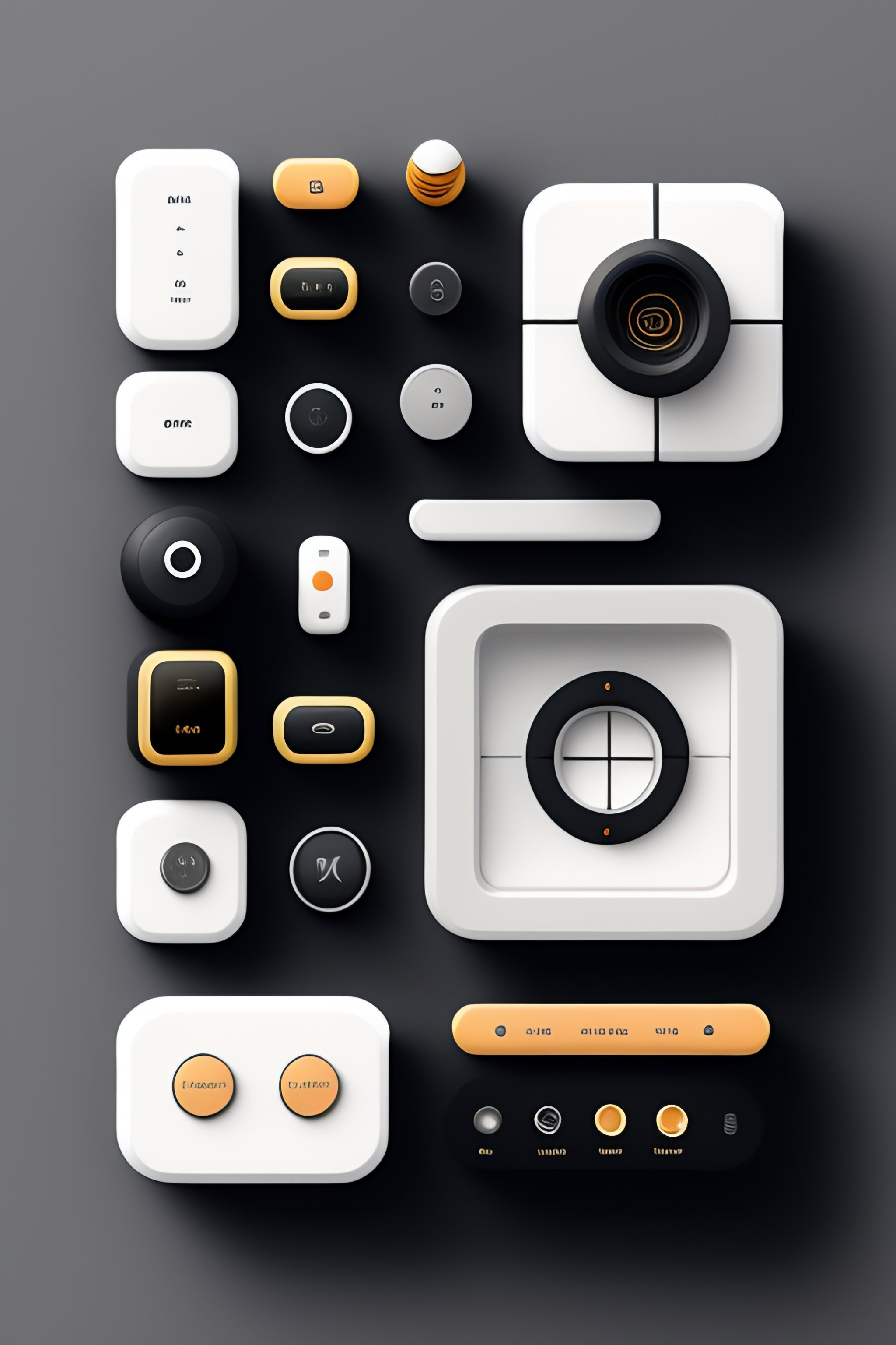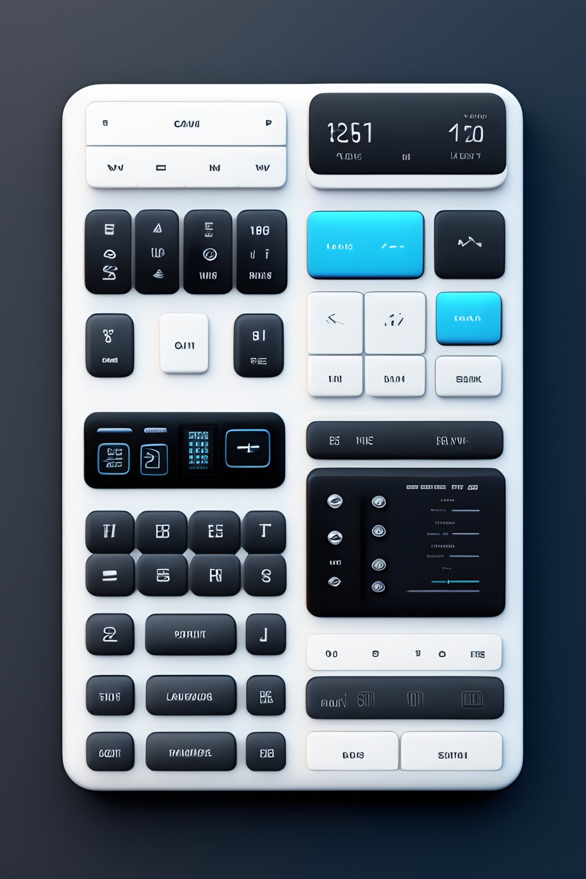 Spaceship buttons panel in dieter rams style with 3d wireframes