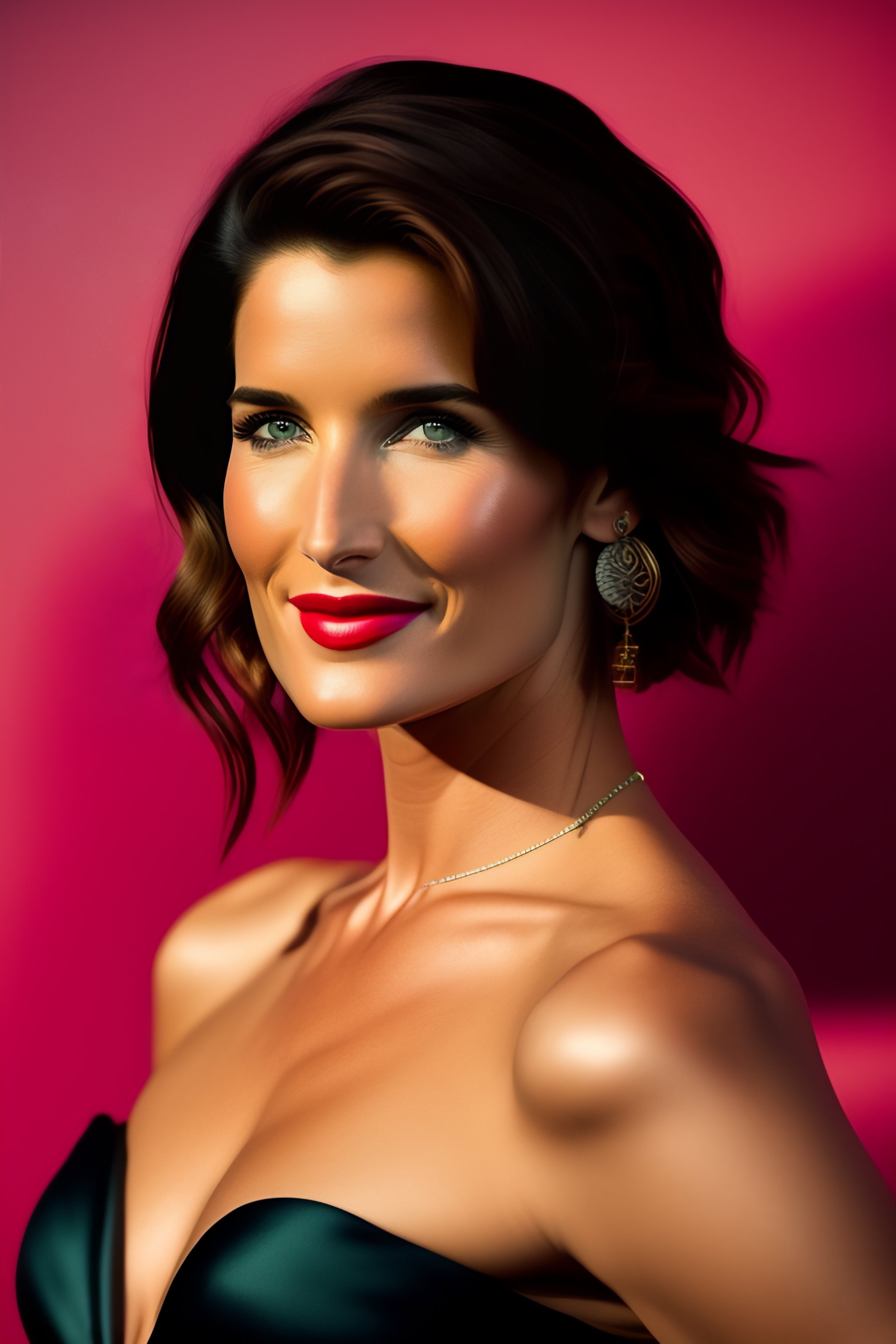 Full length photo of cobie smulders, age 26, with bikini in the style of stefan kostic, full extremely slim body, not realistic, sharp focus, 8k high definition