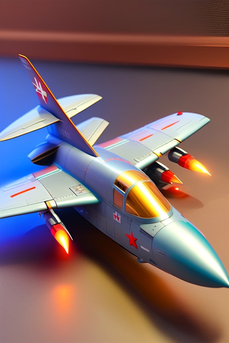 Miniature fighter jet model, fully loaded attack mode, 10th generation, deadliest look, sci-fi, many weopens
