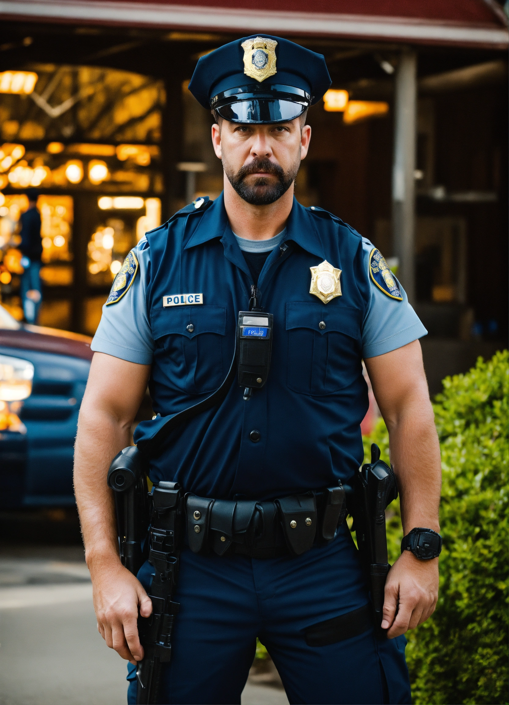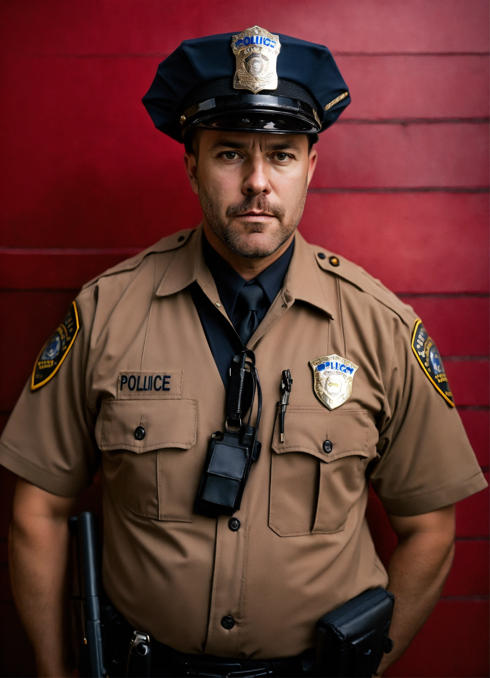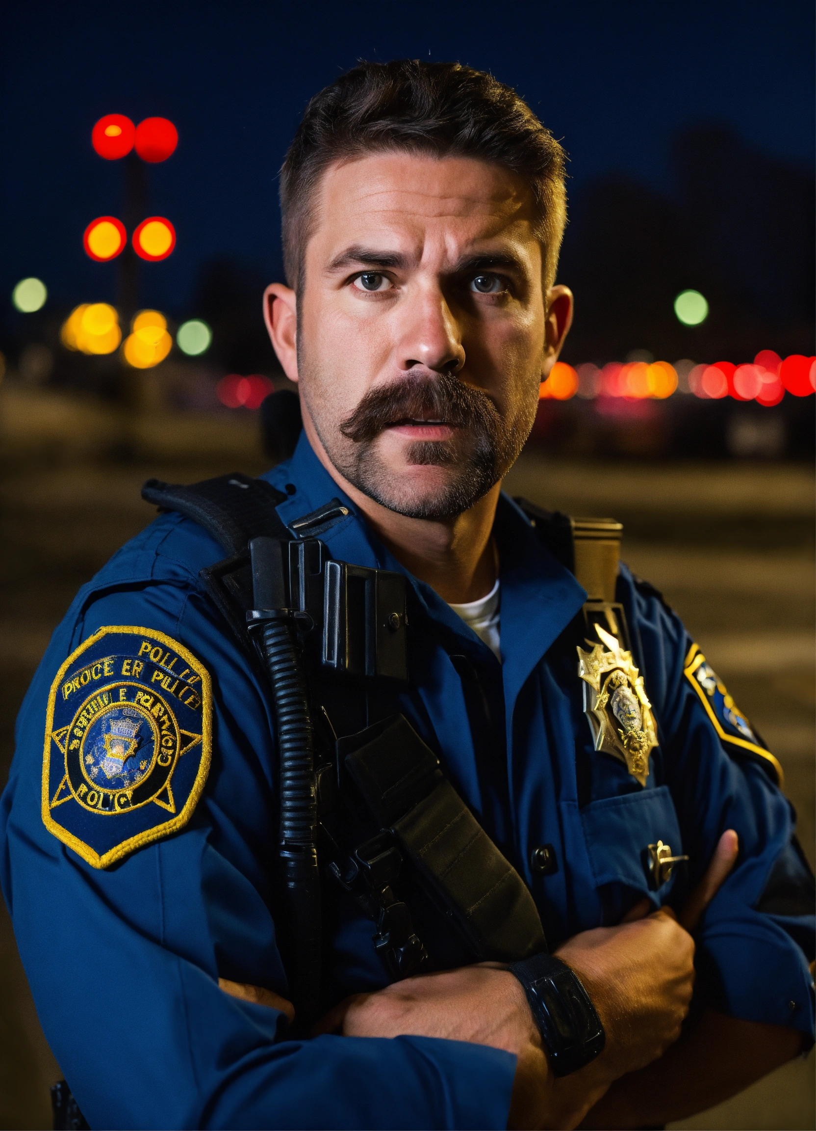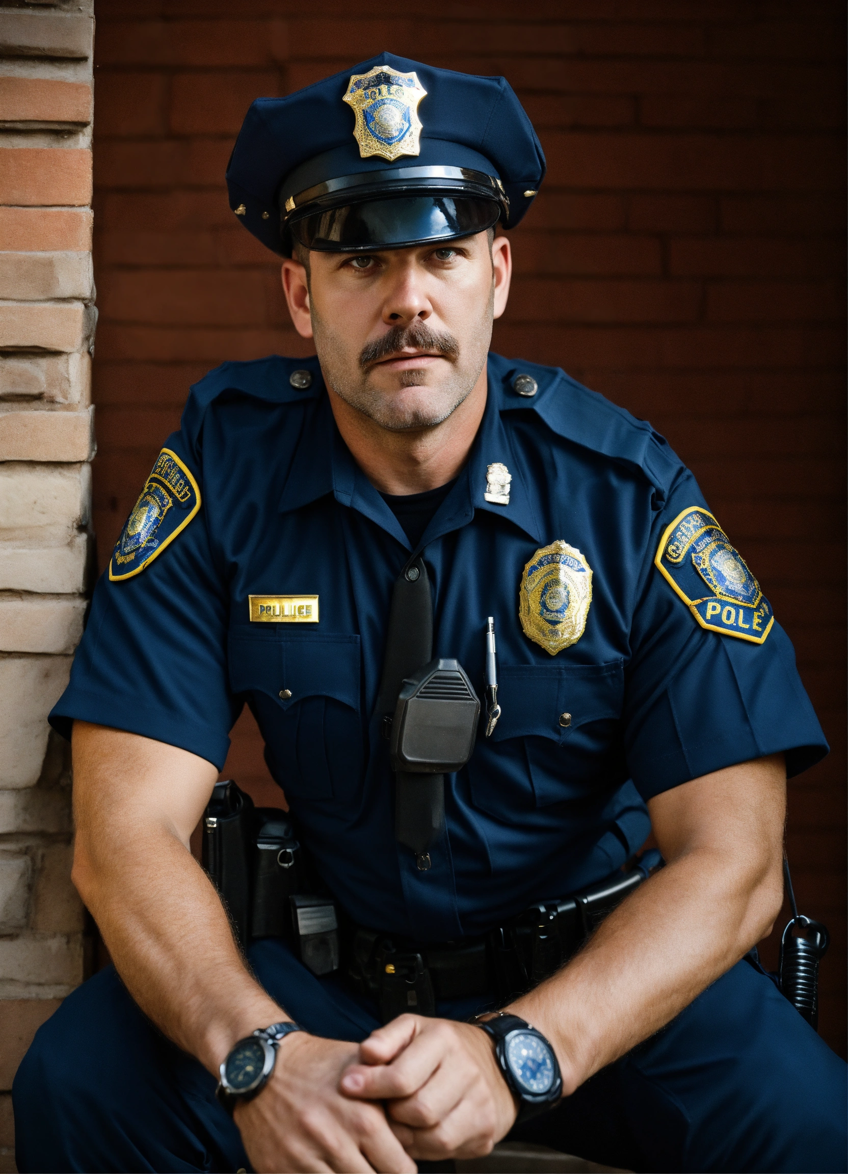 Scared unique expressive police officer american man casually dressed