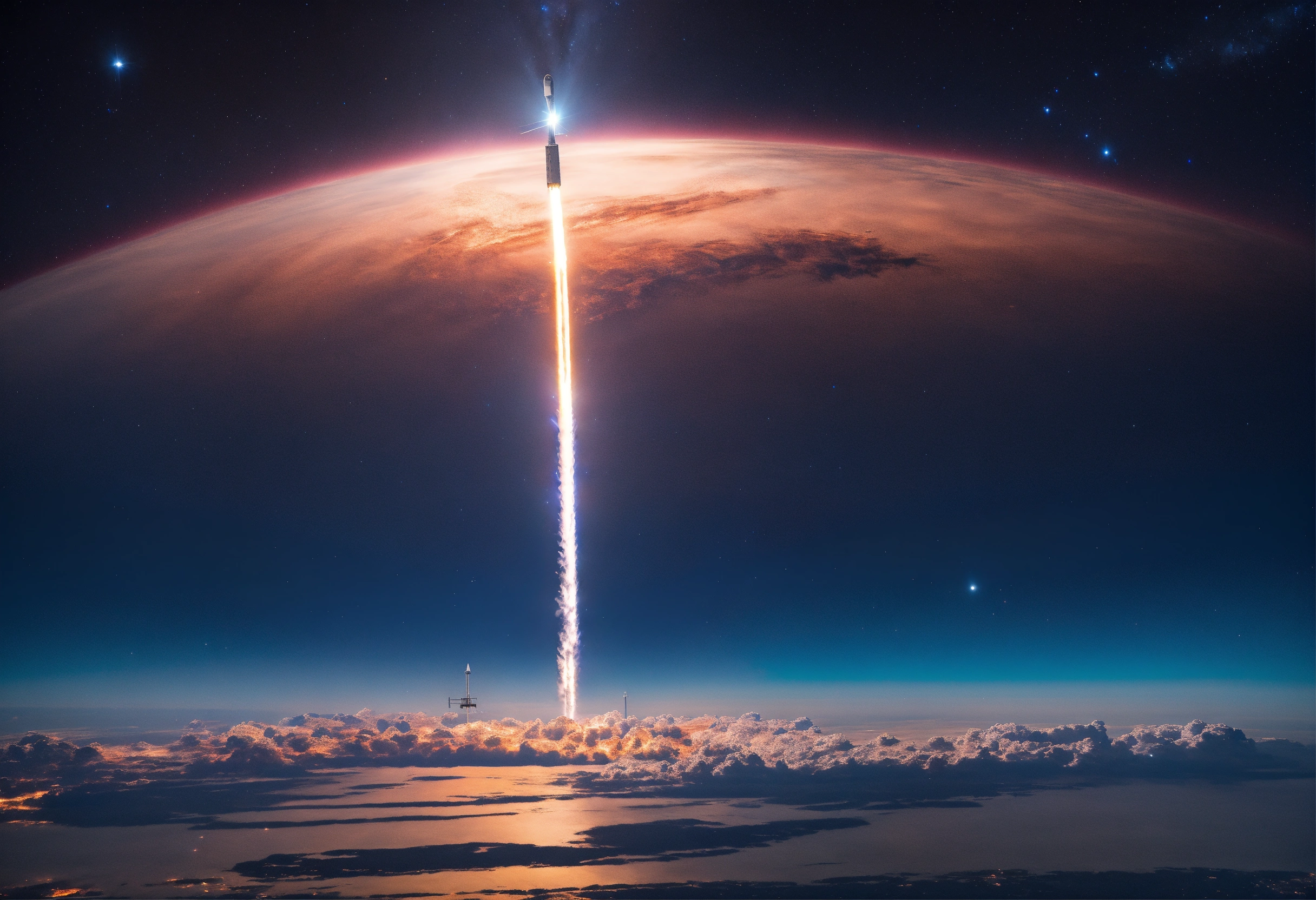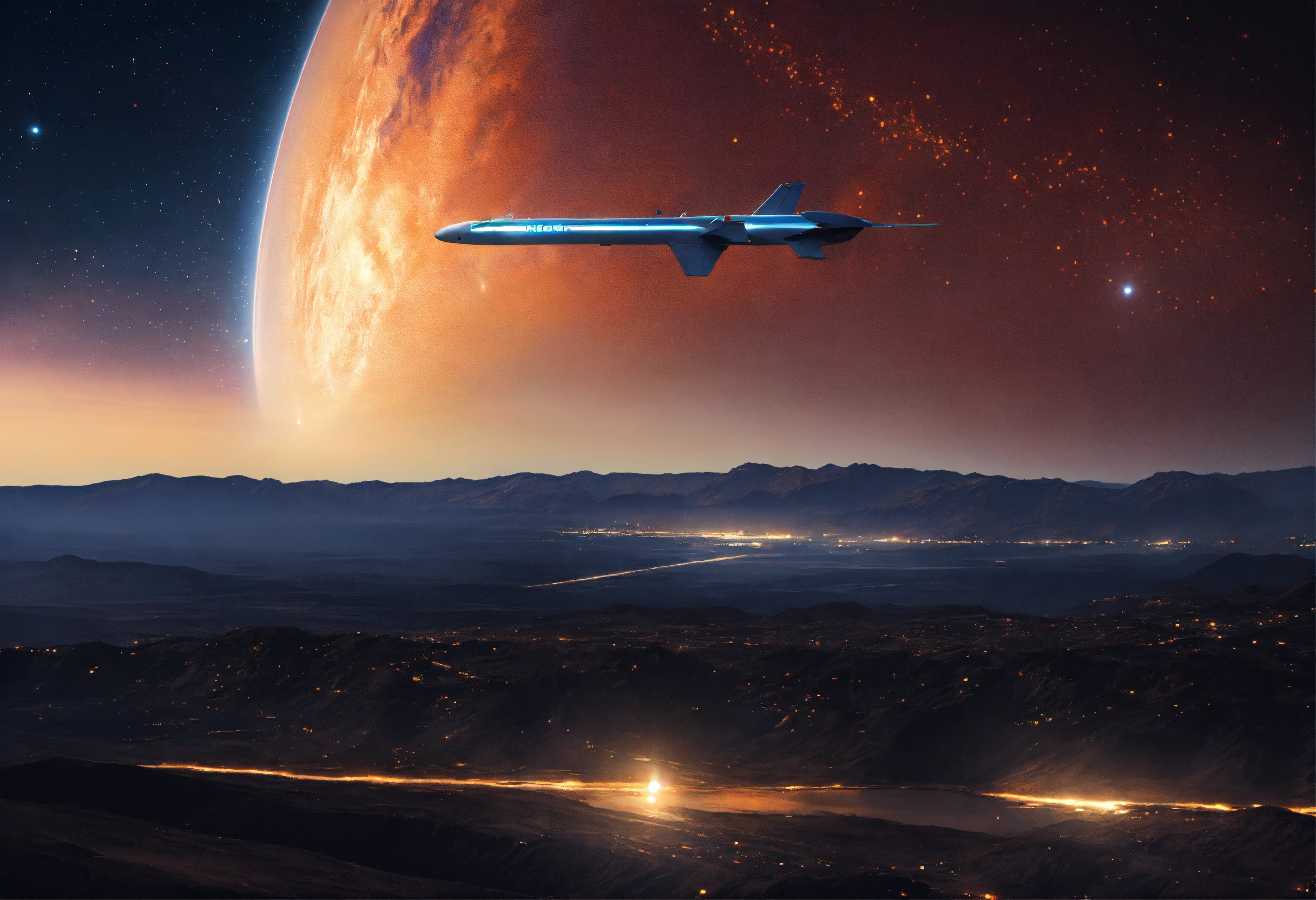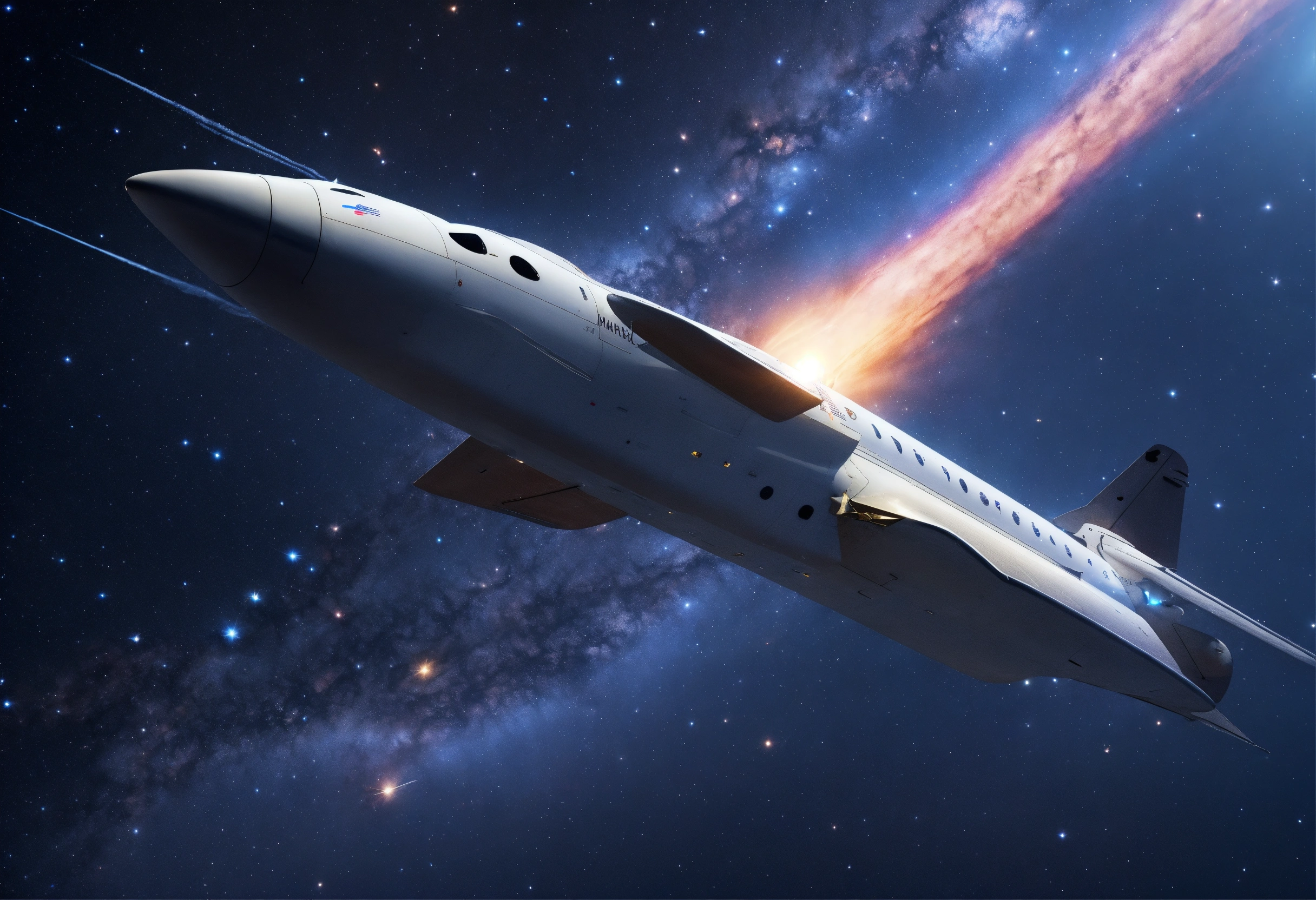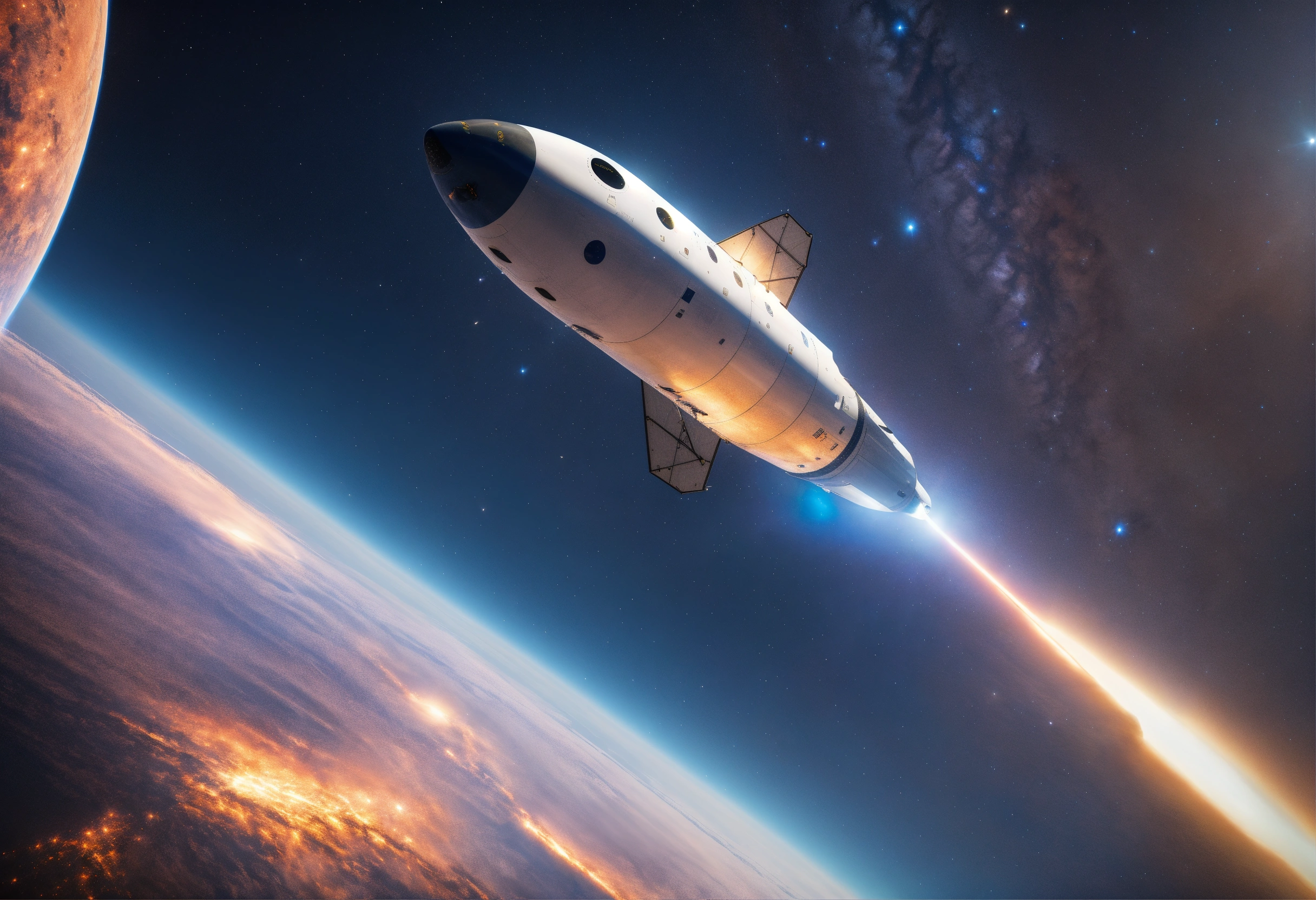 An aircraft from spacex flying through the cosmos