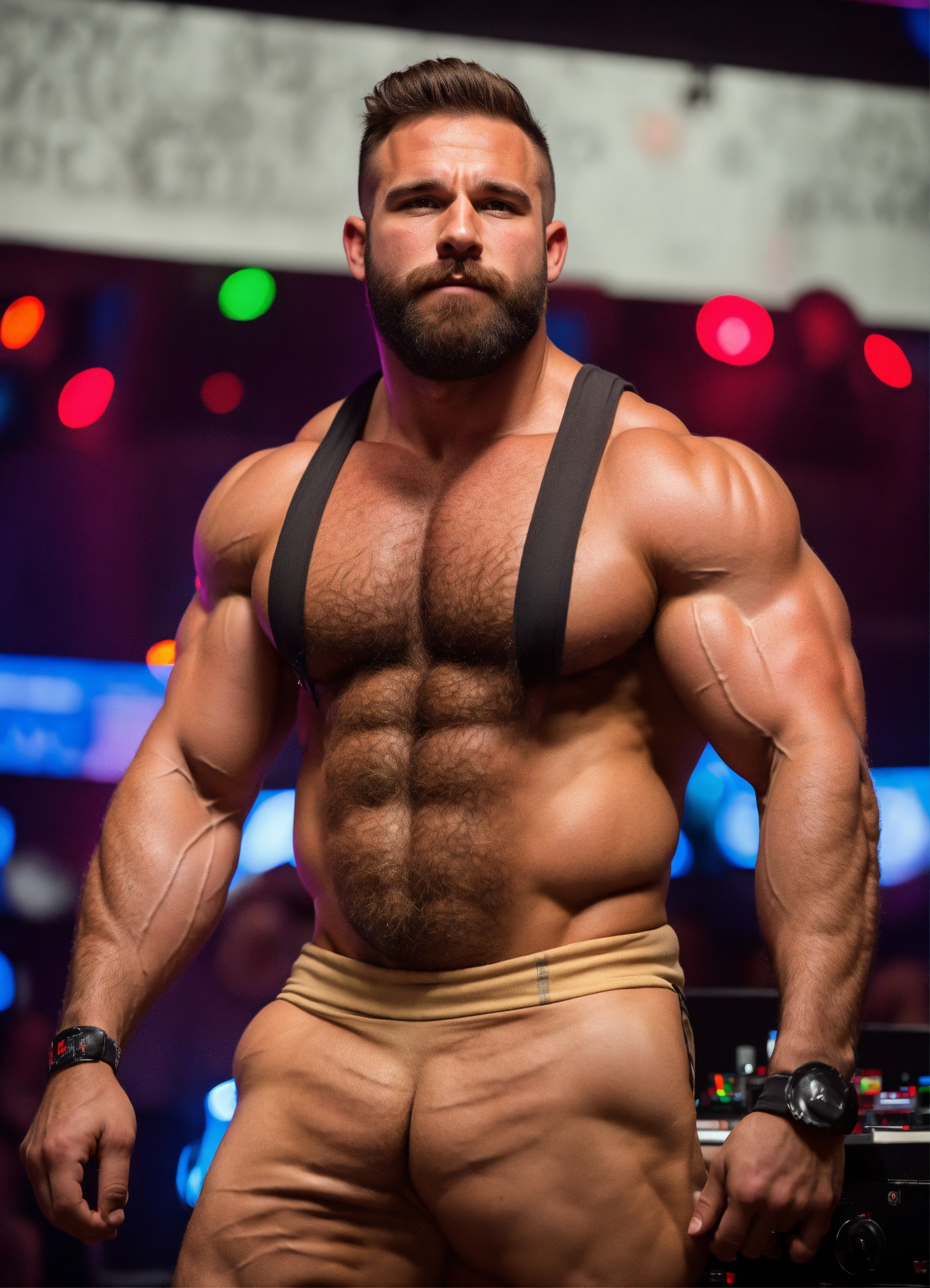30-year-old hairy man with big muscles