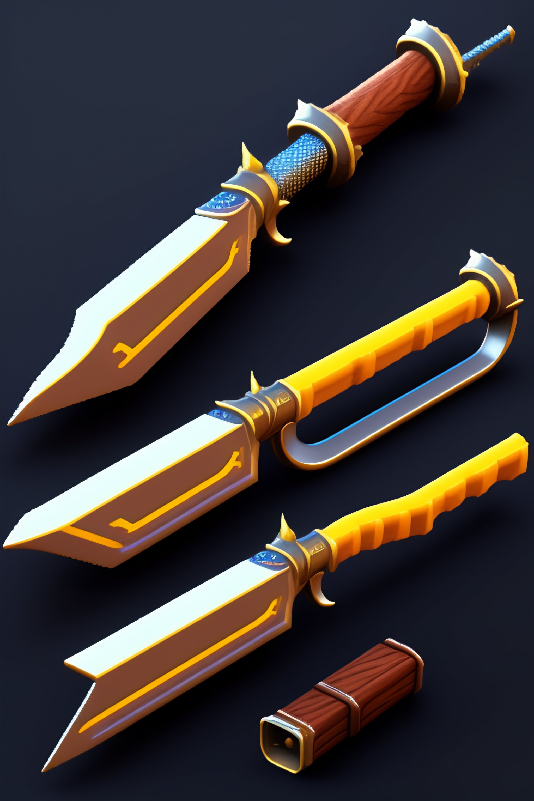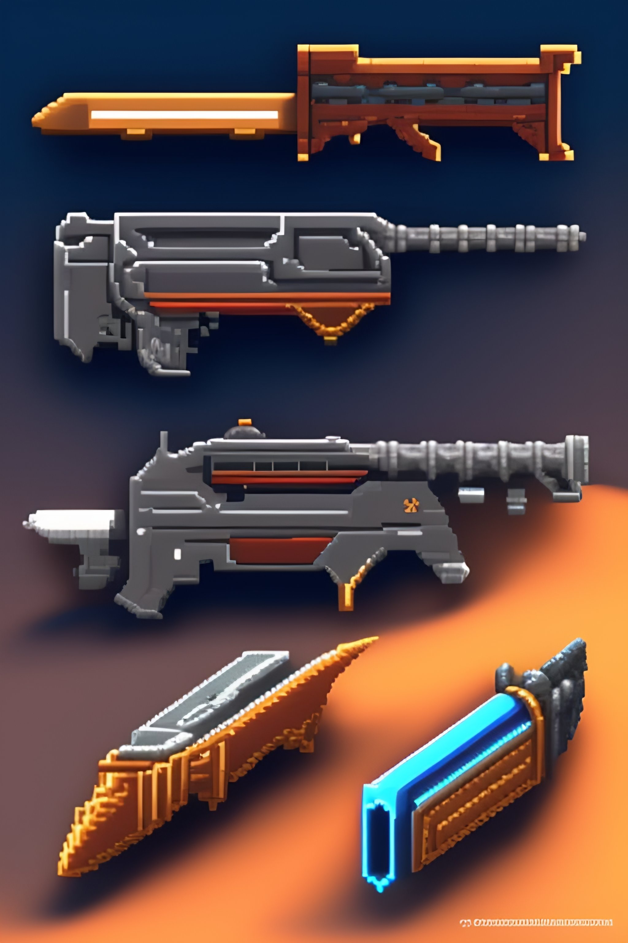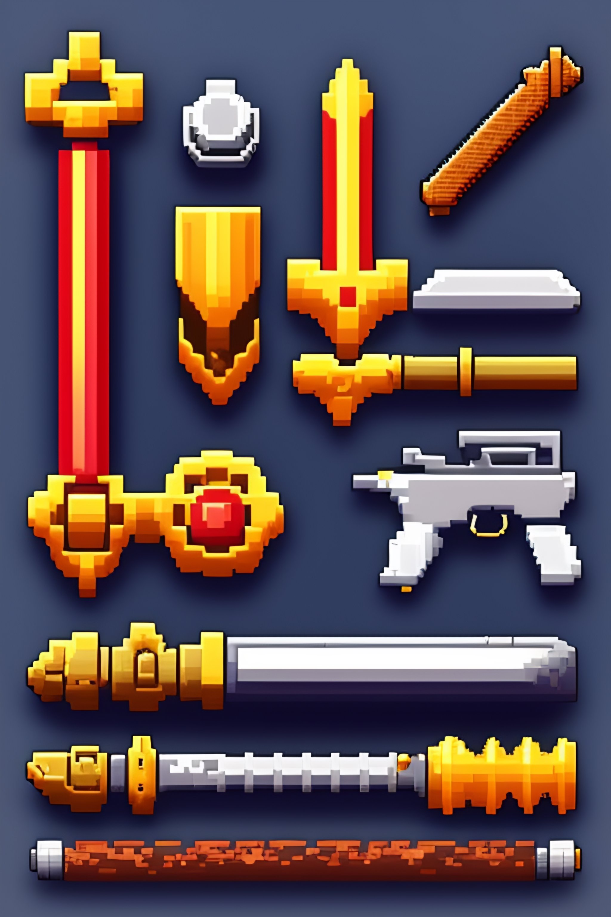 Pixel art 3d video game fantasy sword guns with ui