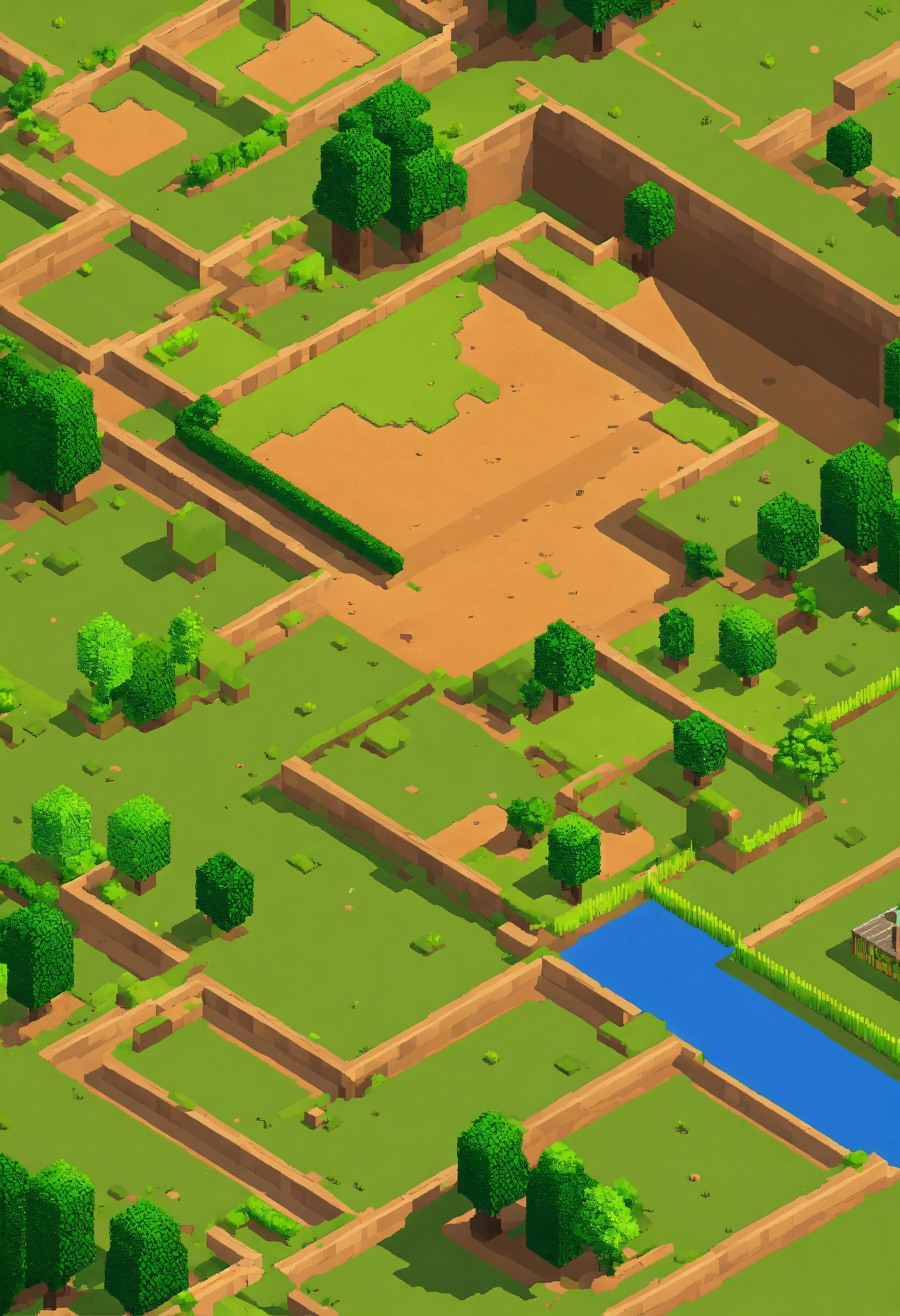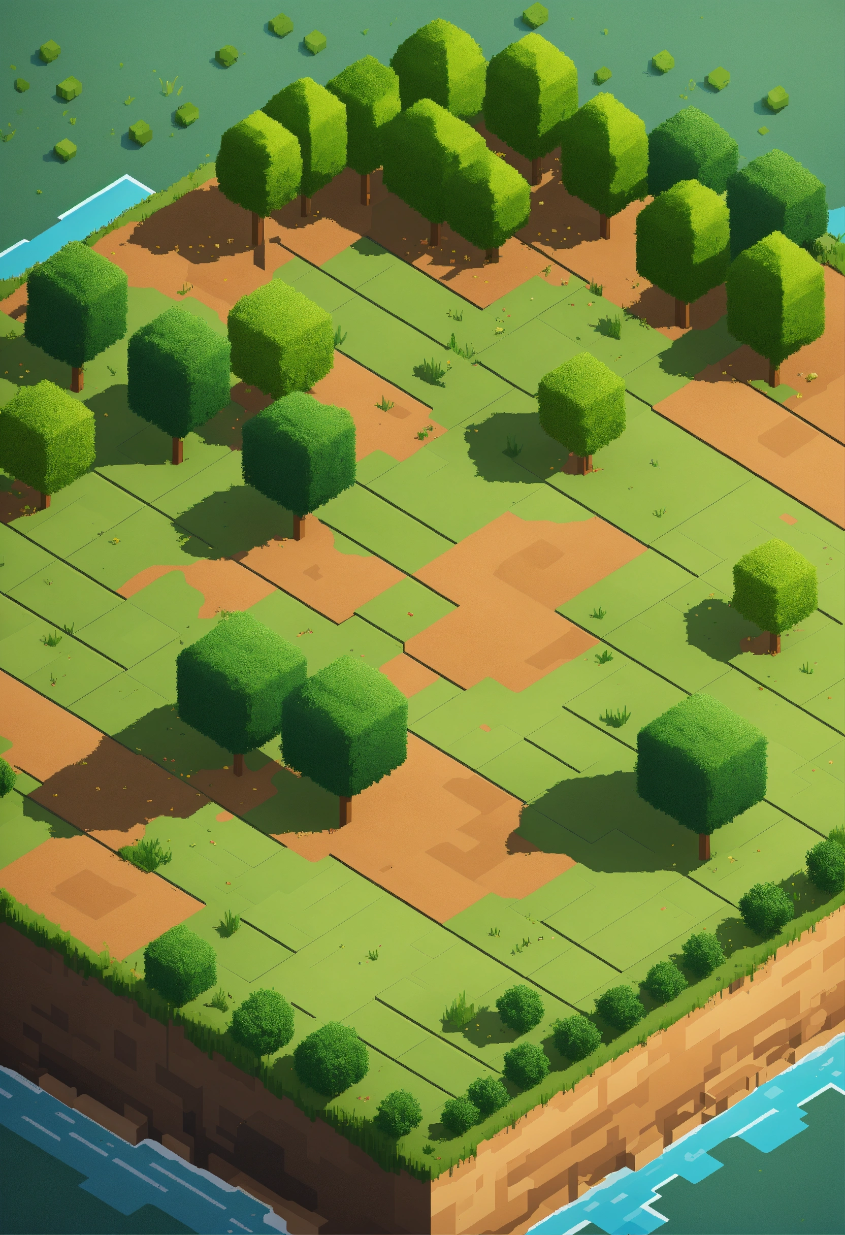Simple pixel 2d flat empty plain dirt grassy landscape from above isometric